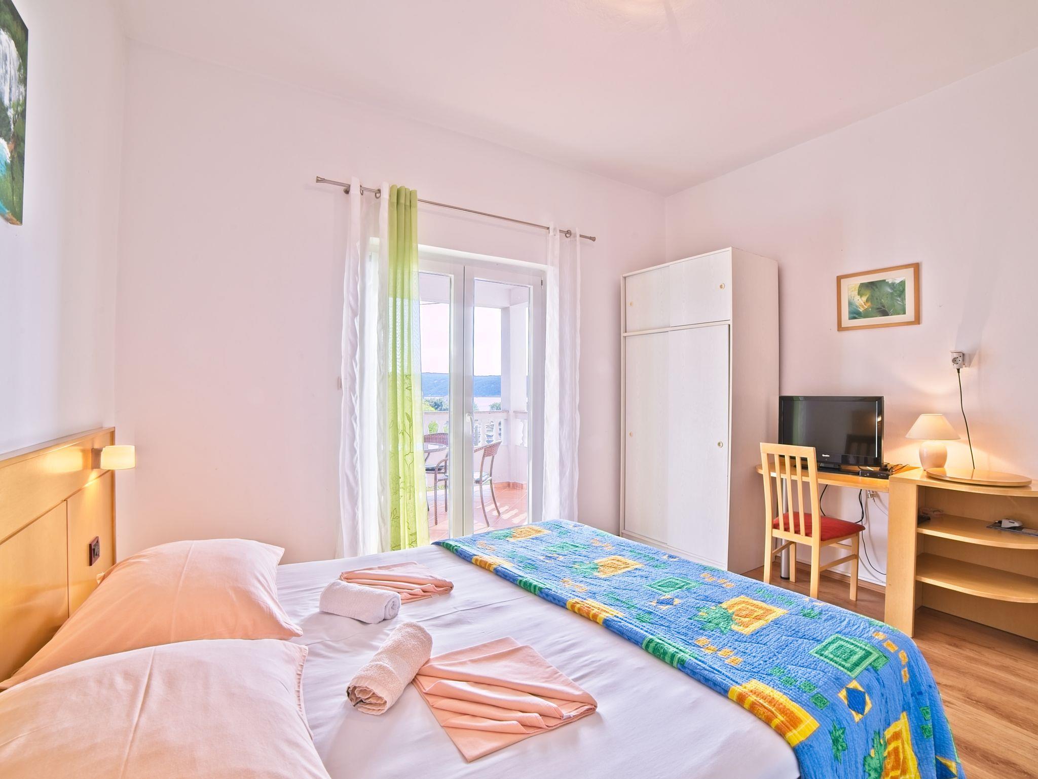 Zimmer bietet Platz für 2 Gäste. Die Betten sind in Schlafzimmern, die es 1 gibt, innerhalb einer Gesamtfläche von 15m2, angeordnet. Die Gäste haben eine eigene Terrasse zur Verfügung, auf der sie in warmen Sommernächten genießen können. Das Zimmer bietet Meerblick. Es ist erlaubt, Speisen auf dem Gemeinschafts-Grill vorzubereiten. Die reservierte Unterkunftseinheit ist ein Zimmer mit eigenem Badezimmer ohne die Möglichkeit der Nutzung einer Küche. IM PREIS INBEGRIFFEN: Kurtaxe, Endreinigung, Klimatisierung, Parkplatz, Internet, Bootsanlegeplatz, Liegestühle. VERBINDLICHE ZUSÄTZLICHE KOSTEN: Aufzahlung für Kurzaufenthalte (prozentualer Zuschlag pro Nächtigungsanzahl: 30% - 1, 20% - 2, 10% - 3). UNVERBINDLICHE ZUSÄTZLICHE KOSTEN: Wäschewaschen (5,00 € Waschen). Die Verfügbarkeit zusätzlicher Dienstleistungen in Ihrem reservierten Termin und die Preise derselben (falls nicht aufgeführt) müssen im Voraus überprüft werden. Zusätzliche Dienstleistungen die in der Zahlungsaufforderung nicht aufgeführt sind werden direkt beim Vermieter bezahlt, angenommen der Gast nutzt auch diese. Ermäßigung auf den Grundpreis: Gratistag 14=13 (bei einem Aufenthalt von 14 Tagen oder mehr erhalten Sie einen Gratistag für den Aufenthalt bis 31.12.26).