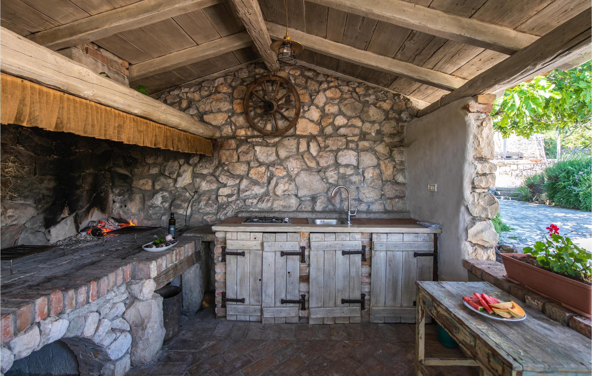 Diese schöne, mediterrane Villa befindet sich in Rabac, welches für seine schönen Kiesstrände, mit kristallklarem Meer sowie die Aussicht auf die Kvarner Bucht und die Inseln bekannt ist. Das Haus liegt am Rande des Ortes auf einer Anhöhe, in grüner Umgebung mit mediterraner Vegetation und Olivenhaien, welche der Vermieter züchtet. Das Haus ist im authentischen Istrien-Stil eingerichtet, mit schönen Holzmöbeln und vielen Details. Jedes Zimmer hat ein eigenes Badezimmer. Je zwei Schlafzimmer befinden sich auf der ersten und zweiten Etage. Vom Pool trennt Sie eine kleine Strasse die zum letzten Haus führt. Neben dem Pool befindet sich auch eine halboffene Sommerküche mit Holzbänken und einem Tisch, so dass Sie Ihr Abendessen auch im Freien einnehmen können. In der Nähe befinden sich auch einige Restaurants die mit Fischspezialitäten locken. Im Ortszentrum gibt es eine lange Promenade mit Eisdielen, Restaurants und vielem mehr. Aktive Urlauber können sich auf Tennisplätze, Mini-Golf, Rad- und Wanderwege freuen.
