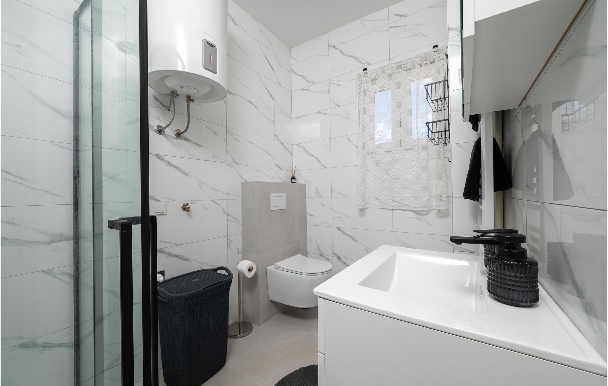Badezimmer 5m2 (nr. 1) - WC. Warmes und kaltes Wasser. Dusche