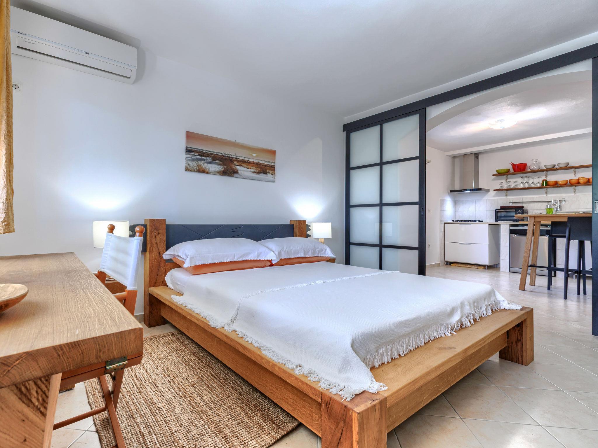 3-room semi-detached house 120 m2 on 2 levels. Beautiful and cosy furnishings: living/sleeping room with 1 french bed (140 cm), dining table, satellite TV, international TV channels and air conditioning. Open kitchen (oven, dishwasher, 4 ceramic glass hob hotplates, toaster, kettle, freezer, electric coffee machine). Shower/WC. Forced-air heating. On the lower ground floor: 1 room with 1 x 2 bunk beds (90 cm, length 200 cm). 1 room with 1 french bed (160 cm, length 200 cm). Open kitchen (oven, dishwasher, 2 ceramic glass hob hotplates, toaster, kettle, freezer, electric coffee machine). Exit to the terrace, to the swimming pool. Shower/WC. Terrace 20 m2. Terrace furniture, barbecue, deck chairs. Beautiful view of the sea and the forest. Facilities: washing machine. Internet (WiFi, free). Please note: non-smoking house. Maximum 3 pets/ dogs allowed.