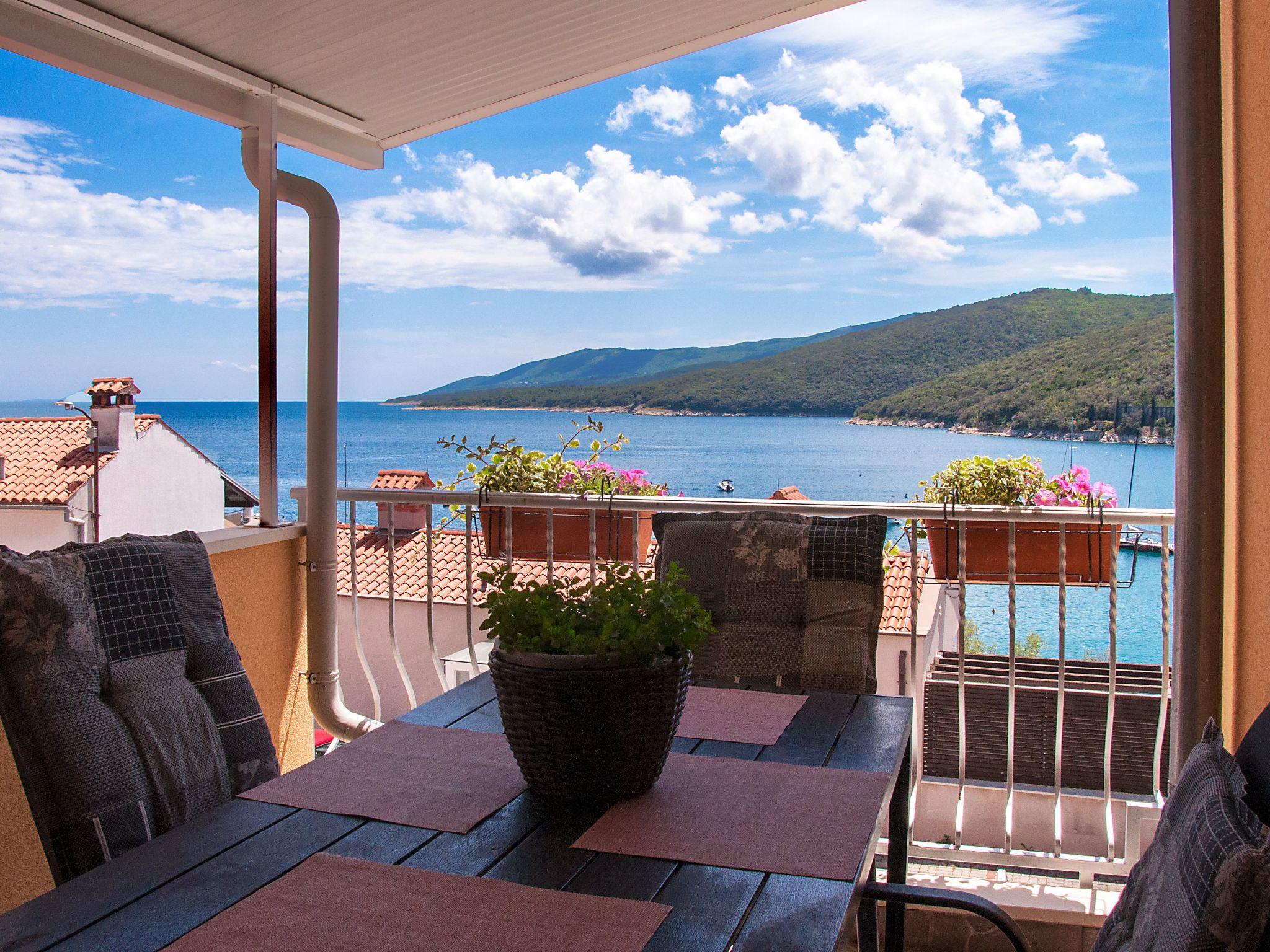 Step outside onto the balcony, an intimate space where the soft murmur of the sea and the gentle breeze create a symphony of tranquility. This outdoor area invites you to enjoy your morning coffee or unwind in the evening with a book, providing a private viewpoint to the vibrant life of Rabac.