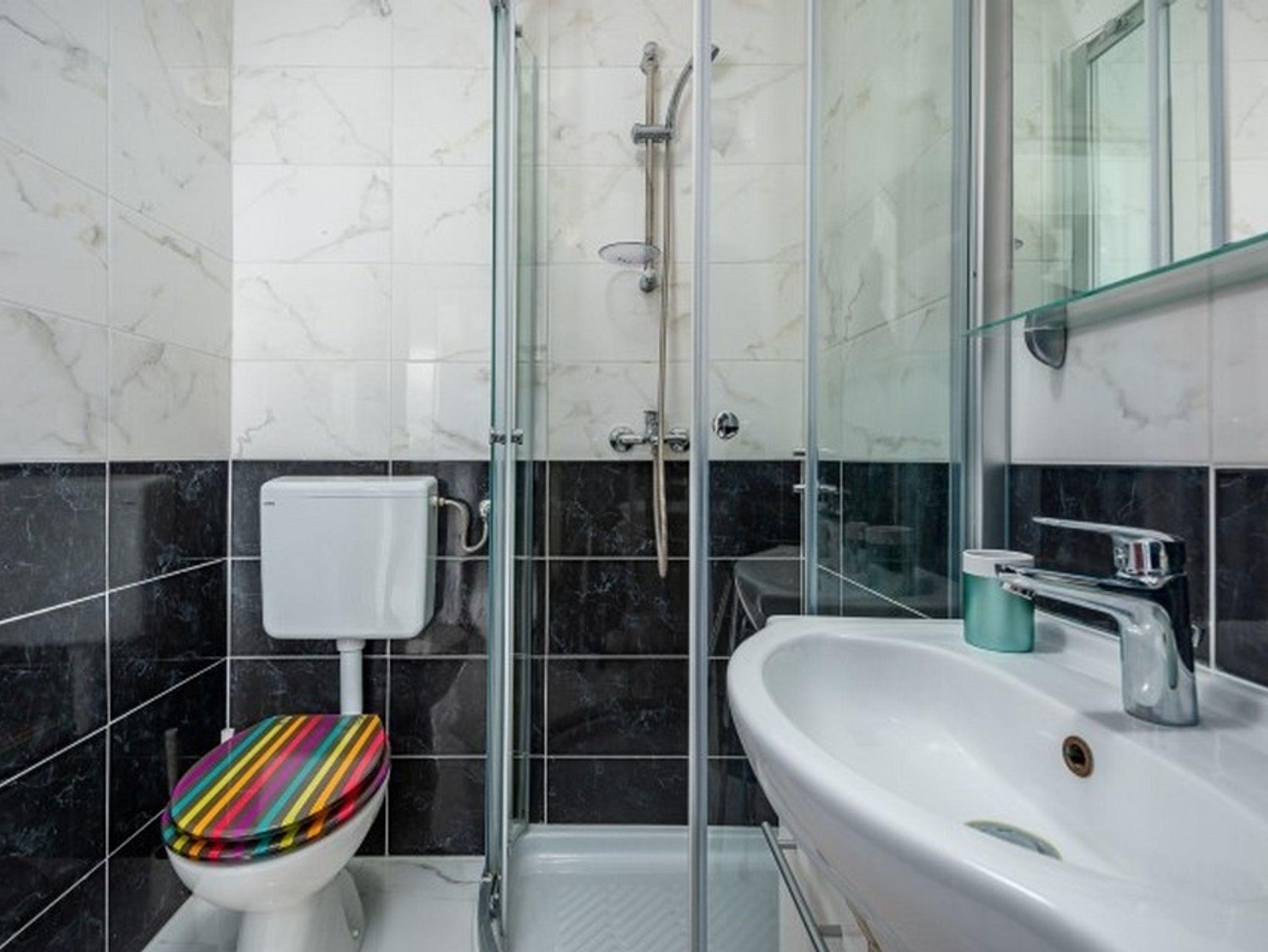 Studio bietet Platz für 2 Gäste. Die Betten sind in Schlafzimmern, die es 1 gibt, innerhalb einer Gesamtfläche von 19m2, angeordnet. Die Gäste haben eine eigene Terrasse zur Verfügung, auf der sie in warmen Sommernächten genießen können. Das Studio-Apartment bietet Meerblick. Es ist erlaubt, Speisen auf dem Gemeinschafts-Grill vorzubereiten. In der Unterkunftseinheit besteht die Möglichkeit des Mitbringens von Haustieren gegen Aufpreis. IM PREIS INBEGRIFFEN: Kurtaxe, Endreinigung, Klimatisierung, Internet, Föhn, tragbarer Grill. VERBINDLICHE ZUSÄTZLICHE KOSTEN: Aufzahlung für Kurzaufenthalte (prozentualer Zuschlag pro Nächtigungsanzahl: 30% - 1, 20% - 2, 10% - 3). UNVERBINDLICHE ZUSÄTZLICHE KOSTEN: Garage (6,00 € pro Nacht), Haustiere (10,00 € pro Nacht). Die Verfügbarkeit zusätzlicher Dienstleistungen in Ihrem reservierten Termin und die Preise derselben (falls nicht aufgeführt) müssen im Voraus überprüft werden. Zusätzliche Dienstleistungen die in der Zahlungsaufforderung nicht aufgeführt sind werden direkt beim Vermieter bezahlt, angenommen der Gast nutzt auch diese.