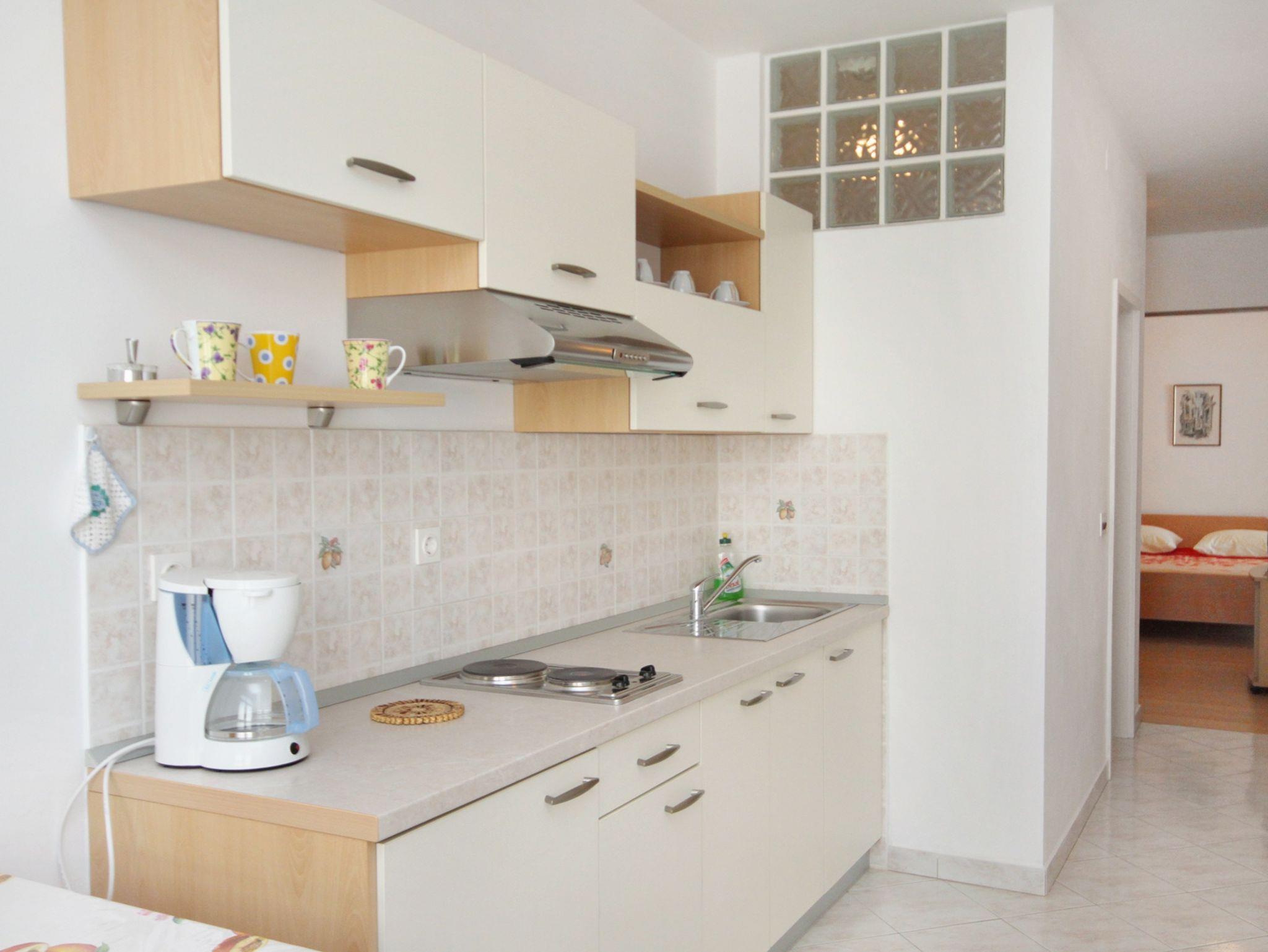 Ferienwohnung bietet Platz für 2 Gäste. Die Betten sind in Schlafzimmern, die es 1 gibt, innerhalb einer Gesamtfläche von 32m2, angeordnet. Die Gäste haben eine eigene Terrasse zur Verfügung, auf der sie in warmen Sommernächten genießen können. Das Apartment bietet Meerblick. Es ist erlaubt, Speisen auf dem Gemeinschafts-Grill vorzubereiten. Durch die Terrasse der gebuchten Unterkunftseinheit gehen auch andere Gäste oder Vermieter. IM PREIS INBEGRIFFEN: Kurtaxe, Endreinigung, Parkplatz, Garage, Internet, Kinderbett, Bügeleisen, tragbarer Grill, 1 Bett für Kinder (im Preis enthalten). VERBINDLICHE ZUSÄTZLICHE KOSTEN: Aufzahlung für Kurzaufenthalte (prozentualer Zuschlag pro Nächtigungsanzahl: 30% - 1, 20% - 2, 10% - 3). UNVERBINDLICHE ZUSÄTZLICHE KOSTEN: Klimatisierung (7,00 € pro Nacht), Zentralheizung (5,00 € pro Nacht). Die Verfügbarkeit zusätzlicher Dienstleistungen in Ihrem reservierten Termin und die Preise derselben (falls nicht aufgeführt) müssen im Voraus überprüft werden. Zusätzliche Dienstleistungen die in der Zahlungsaufforderung nicht aufgeführt sind werden direkt beim Vermieter bezahlt, angenommen der Gast nutzt auch diese.