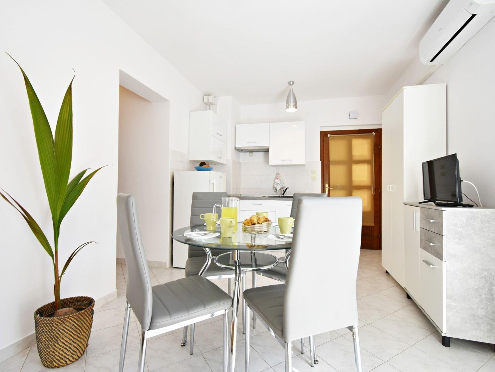 Ferienwohnung bietet Platz für 4 Gäste. Die Betten sind in Schlafzimmern, die es 1 gibt, und in Esszimmer, innerhalb einer Gesamtfläche von 34m2, angeordnet. Die Gäste haben einen eigenen Balkon zur Verfügung, auf der sie in warmen Sommernächten genießen können. Es ist erlaubt, Speisen auf dem Gemeinschafts-Grill vorzubereiten. In der Unterkunftseinheit besteht die Möglichkeit des Mitbringens von Haustieren gegen Aufpreis. IM PREIS INBEGRIFFEN: Kurtaxe, Endreinigung, Klimatisierung, Internet, Föhn, tragbarer Grill. VERBINDLICHE ZUSÄTZLICHE KOSTEN: Aufzahlung für Kurzaufenthalte (prozentualer Zuschlag pro Nächtigungsanzahl: 30% - 1, 20% - 2, 10% - 3). UNVERBINDLICHE ZUSÄTZLICHE KOSTEN: Garage (6,00 € pro Nacht), Haustiere (10,00 € pro Nacht). Die Verfügbarkeit zusätzlicher Dienstleistungen in Ihrem reservierten Termin und die Preise derselben (falls nicht aufgeführt) müssen im Voraus überprüft werden. Zusätzliche Dienstleistungen die in der Zahlungsaufforderung nicht aufgeführt sind werden direkt beim Vermieter bezahlt, angenommen der Gast nutzt auch diese.