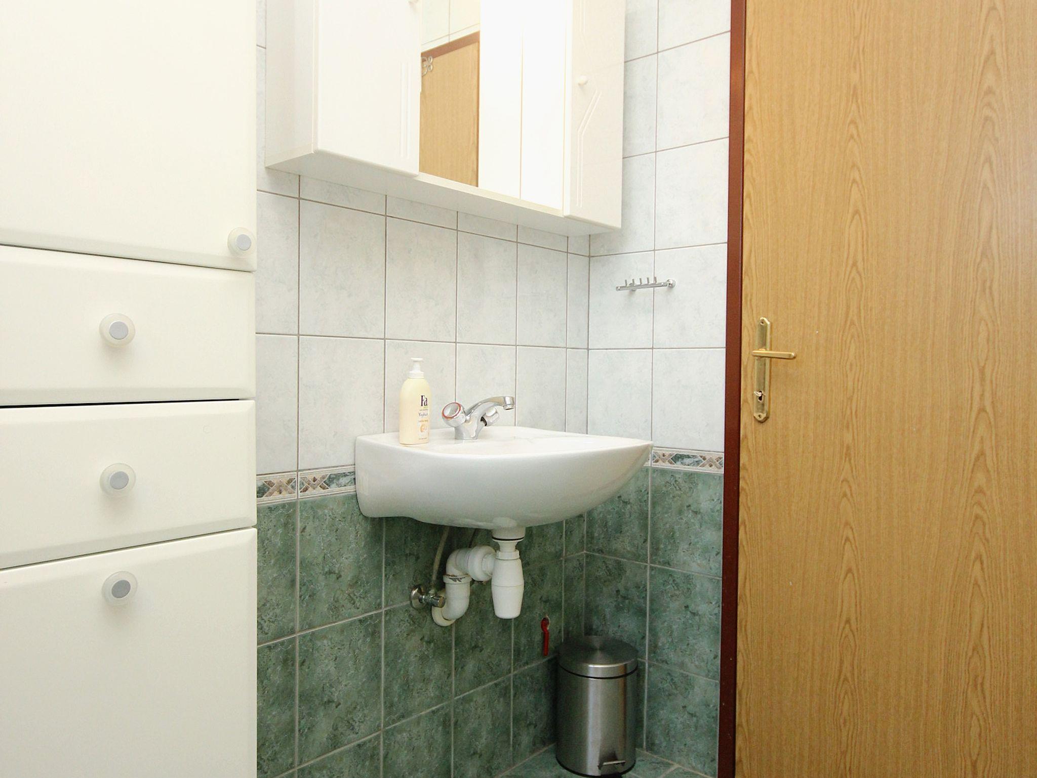 Ferienwohnung bietet Platz für 4 Gäste. Die Betten sind in Schlafzimmern, die es 2 gibt, innerhalb einer Gesamtfläche von 41m2, angeordnet. Die Gäste haben eine eigene Terrasse zur Verfügung, auf der sie in warmen Sommernächten genießen können. Das Apartment bietet Meerblick. Es ist erlaubt, Speisen auf dem Gemeinschafts-Grill vorzubereiten. IM PREIS INBEGRIFFEN: Kurtaxe, Endreinigung, Klimatisierung, Parkplatz, Internet, Bügeleisen, Bügelbrett, Föhn, Liegestühle. VERBINDLICHE ZUSÄTZLICHE KOSTEN: Aufzahlung für Kurzaufenthalte (prozentualer Zuschlag pro Nächtigungsanzahl: 30% - 1, 20% - 2, 10% - 3). UNVERBINDLICHE ZUSÄTZLICHE KOSTEN: Boot (50,00 € pro Nacht). Die Verfügbarkeit zusätzlicher Dienstleistungen in Ihrem reservierten Termin und die Preise derselben (falls nicht aufgeführt) müssen im Voraus überprüft werden. Zusätzliche Dienstleistungen die in der Zahlungsaufforderung nicht aufgeführt sind werden direkt beim Vermieter bezahlt, angenommen der Gast nutzt auch diese.