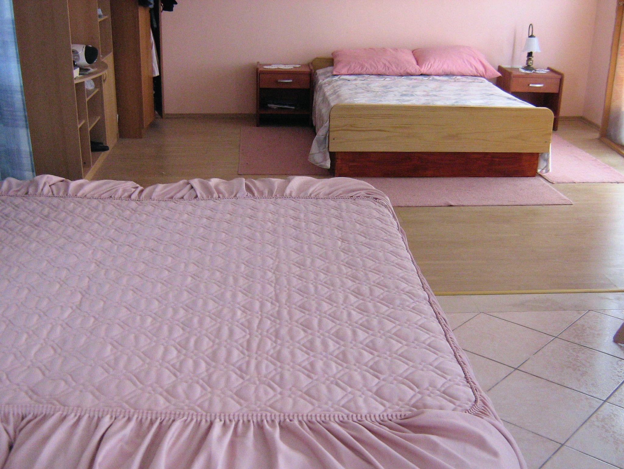 Ferienwohnung bietet Platz für 5 Gäste. Die Betten sind in Schlafzimmern, die es 2 gibt, innerhalb einer Gesamtfläche von 53m2, angeordnet. Die Gäste haben eine eigene Terrasse zur Verfügung, auf der sie in warmen Sommernächten genießen können. Das Apartment bietet Meerblick. Es ist erlaubt, Speisen auf dem Gemeinschafts-Grill vorzubereiten. Unterkunftseinheit hat Räume, die von dem Rest der Einheit abgetrennt werden. IM PREIS INBEGRIFFEN: Kurtaxe, Endreinigung, Parkplatz, Internet, Bügeleisen, Bügelbrett, Föhn, Liegestühle. VERBINDLICHE ZUSÄTZLICHE KOSTEN: Aufzahlung für Kurzaufenthalte (prozentualer Zuschlag pro Nächtigungsanzahl: 30% - 1, 20% - 2, 10% - 3). UNVERBINDLICHE ZUSÄTZLICHE KOSTEN: Klimatisierung (10,00 € pro Nacht), Boot (50,00 € pro Nacht). Die Verfügbarkeit zusätzlicher Dienstleistungen in Ihrem reservierten Termin und die Preise derselben (falls nicht aufgeführt) müssen im Voraus überprüft werden. Zusätzliche Dienstleistungen die in der Zahlungsaufforderung nicht aufgeführt sind werden direkt beim Vermieter bezahlt, angenommen der Gast nutzt auch diese.