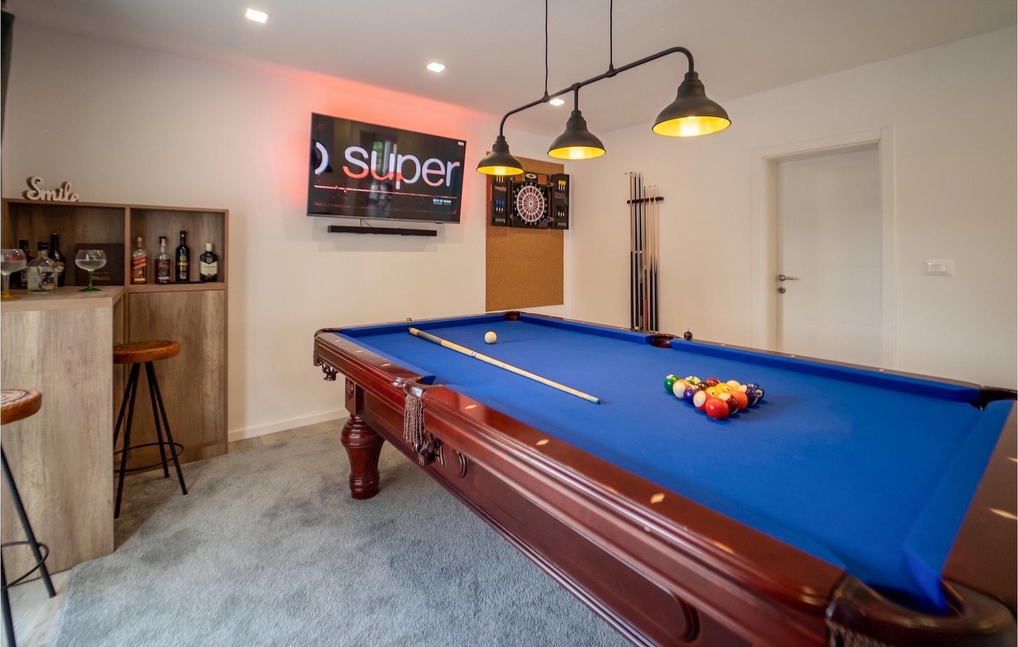 Möchten Sie Ihren Urlaub in einer Villa nur 90 m vom Meer entfernt mit einer wunderschönen Aussicht verbringen? Dann werfen Sie unbedingt einen Blick auf die Villa Miracle. Diese Villa ist die perfekte Wahl für eine Gruppe von 8 Personen. Das erste, was Ihnen bei Ihrer Ankunft auf dem Grundstück auffallen wird, ist wahrscheinlich der traumhafte Infinity-Pool mit Blick auf die Umgebung. Im Inneren der Villa laden moderne, zeitlos eingerichtete Zimmer zum Verweilen ein. Im Erdgeschoss finden Sie eine Küche und einen Essbereich mit Fernseher daneben. Falls Sie draußen speisen möchten, gibt es einen weiteren Esstisch im Freien sowie einen Grill. Suchen Sie Unterhaltung? Dann begeben Sie sich in den Unterhaltungsraum und spielen Sie eine Runde Billard oder Dart – ein Bartisch und Fernseher verleihen diesem Raum eine besondere Note. Eines der 3 Schlafzimmer befindet sich im Erdgeschoss, während sich die anderen im Obergeschoss befinden, von denen eines direkten Zugang zur Terrasse hat. Im ersten Stock finden Sie auch das Wohnzimmer - machen Sie es sich auf der Couch oder der großen Terrasse mit Gartenmöbeln und Liegestühlen gemütlich. Entspannen Sie sich, genießen Sie die atemberaubende Aussicht und verbringen Sie einen unvergesslichen Urlaub - reservieren Sie die Villa Miracle jetztVilla Miracle befindet sich im kleinen Dorf Ražanj nahe Split. Es handelt sich um ein traditionelles, kleines Fischerdorf, welches mittlerweile eine sehr beliebte Urlaubsdestination ist. Die hügelige Landschaft, die Pinienbäume sowie die zahlreichen Strände bieten zusammen ein typisch, dalmatinisches Ambiente. Zwischen Rogoznica und Primošten liegend bietet es sich als perfekter Ausgangspunkt für Tagesausflüge an. Besuchen Sie auf jeden Fall bekannte Sehenswürdigkeiten wie den See “Drachenauge” in Rogoznica und die Statue der Madonna von Loreto in Primošten - dort werden Sie von der atemberaubenden Aussicht begeistert sein. Nutzen Sie außerdem die Möglichkeit durch die Straßen von Šibenik und Split zu spazieren sowie den Nationalpark Krka zu besichtigen.