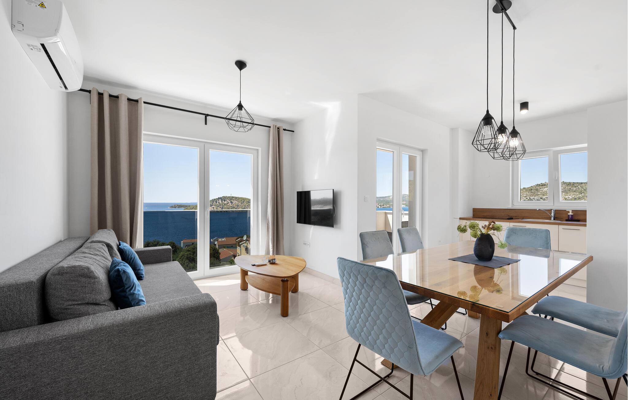 Das Meer ist nur einen Katzensprung entfernt und ist ideal für ungestörte Stunden am Wasser. Die Gegend rund um Ražanj bietet viele Möglichkeiten für Spaziergänge oder für kleine Entdeckungstouren entlang der Küste. Wer Lust auf einen kulturellen Abstecher hat, sollte das nahegelegene Trogir besuchen – eine charmante Altstadt voller mediterranem Flair, mit engen Gassen, historischen Mauern und kleinen Straßencafés. Auch Bootsausflüge lohnen sich: Erkunden Sie versteckte Buchten oder nehmen Sie Kurs auf eine der umliegenden Inseln, wo kristallklares Wasser und unberührte Natur auf Sie warten.
