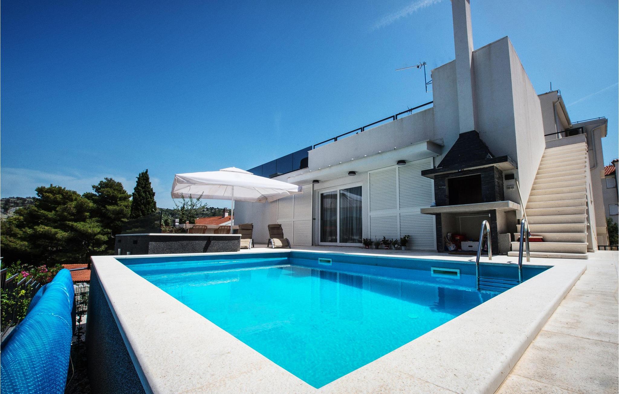 Verbringen Sie eine entspannte Auszeit in diesem komfortablen Ferienhaus mit Pool.