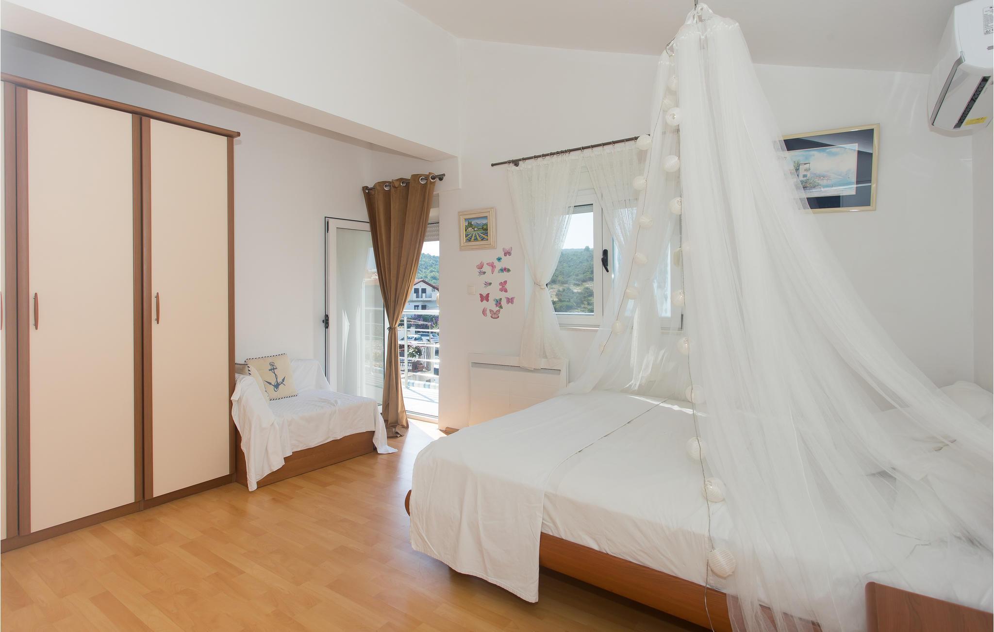 Das Haus empfängt Sie in hervorragender Lage, von hier aus erreichen Sie den Strand bequem zu Fuß. Es liegt in einer Küstenstadt in der Nähe von Rogoznica. Der gemütliche Wohnbereich wird schnell zum Zentrum der gemeinsamen Aktivitäten, machen Sie es sich nach einem Strandtag oder einem spannenden Ausflug in der großzügigen Sofalandschaft gemütlich, plaudern Sie noch lange und sehen Sie zusammen einen Film an.