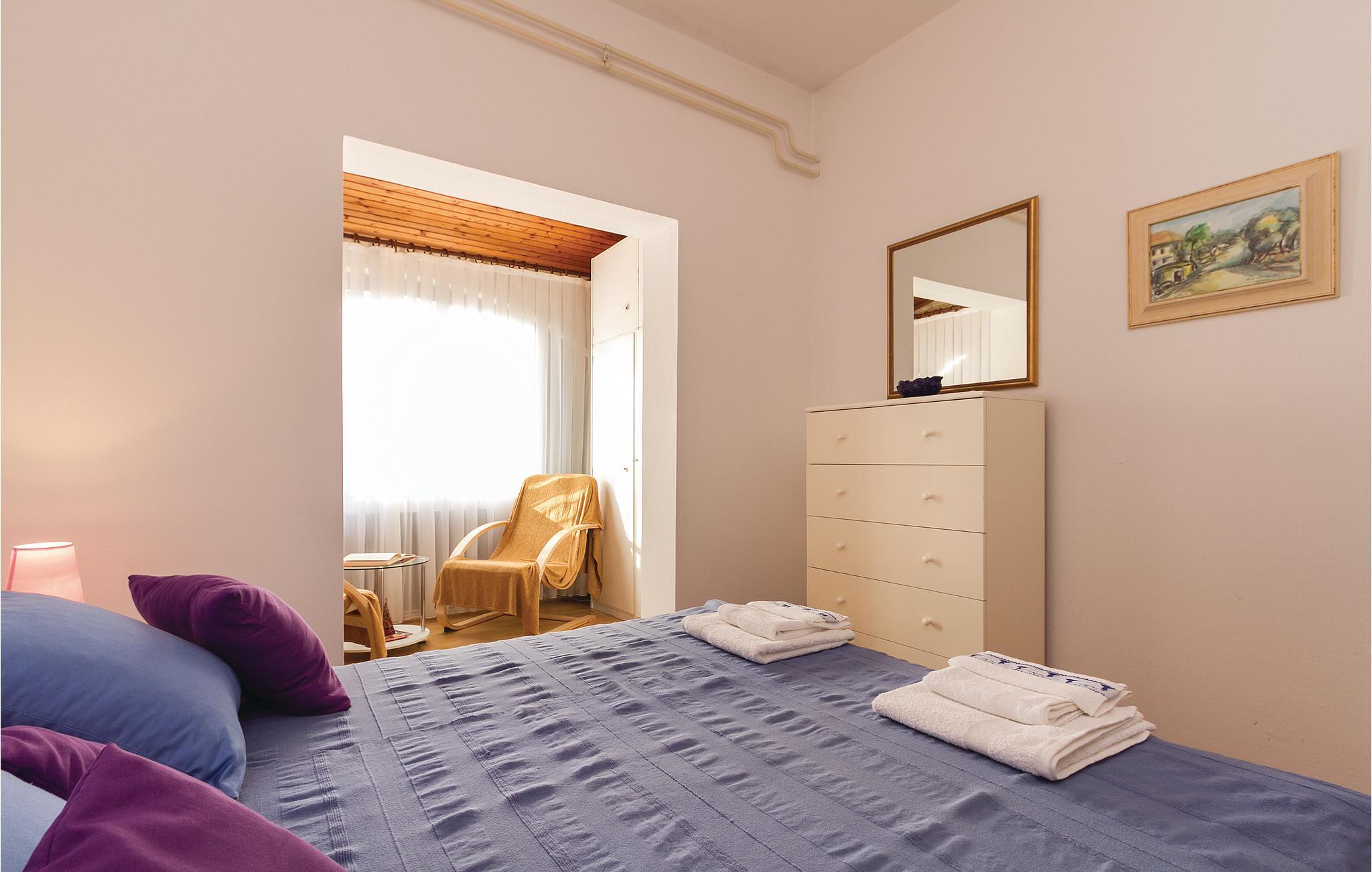 Im Hochparterre eines Wohnhauses befindet sich diese Ferienwohnung. Das Haus liegt auf einem Hang und den Eingang der Wohnung erreichen Sie über ein paar Treppen. So können Sie den Berg gemütlich hinunter spazieren und auf diesen Weg das romantische Stadtzentrum von Rovinj erreichen. Das geräumige Wohnzimmer liegt auf der Nordseite und ist von der direkten Sonneneinstrahlung geschützt. Lassen Sie sich vom Stadtbild Rovinjs begeistern, das eine abwechslungsreiche Geschichte prägte. Spazieren Sie durch die Altstadt mit ihren verwinkelten Gässchen und genießen Sie Ihr Lieblingsgetränk in einer der Bars, die direkt auf den ins Meer abfallenden Hängen erbaut sind.