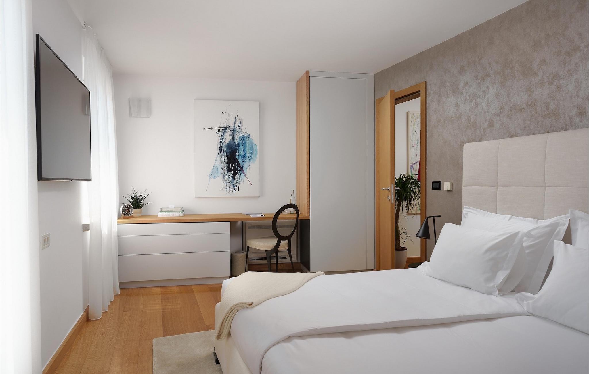 Villa Malipiero Residence besteht aus mehreren Etagen, die jede für sich besonders ist. Auf der ersten Ebene befinden sich der gut ausgestattete Fitnessraum und der Wellnessbereich mit Sauna sowie ein Badezimmer. Relaxen Sie hier oder powern Sie sich beim Sport aus. Ebene 2 besteht aus 2 komfortablen Schlafzimmern und 2 modernen Ensuite-Badezimmern. Auf der dritten Ebene finden Sie 2 weitere Schlafzimmer mit jeweils eigenem Badezimmer, eine Vinothek mit kleiner Küche und Esstisch für 6 Personen. Ebene 4 verfügt über den Wohnbereich mit Küche und Essbereich, eine Bibliothek und eine Außenterrasse. Hier bietet sich Ihnen ein wunderschöner Blick aufs Meer. Eine Ebene höher befinden sich ein weiteres hübsches Wohnzimmer, noch eine gut ausgestattete Küche und ein Badezimmer. Auf der 6. Etage gibt es ein schönes bequemes Schlafzimmer mit Balkon, welches Ihnen einen wunderschönen Blick aufs Meer und die vorliegenden Inseln bietet. Auch ein weiteres Badezimmer steht Ihnen hier zur Verfügung. Von der obersten Etage haben Sie einen 180 Grad-Panoramablick aufs Meer, der Sie verzaubern wird. Auf dieser 7. Etage gibt es ein Schlafzimmer und ein modernes Badezimmer. Die Villa ist komplett klimatisiert und alle Schlafzimmer haben einen Fernseher. Villa Malipiero Residence bietet viele Zusatzleistungen wie hauseigene Weinprobe, Privatkoch, Massage, Yogakurse, persönliches Fitnesstraining, Privattransfer, geführte Touren, Bootsverleih und Fahrradverleih. Bitte kontaktieren Sie uns für weitere Informationen.