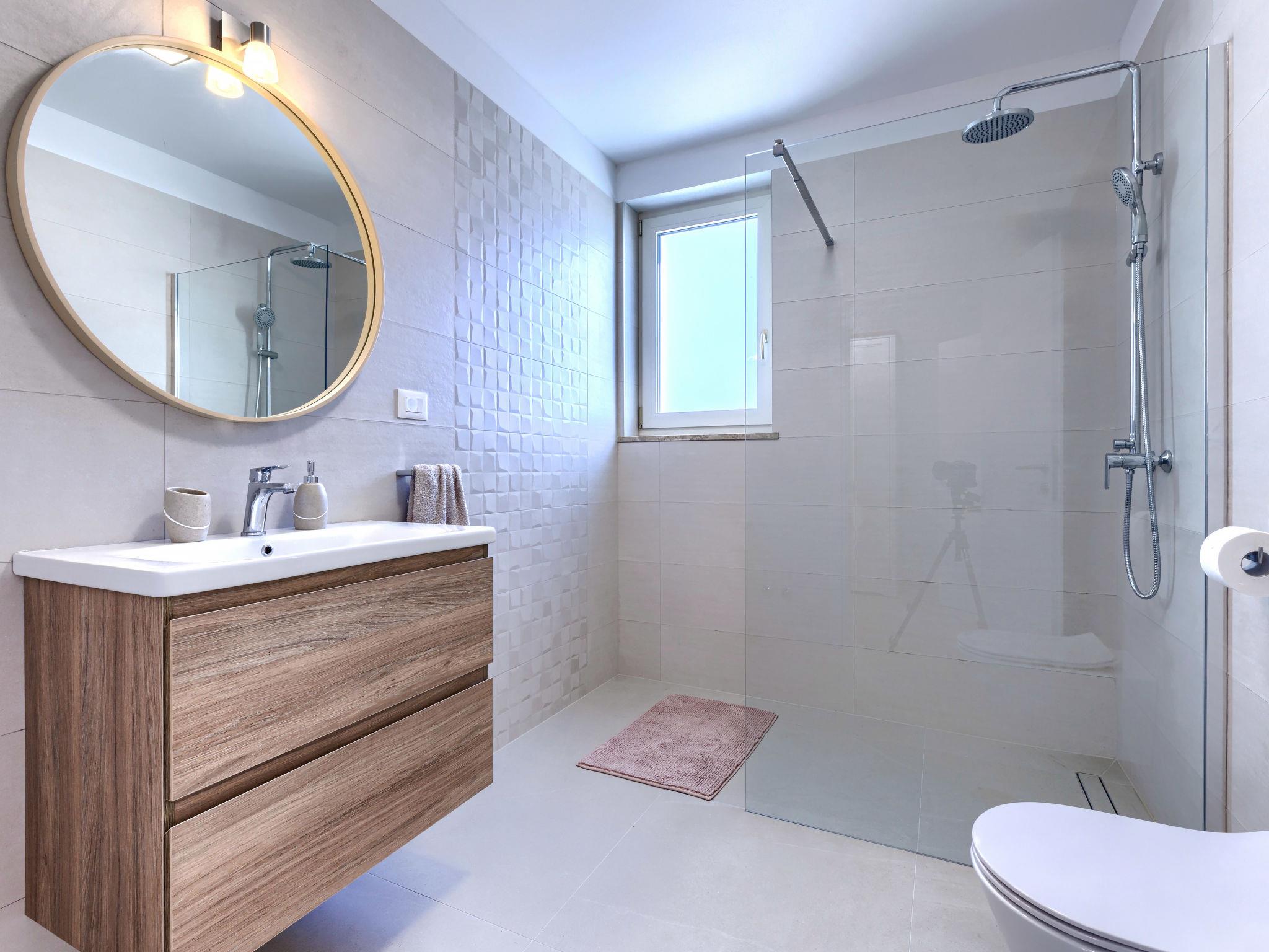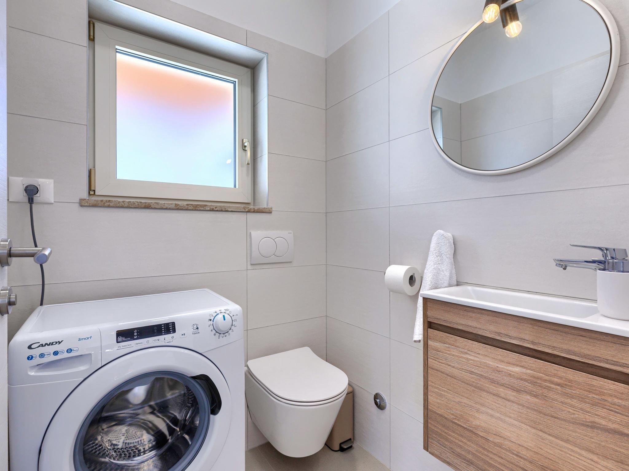 Modern, luxurious villa "Jolanda", 2 storeys, built in 2024. In the hamlet Pamici 4 km from the centre of Žminj, 25 km from the sea, 25 km from the beach. Private: property 7'000 m2 with lawn and trees, swimming pool angular (9 x 4 m, 36 m2, depth 140 cm, seasonal availability: 01.May. - 01.Oct.) with internal staircase. Outdoor shower, barbecue, barbecue house, children's playground (swing). In the house: internet access, washing machine. Parking (for 4 cars) at the house on the premises. Shop 2.8 km, supermarket 2.8 km, restaurant 3 km, bus stop 3.9 km, pebble beach 25 km. Nearby attractions: adventure park 20 km, zip line 15 km.