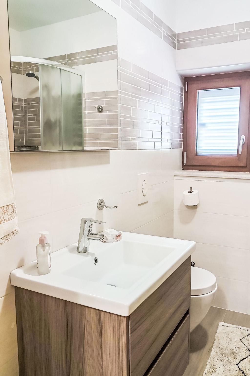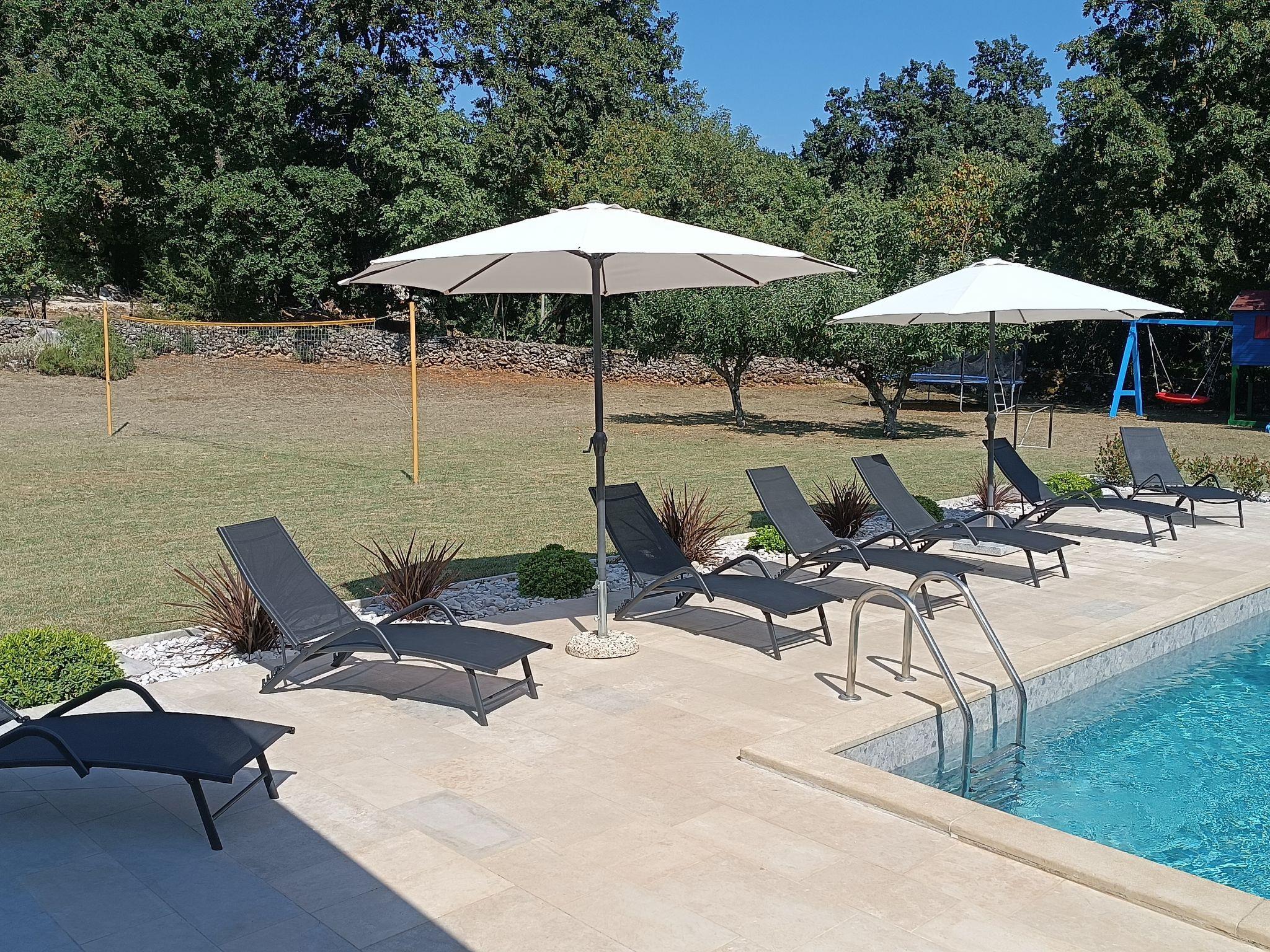 Beautiful single-family house "Villa Križanci". In the hamlet Križanci 2.5 km from the centre of Žminj, 26 km from the centre of Rovinj, 26 km from the sea. Private: property 2'000 m2 (fenced), garden with lawn and wildlife garden, swimming pool angular (8 x 3 m, depth 140 cm, seasonal availability: 01.May. - 01.Nov.). Outdoor shower, terrace (20 m2), garden furniture, barbecue (swing), pool maintenance by the owner/gardener. In the house: internet access, washing machine. Parking (for 3 cars) at the house on the premises. Supermarket 2 km, restaurant 2 km, bus stop 3 km, pebble beach 26 km. Riding stable 10 km, walking paths from the house 200 m, cycle lane 250 m. Nearby attractions: adventure park 20 km, zip line 15 km. The owner does not accept any youth groups.