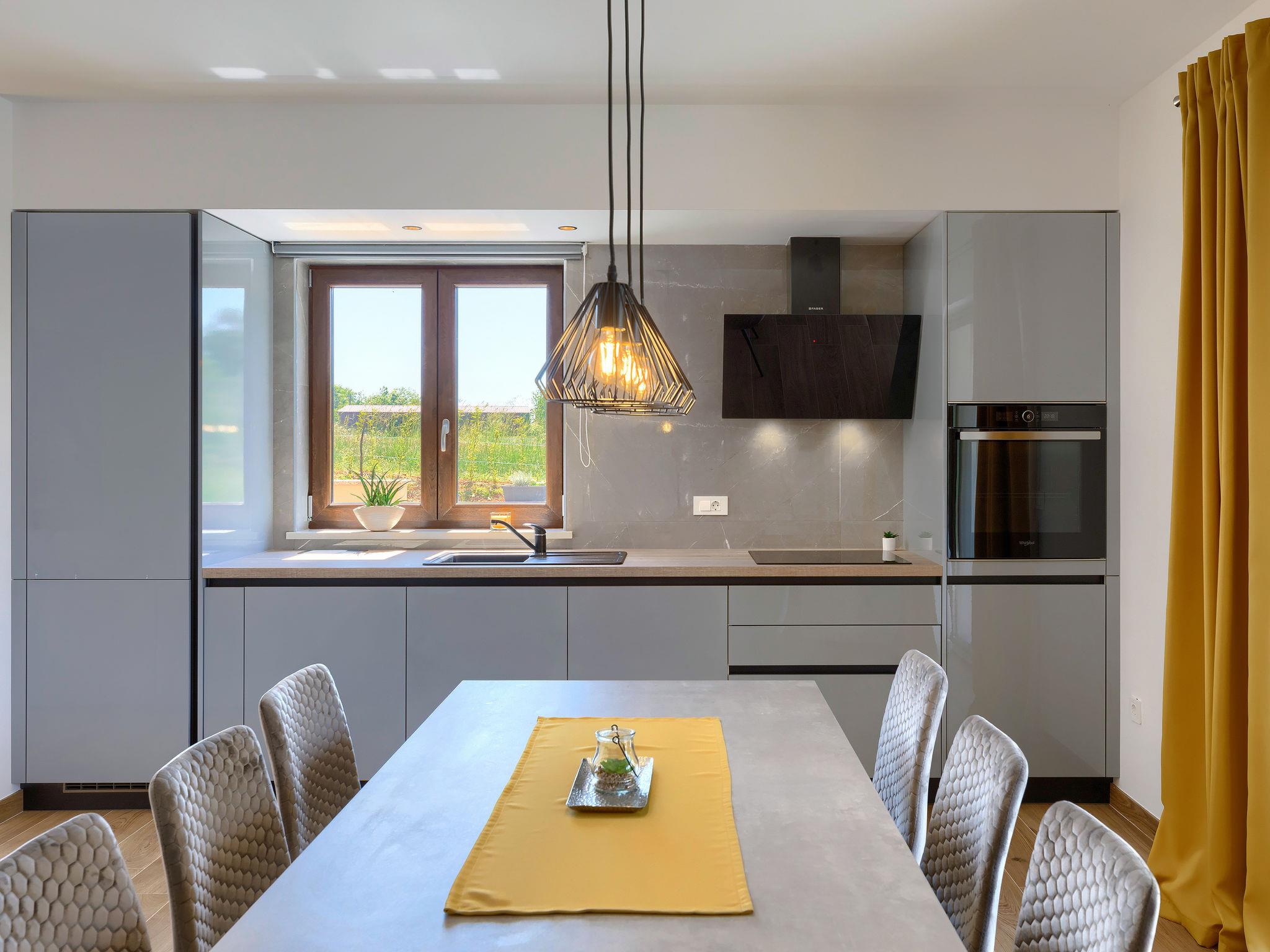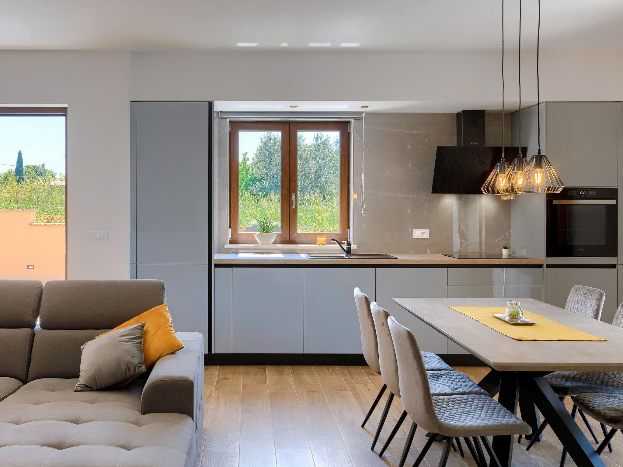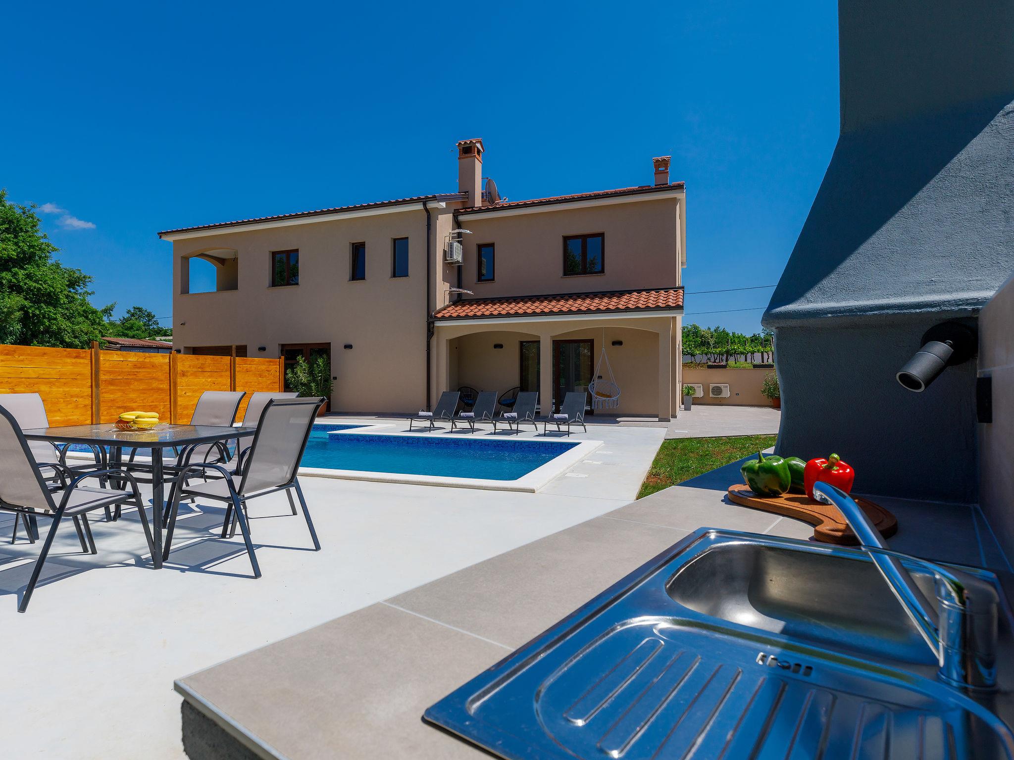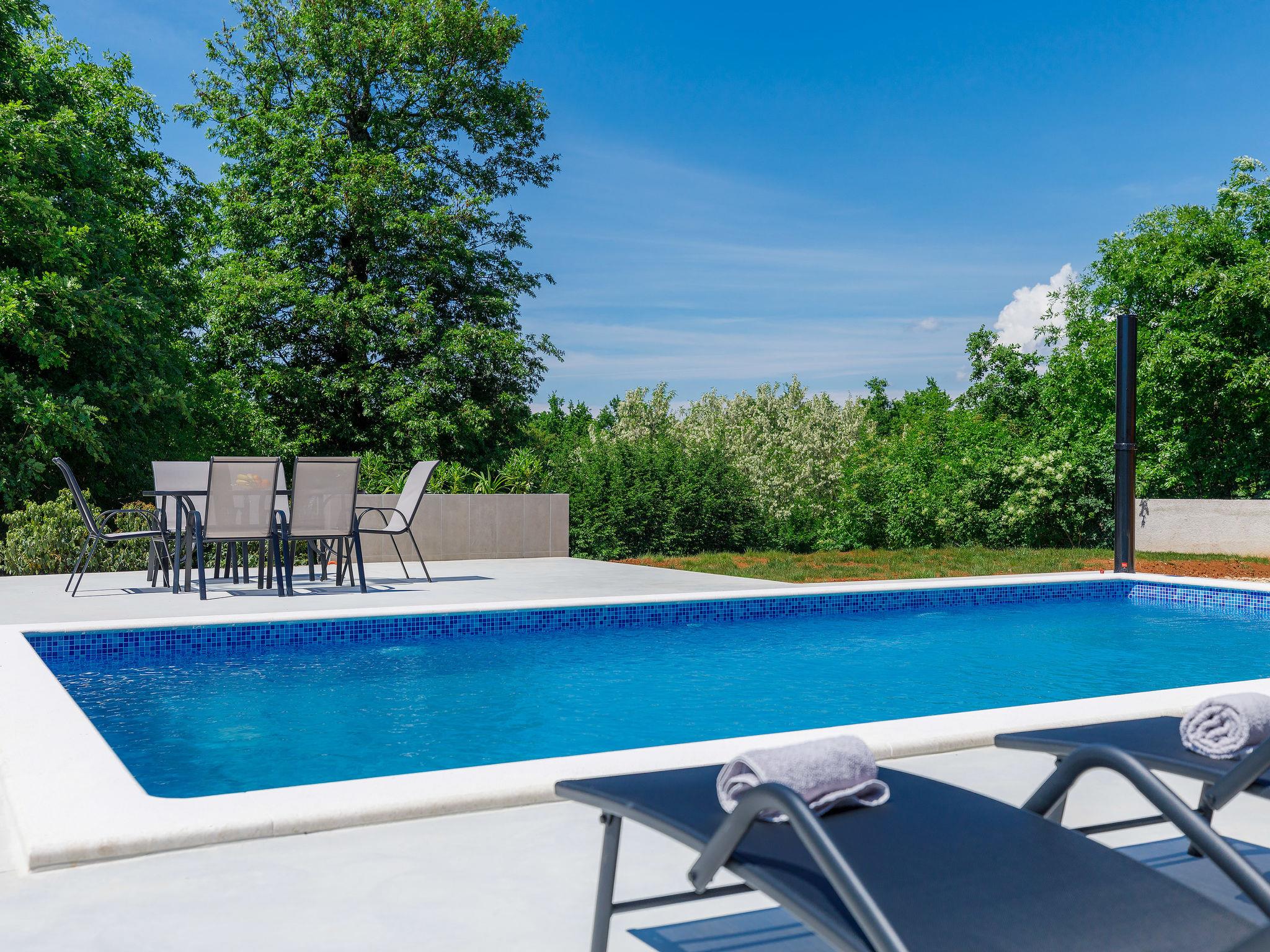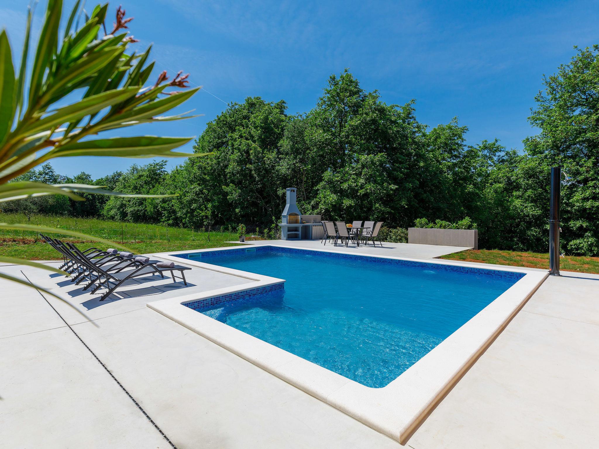 2-family house "Eroa", built in 2022. In the hamlet Orbanici Gorenji 2 km from the centre of Žminj, in a quiet, sunny position, 25 km from the sea, in a cul-de-sac. Private: property 500 m2, swimming pool angular (32 m2, depth 150 cm, seasonal availability: 01.May. - 30.Sep.) with internal staircase. Paddling pool, outdoor shower, barbecue. In the house: internet access. Parking at the house on the premises. Shop 2 km, restaurant 3 km, bus stop 3.2 km, pebble beach 25 km. Walking paths from the house 100 m, cycle lane 150 m.