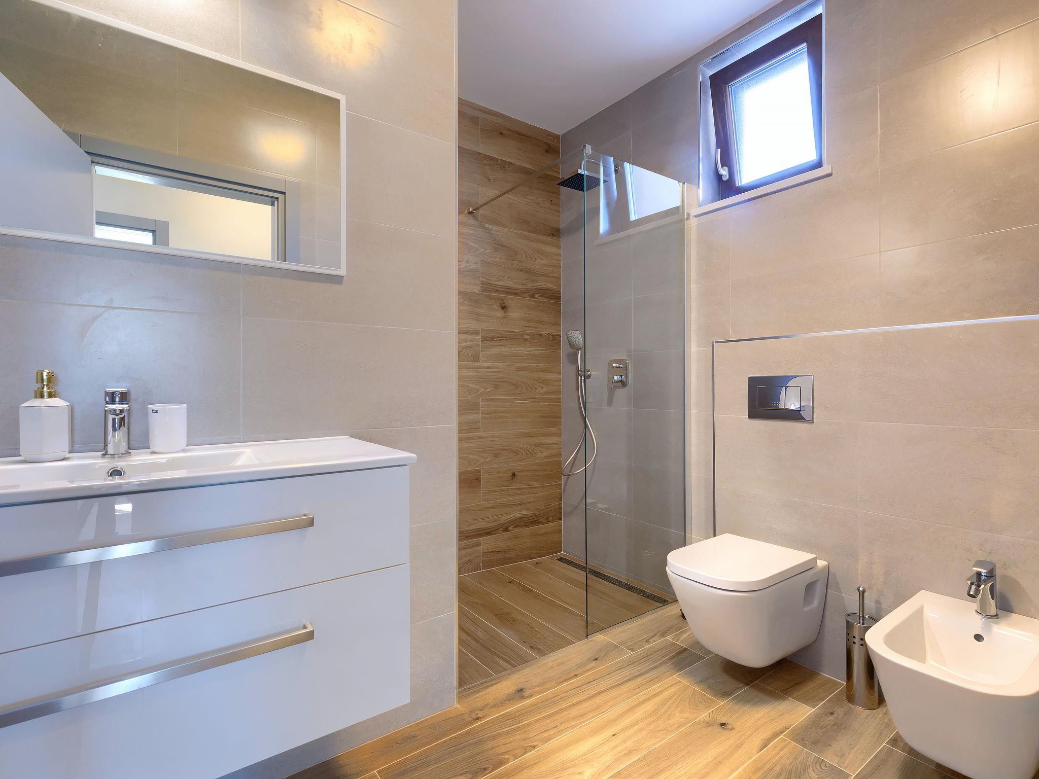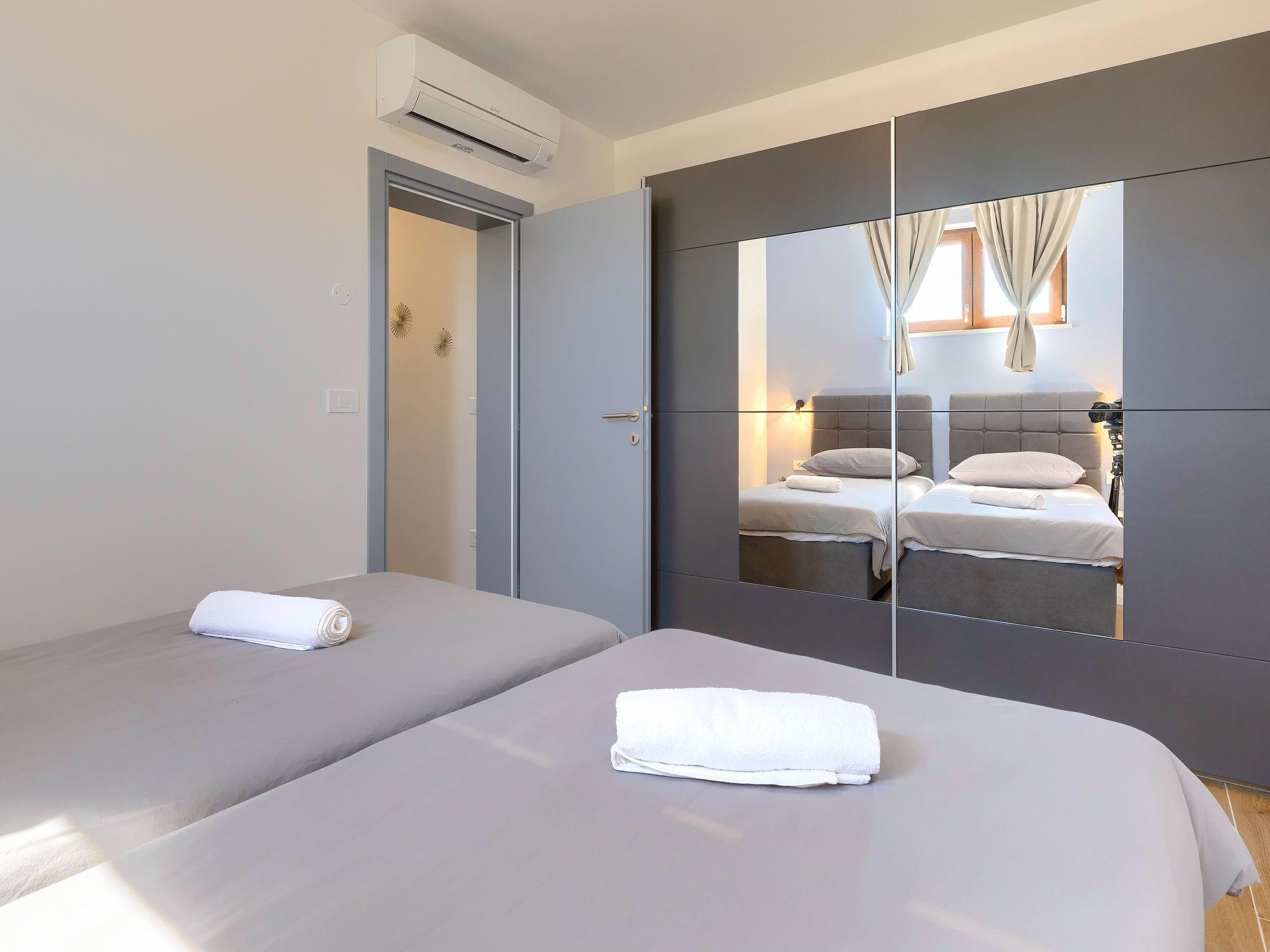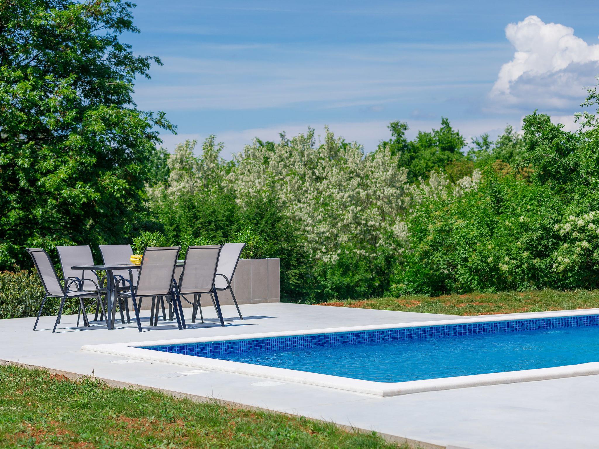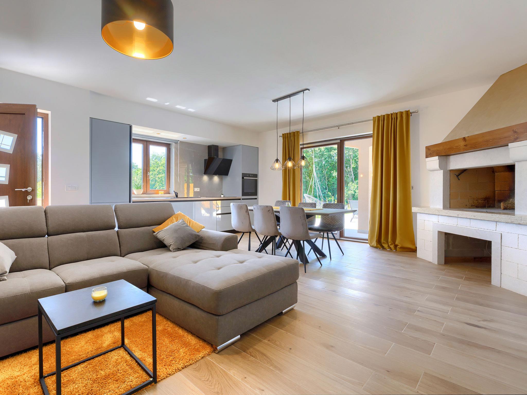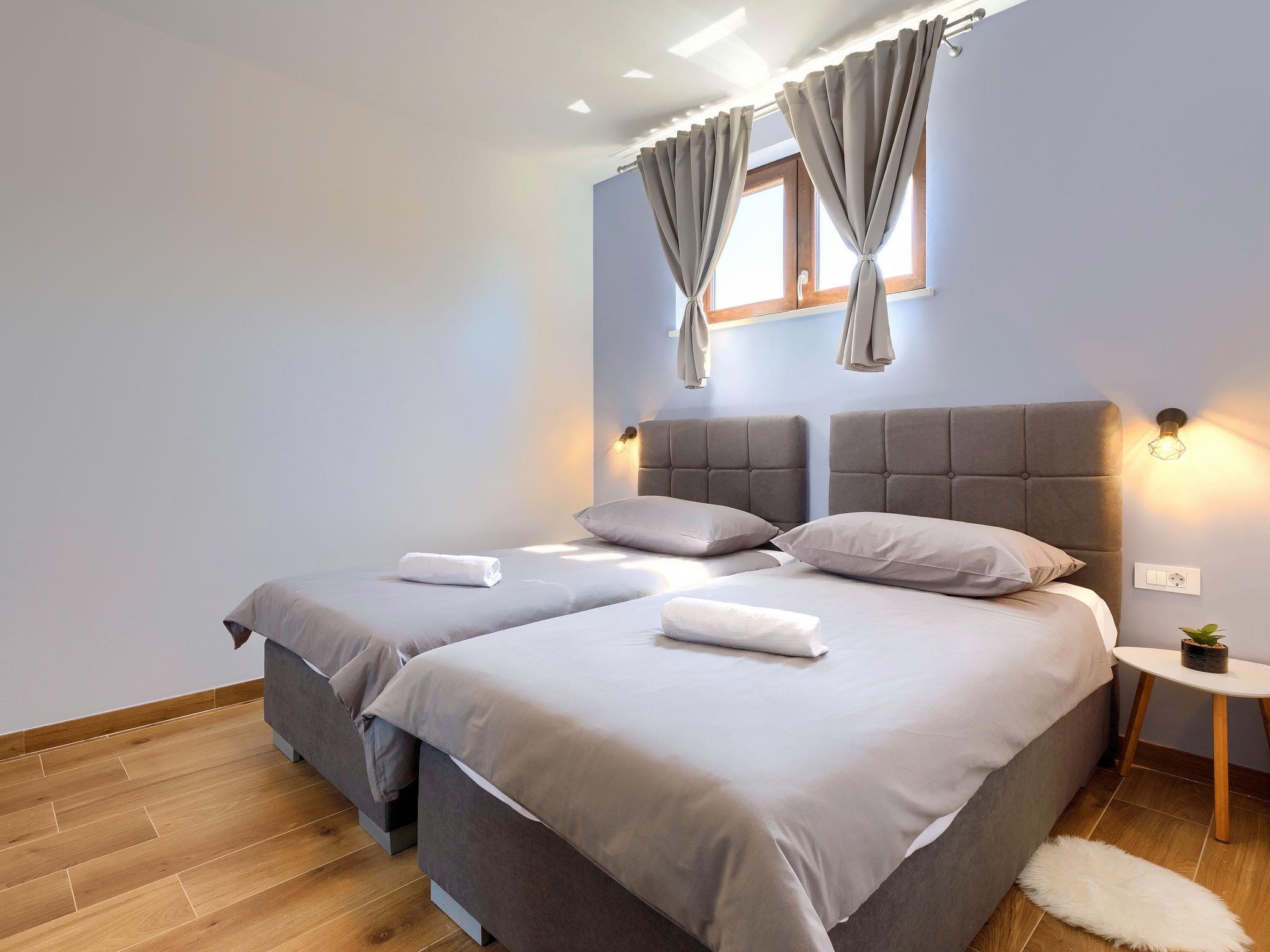 2-family house "Eroa", built in 2022. In the hamlet Orbanici Gorenji 2 km from the centre of Žminj, in a quiet, sunny position, 25 km from the sea, in a cul-de-sac. Private: property 500 m2, swimming pool angular (32 m2, depth 150 cm, seasonal availability: 01.May. - 30.Sep.) with internal staircase. Paddling pool, outdoor shower, barbecue. In the house: internet access. Parking at the house on the premises. Shop 2 km, restaurant 3 km, bus stop 3.2 km, pebble beach 25 km. Walking paths from the house 100 m, cycle lane 150 m.