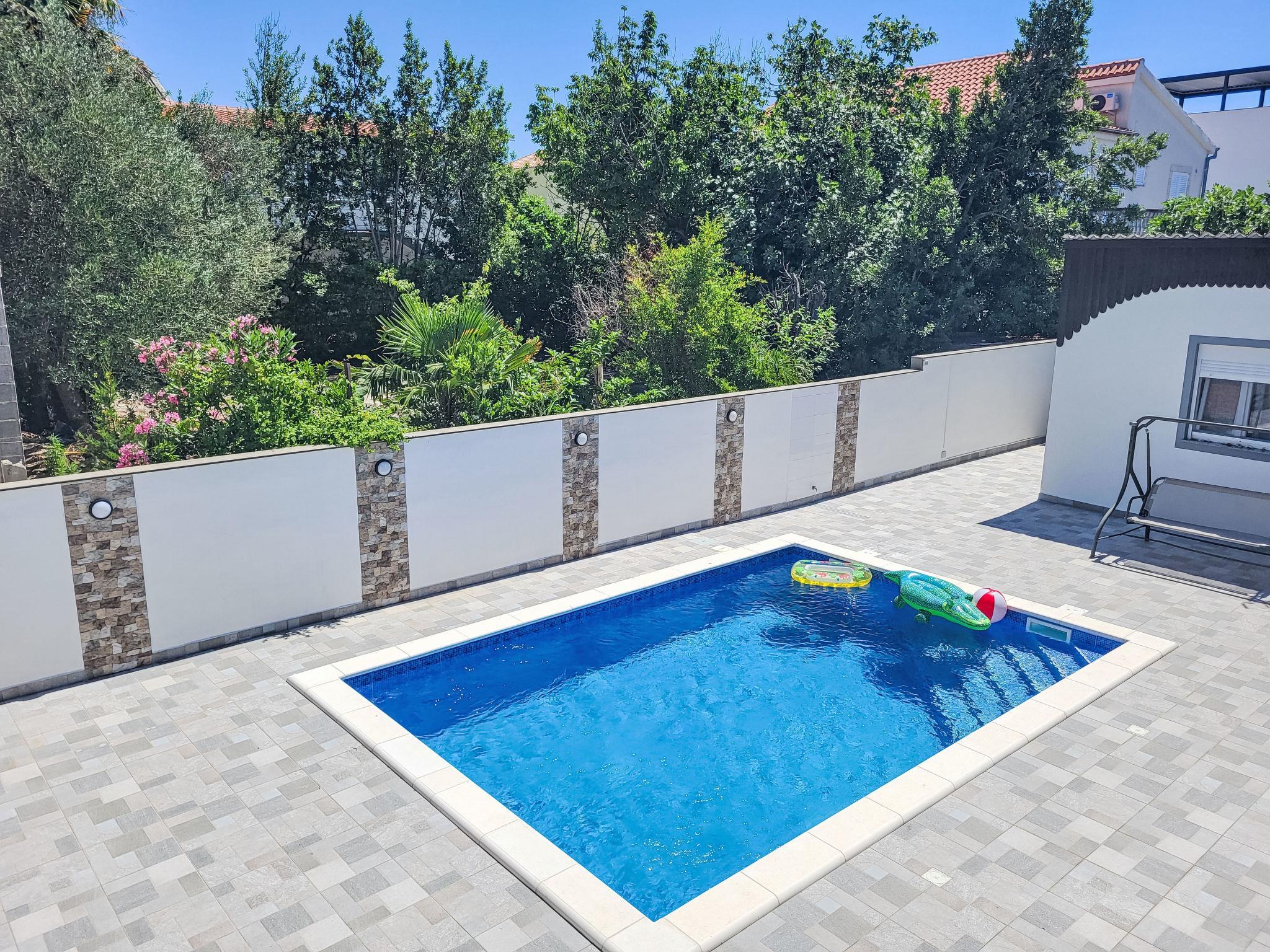 Single-family house "Matea". 250 m from the centre of Sabunike, 5 km from the centre of Privlaka, 180 m from the sea, 180 m from the beach. Private: property 50 m2, swimming pool angular (5 x 4 m, depth 150 cm, seasonal availability: 01.May. - 01.Oct.) with internal staircase. In the house: internet access, washing machine. Parking at the house on the premises. Shop 250 m, restaurant 20 m, bus stop 850 m, concrete beach 180 m. Children's playground 100 m. Please note: the owner lives on the same property. Airfield 33 km from the property.