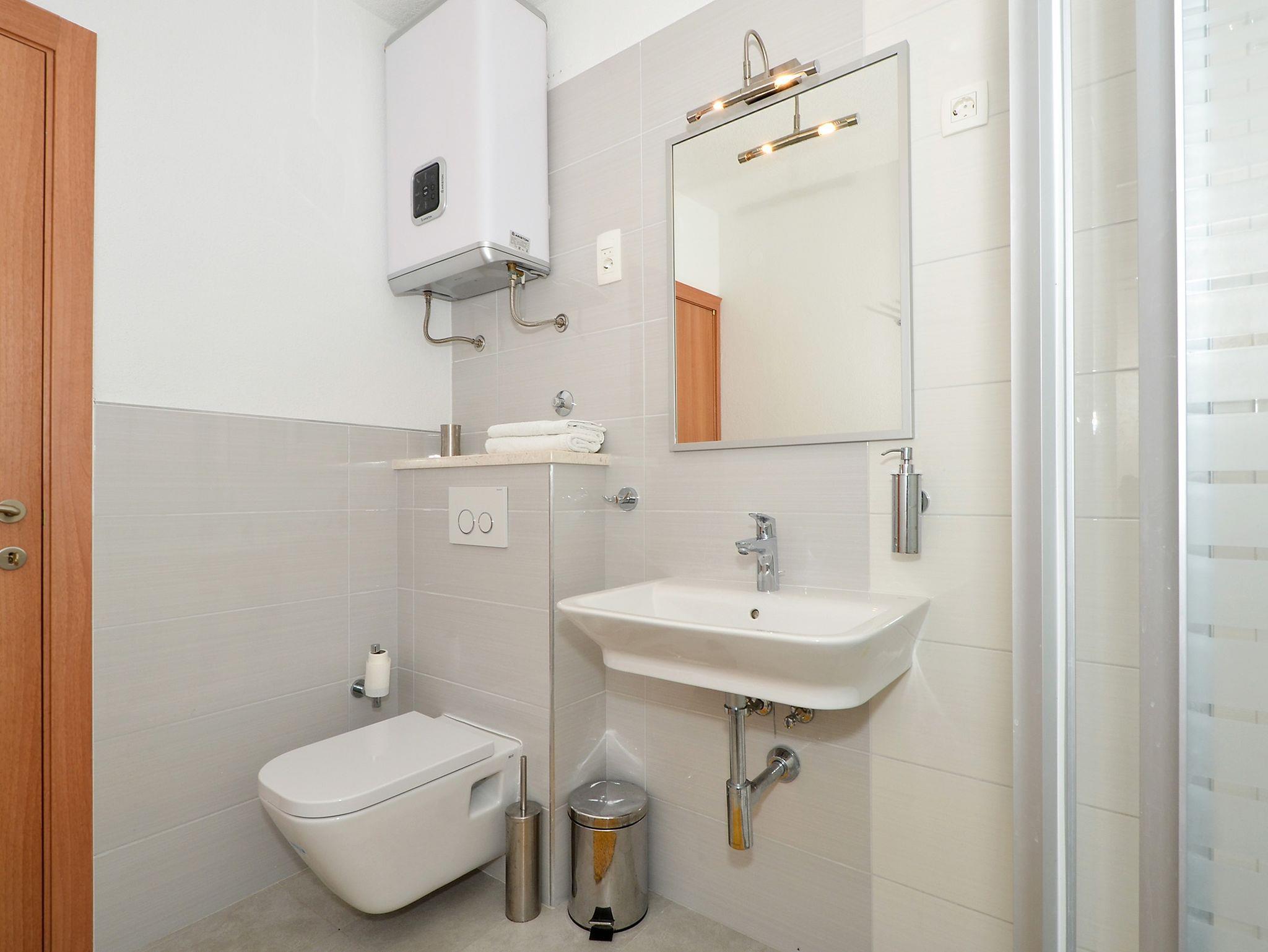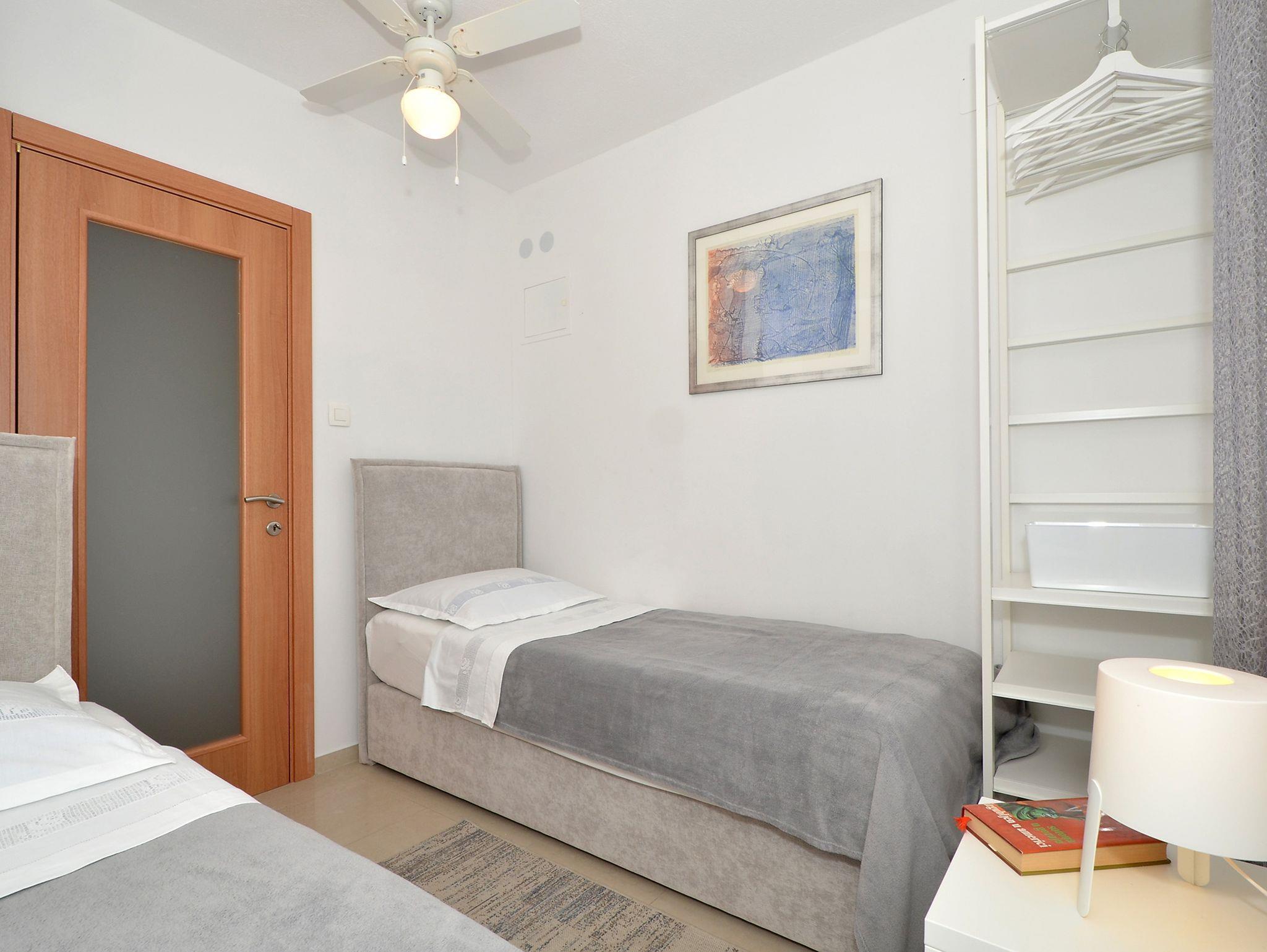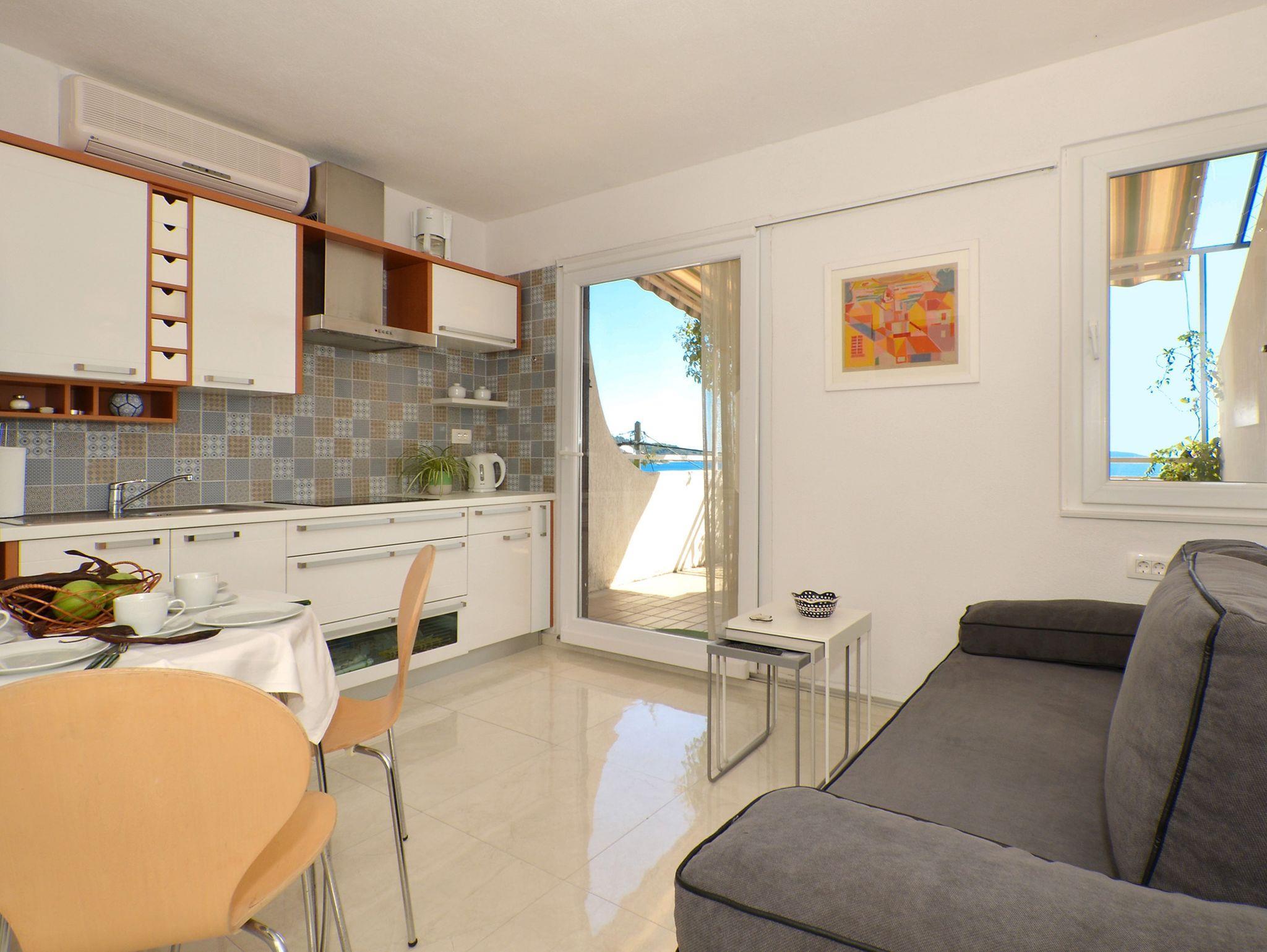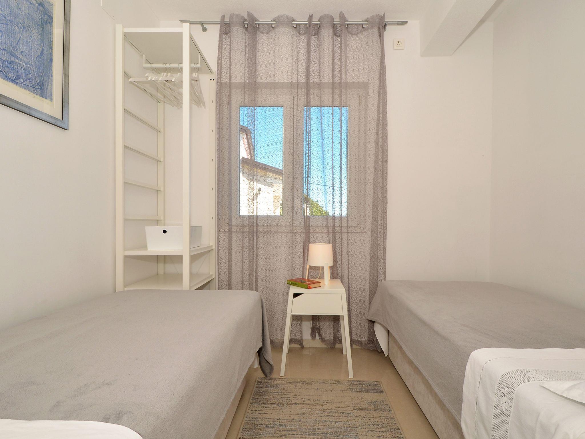 Ferienwohnung bietet Platz für 5 Gäste. Die Betten sind in Schlafzimmern, die es 2 gibt, und in Wohnzimmer, innerhalb einer Gesamtfläche von 42m2, angeordnet. Die Gäste haben eine eigene Terrasse zur Verfügung, auf der sie in warmen Sommernächten genießen können. Das Apartment bietet Meerblick. Es ist erlaubt, Speisen auf dem Gemeinschafts-Grill vorzubereiten. Während ihres Aufenthalts können Gäste das gemeinsam zur Nutzung stehende Schwimmbad benutzen. In der Unterkunftseinheit besteht die Möglichkeit des Mitbringens von Haustieren gegen Aufpreis. IM PREIS INBEGRIFFEN: Kurtaxe, Endreinigung, Pool, Garage, Internet, Bootsanlegeplatz, Kinderbett, Bügeleisen, Bügelbrett, Föhn, tragbarer Grill. UNVERBINDLICHE ZUSÄTZLICHE KOSTEN: Klimatisierung (10,00 € pro Nacht), Haustiere (10,00 € pro Nacht). Die Verfügbarkeit zusätzlicher Dienstleistungen in Ihrem reservierten Termin und die Preise derselben (falls nicht aufgeführt) müssen im Voraus überprüft werden. Zusätzliche Dienstleistungen die in der Zahlungsaufforderung nicht aufgeführt sind werden direkt beim Vermieter bezahlt, angenommen der Gast nutzt auch diese.