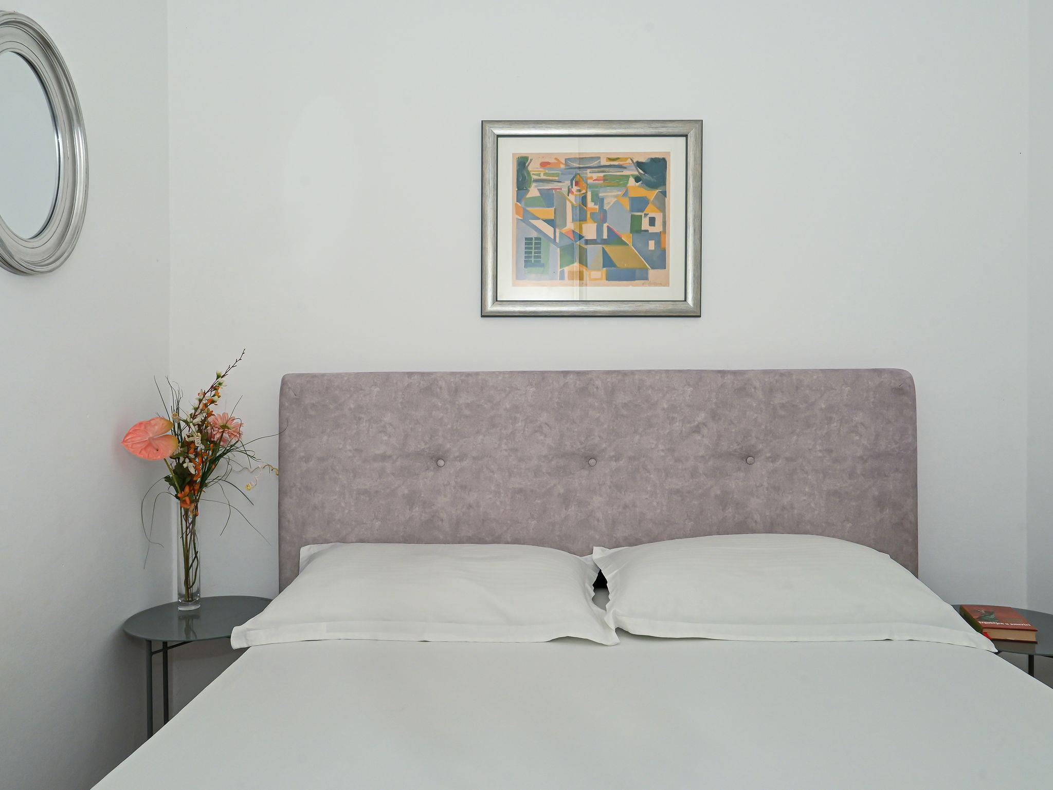 Ferienwohnung bietet Platz für 5 Gäste. Die Betten sind in Schlafzimmern, die es 2 gibt, und in Wohnzimmer, innerhalb einer Gesamtfläche von 40m2, angeordnet. Die Gäste haben eine eigene Terrasse zur Verfügung, auf der sie in warmen Sommernächten genießen können. Es ist erlaubt, Speisen auf dem Gemeinschafts-Grill vorzubereiten. In der Unterkunftseinheit besteht die Möglichkeit des Mitbringens von Haustieren gegen Aufpreis. IM PREIS INBEGRIFFEN: Kurtaxe, Endreinigung, Klimatisierung, Parkplatz, Internet, Föhn. UNVERBINDLICHE ZUSÄTZLICHE KOSTEN: Haustiere (10,00 € pro Nacht). Die Verfügbarkeit zusätzlicher Dienstleistungen in Ihrem reservierten Termin und die Preise derselben (falls nicht aufgeführt) müssen im Voraus überprüft werden. Zusätzliche Dienstleistungen die in der Zahlungsaufforderung nicht aufgeführt sind werden direkt beim Vermieter bezahlt, angenommen der Gast nutzt auch diese.