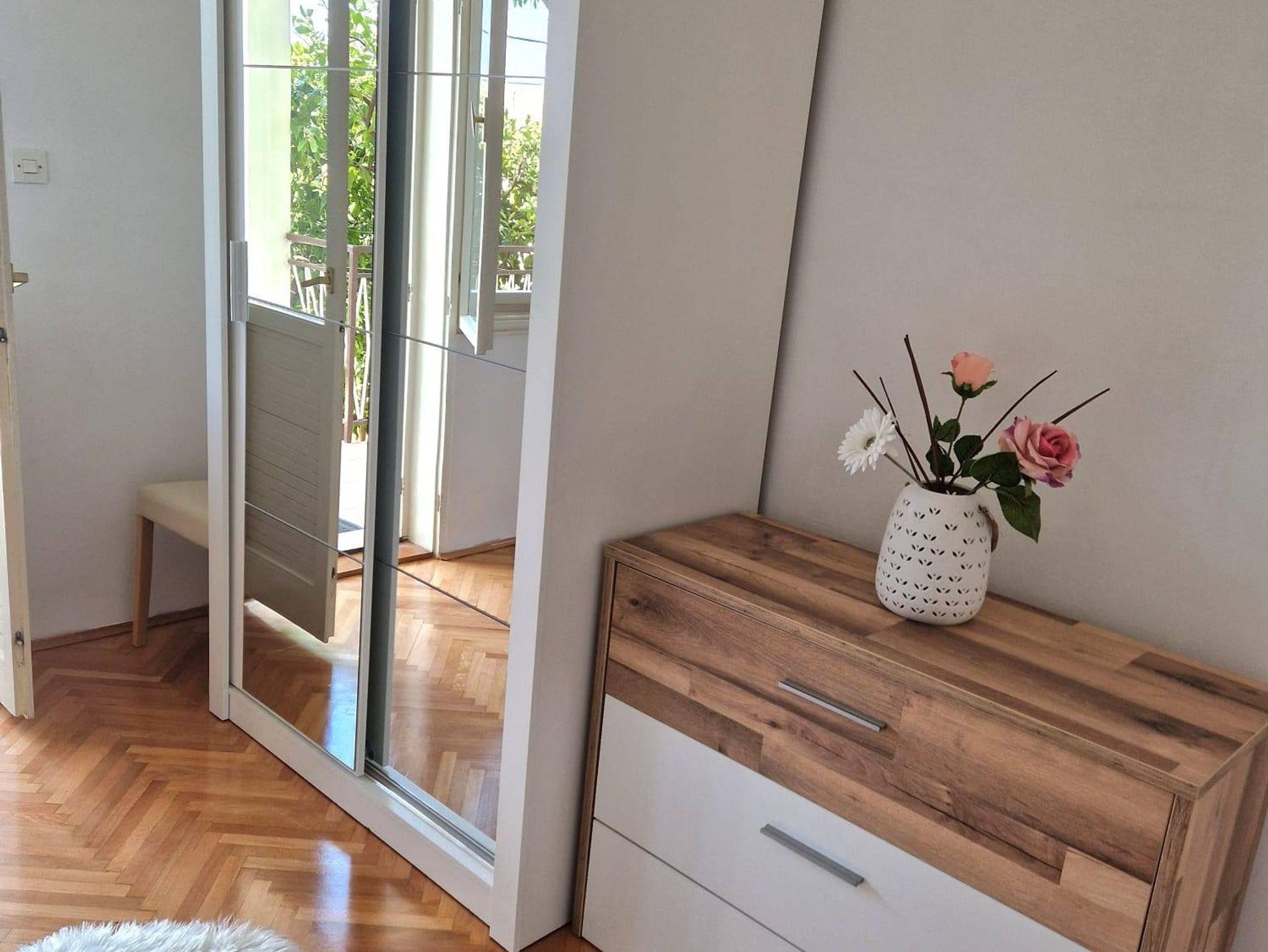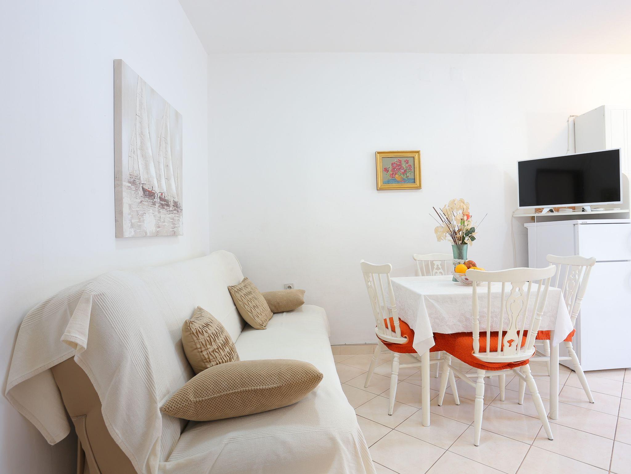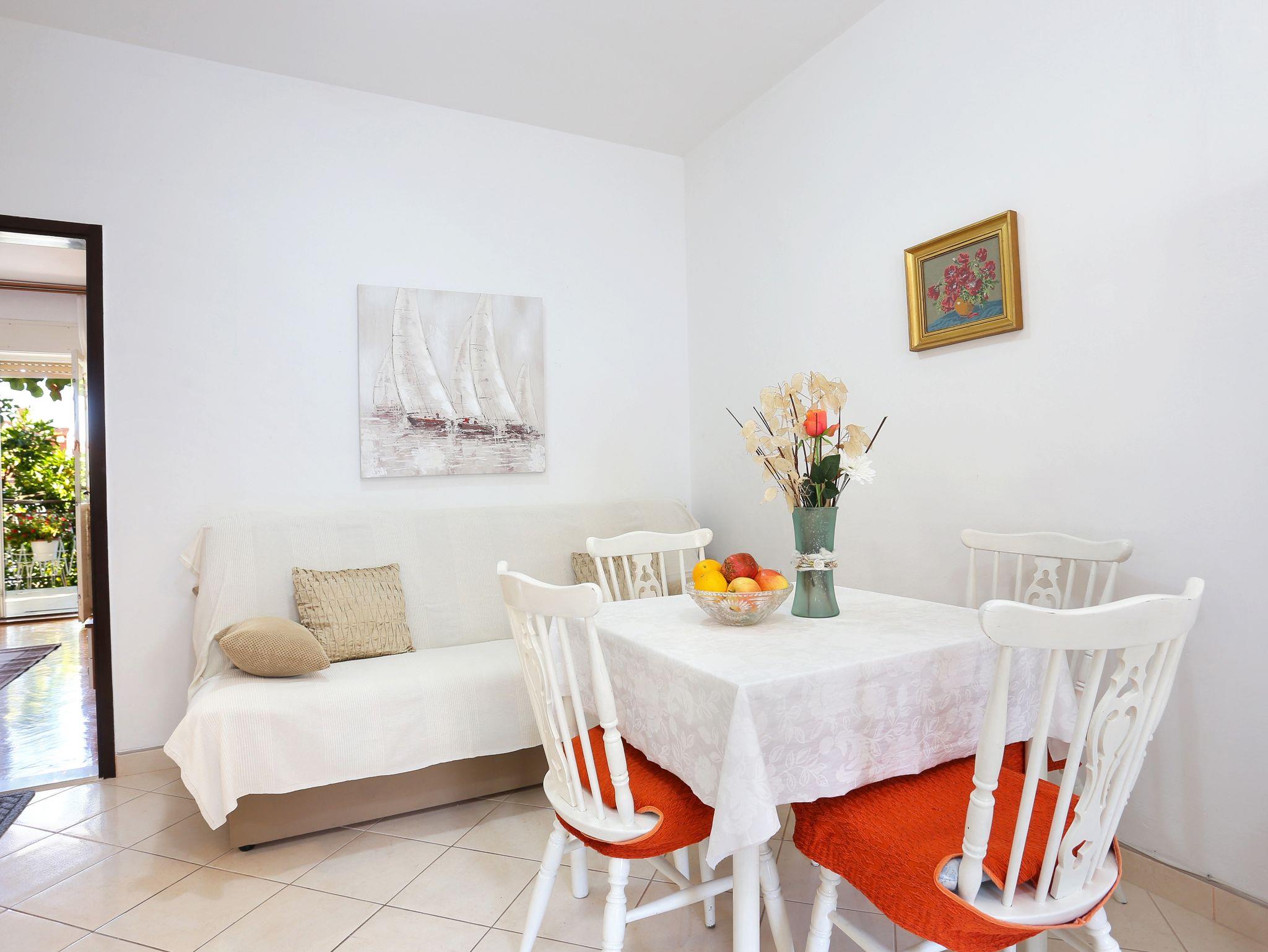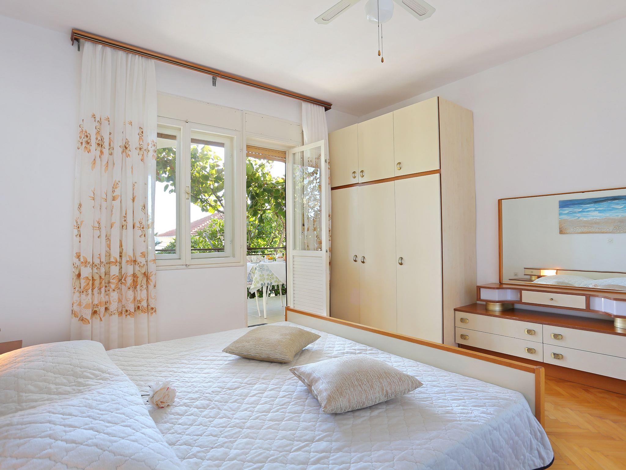 Ferienwohnung bietet Platz für 4 Gäste. Die Betten sind in Schlafzimmern, die es 2 gibt, innerhalb einer Gesamtfläche von 49m2, angeordnet. Die Gäste haben eine eigene Terrasse zur Verfügung, auf der sie in warmen Sommernächten genießen können. Das Apartment bietet Meerblick. Es ist erlaubt, Speisen auf dem Gemeinschafts-Grill vorzubereiten. IM PREIS INBEGRIFFEN: Kurtaxe, Endreinigung, Klimatisierung, Parkplatz, Internet, Bügeleisen, Föhn. VERBINDLICHE ZUSÄTZLICHE KOSTEN: Aufzahlung für Kurzaufenthalte (prozentualer Zuschlag pro Nächtigungsanzahl: 30% - 1, 20% - 2, 10% - 3). Die Verfügbarkeit zusätzlicher Dienstleistungen in Ihrem reservierten Termin und die Preise derselben (falls nicht aufgeführt) müssen im Voraus überprüft werden. Zusätzliche Dienstleistungen die in der Zahlungsaufforderung nicht aufgeführt sind werden direkt beim Vermieter bezahlt, angenommen der Gast nutzt auch diese. Ermäßigung auf den Grundpreis: Gratistag 21=19 (bei einem Aufenthalt von 21 Tagen oder mehr erhalten Sie 2 Gratistage für den Aufenthalt bis 31.12.26).