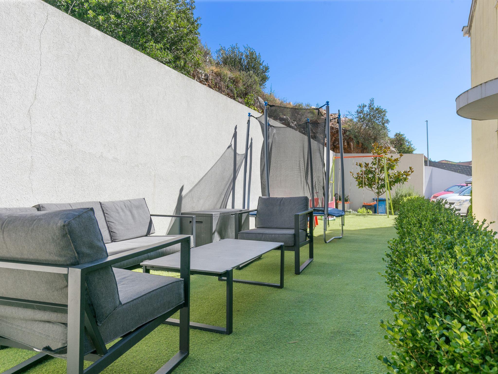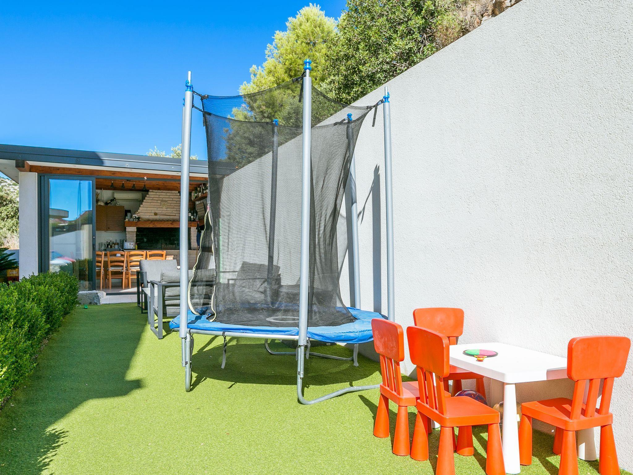 Umgebung des Objekts (Ordentlich), Hof (100m2, Wird mit einem anderen Objekt mitbenutzt, Kinderbereich, Sitzbereich), Parkplatz (Anzahl der Parkplätze: 3, Entfernung vom Objekt: im Hof), Pool: gemeinsam, Dimensionen: 8m x 4m x 1.6m, Wassertyp: Salzwasser, Grill: gemeinsam, WiFi Internet, Föhn, Bügeleisen, Bügelbrett, Sonnenschirm, Liegestühle, Kinderbett