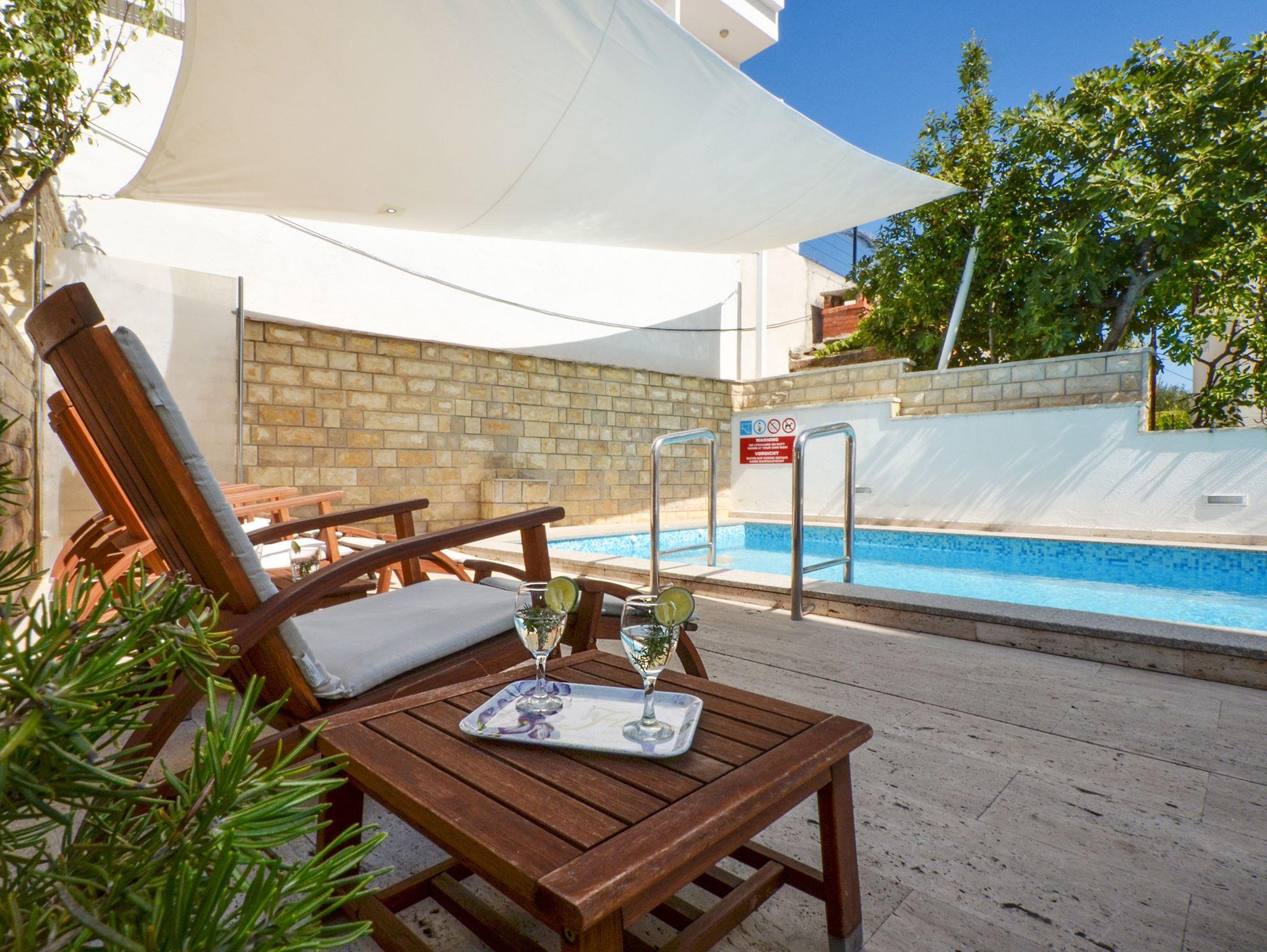 Ferienwohnungen am Meer mit Pool Seget Vranjica, Trogir - 4284, 1-Zimmer-Ferienwohnung mit Terrasse und Meerblick Seget Vranjica, Trogir A-4284-b
