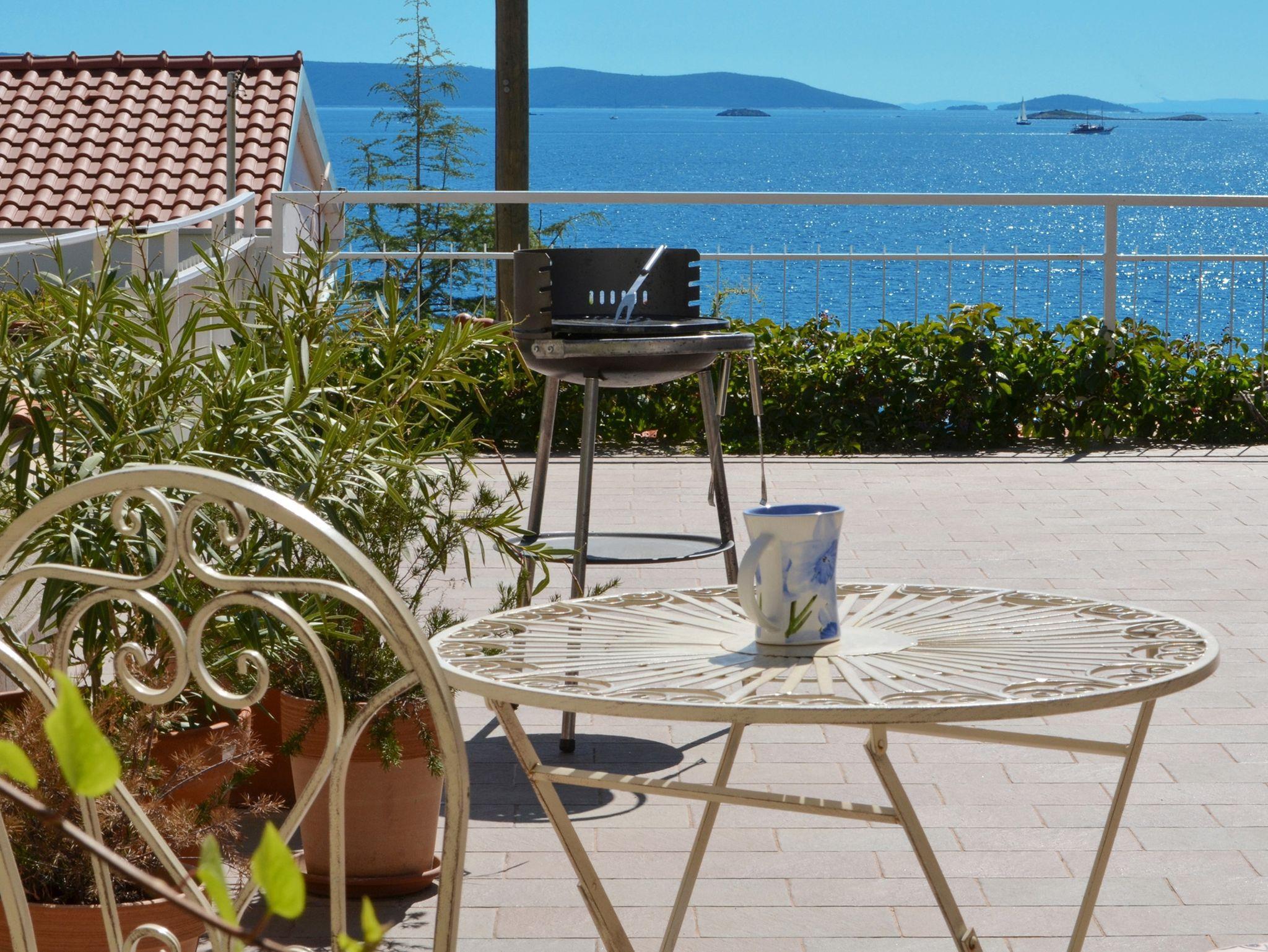 Ferienwohnung bietet Platz für 4 Gäste. Die Betten sind in Schlafzimmern, die es 1 gibt, und in Wohnzimmer, innerhalb einer Gesamtfläche von 35m2, angeordnet. Die Gäste haben eine eigene Terrasse zur Verfügung, auf der sie in warmen Sommernächten genießen können. Das Apartment bietet Meerblick. Es ist erlaubt, Speisen auf dem Gemeinschafts-Grill vorzubereiten. Während ihres Aufenthalts können Gäste das gemeinsam zur Nutzung stehende Schwimmbad benutzen. In der Unterkunftseinheit besteht die Möglichkeit des Mitbringens von Haustieren gegen Aufpreis. IM PREIS INBEGRIFFEN: Kurtaxe, Endreinigung, Pool, Garage, Internet, Bootsanlegeplatz, Kinderbett, Bügeleisen, Bügelbrett, Föhn, tragbarer Grill. UNVERBINDLICHE ZUSÄTZLICHE KOSTEN: Klimatisierung (10,00 € pro Nacht), Haustiere (10,00 € pro Nacht). Die Verfügbarkeit zusätzlicher Dienstleistungen in Ihrem reservierten Termin und die Preise derselben (falls nicht aufgeführt) müssen im Voraus überprüft werden. Zusätzliche Dienstleistungen die in der Zahlungsaufforderung nicht aufgeführt sind werden direkt beim Vermieter bezahlt, angenommen der Gast nutzt auch diese.