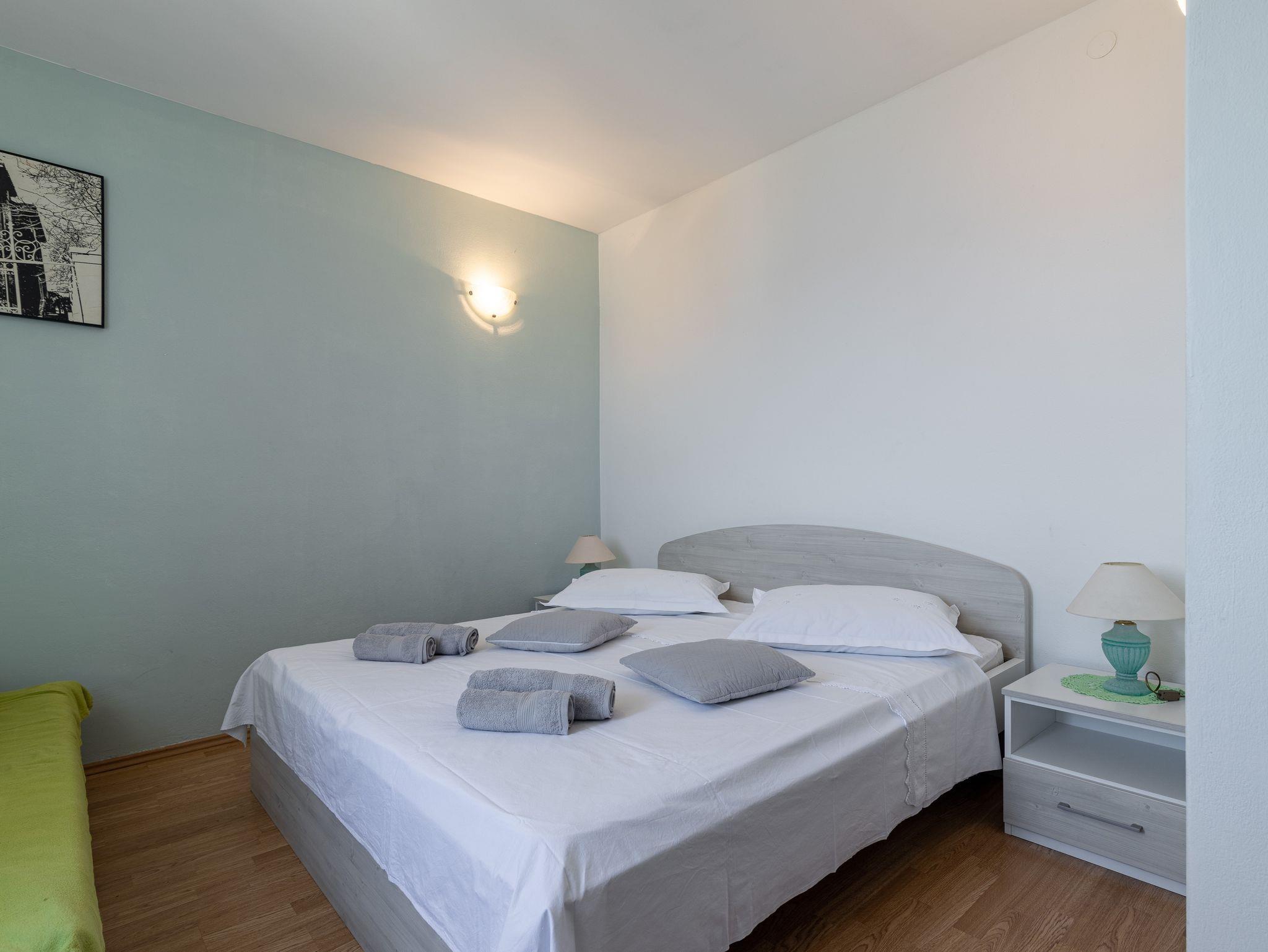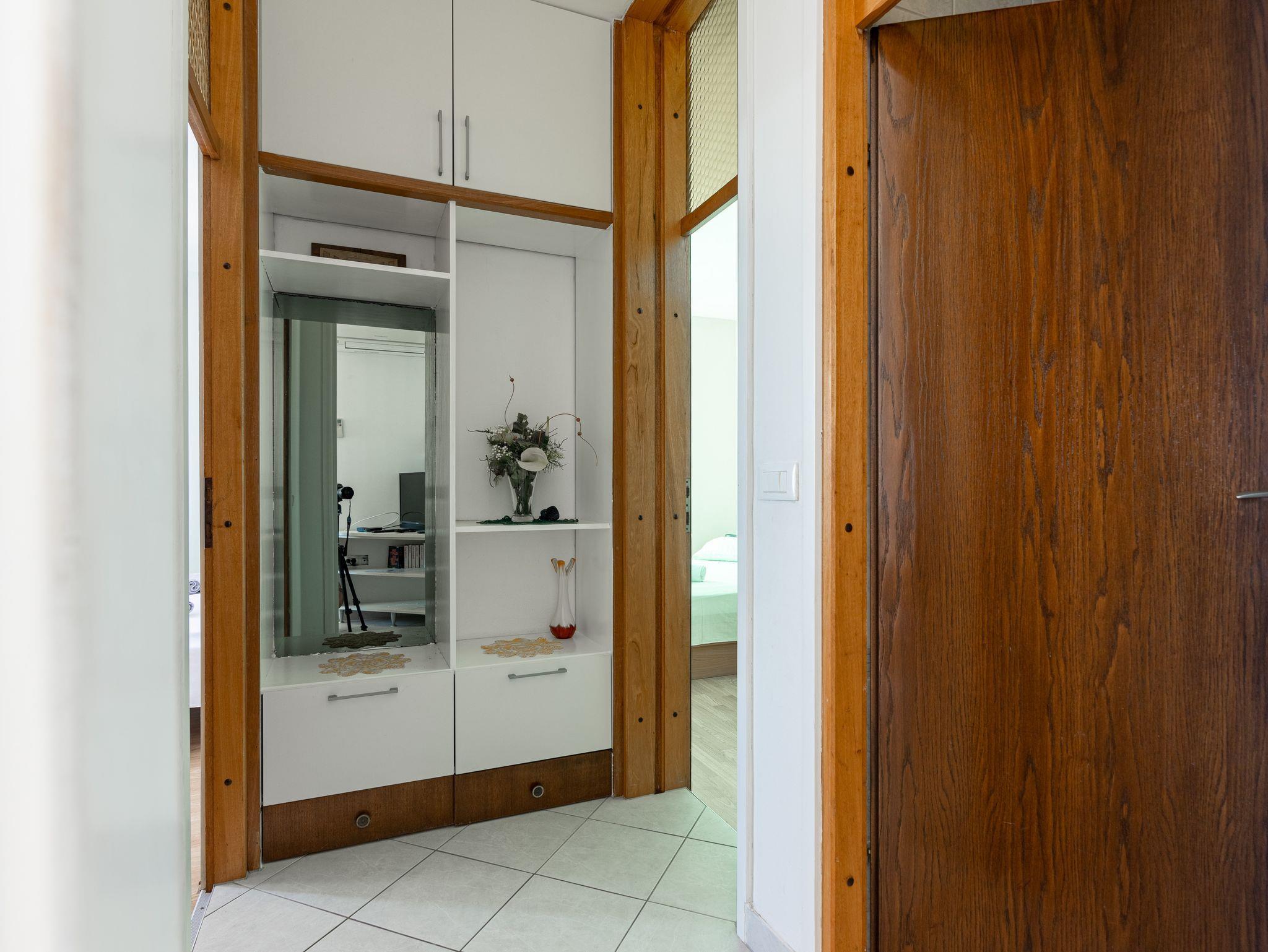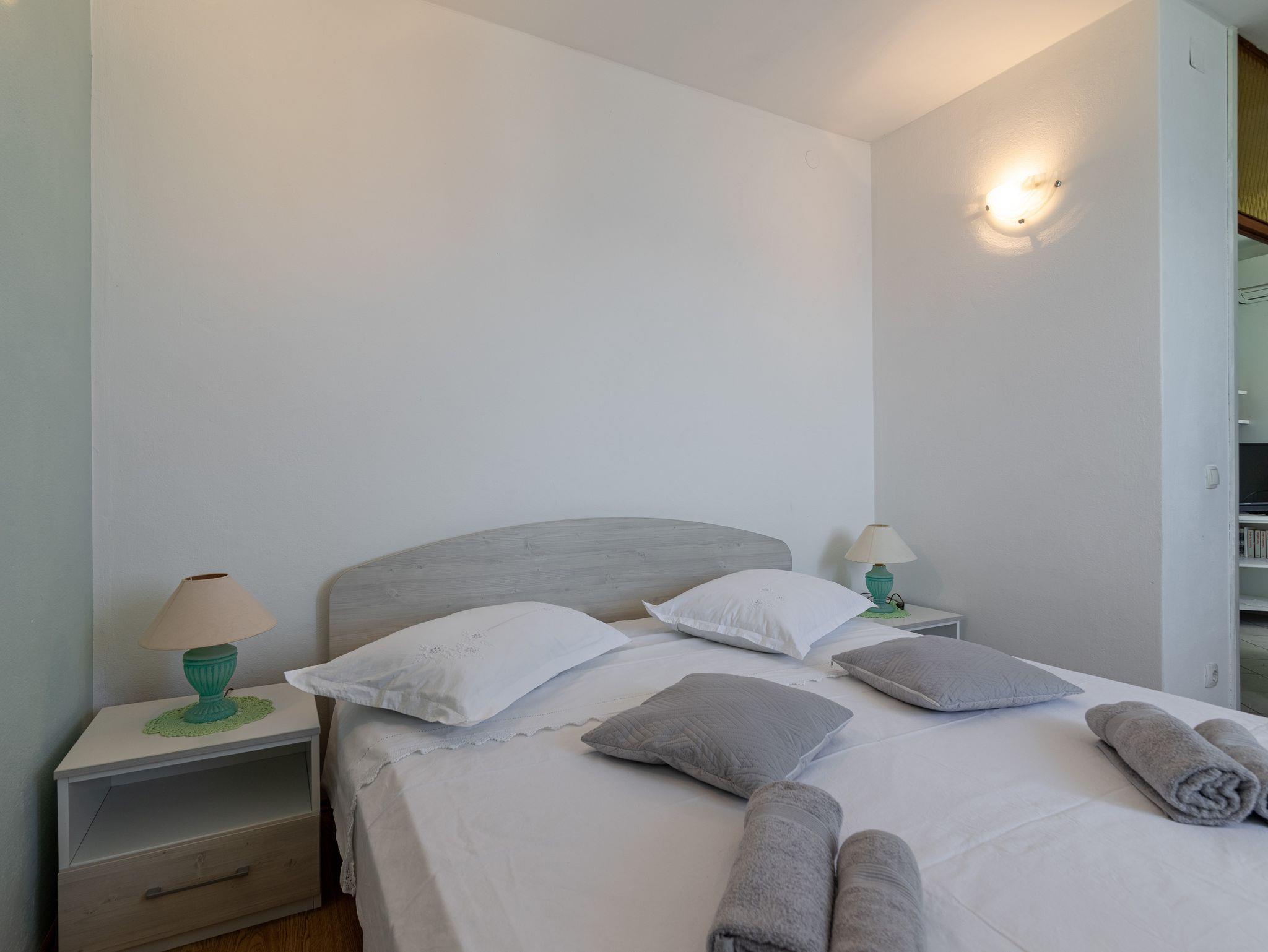 Ferienwohnung bietet Platz für 5 Gäste. Die Betten sind in Schlafzimmern, die es 2 gibt, innerhalb einer Gesamtfläche von 53m2, angeordnet. Die Gäste haben eine eigene Terrasse zur Verfügung, auf der sie in warmen Sommernächten genießen können. Das Apartment bietet Meerblick. Es ist erlaubt, Speisen auf dem Gemeinschafts-Grill vorzubereiten. IM PREIS INBEGRIFFEN: Kurtaxe, Endreinigung, Klimatisierung, Zentralheizung, Parkplatz, Garage, Internet, Bootsanlegeplatz, Bügeleisen, Bügelbrett, Föhn, Sonnenschirm, Liegestühle. UNVERBINDLICHE ZUSÄTZLICHE KOSTEN: Wäschewaschen (3,00 € Waschen). Die Verfügbarkeit zusätzlicher Dienstleistungen in Ihrem reservierten Termin und die Preise derselben (falls nicht aufgeführt) müssen im Voraus überprüft werden. Zusätzliche Dienstleistungen die in der Zahlungsaufforderung nicht aufgeführt sind werden direkt beim Vermieter bezahlt, angenommen der Gast nutzt auch diese.