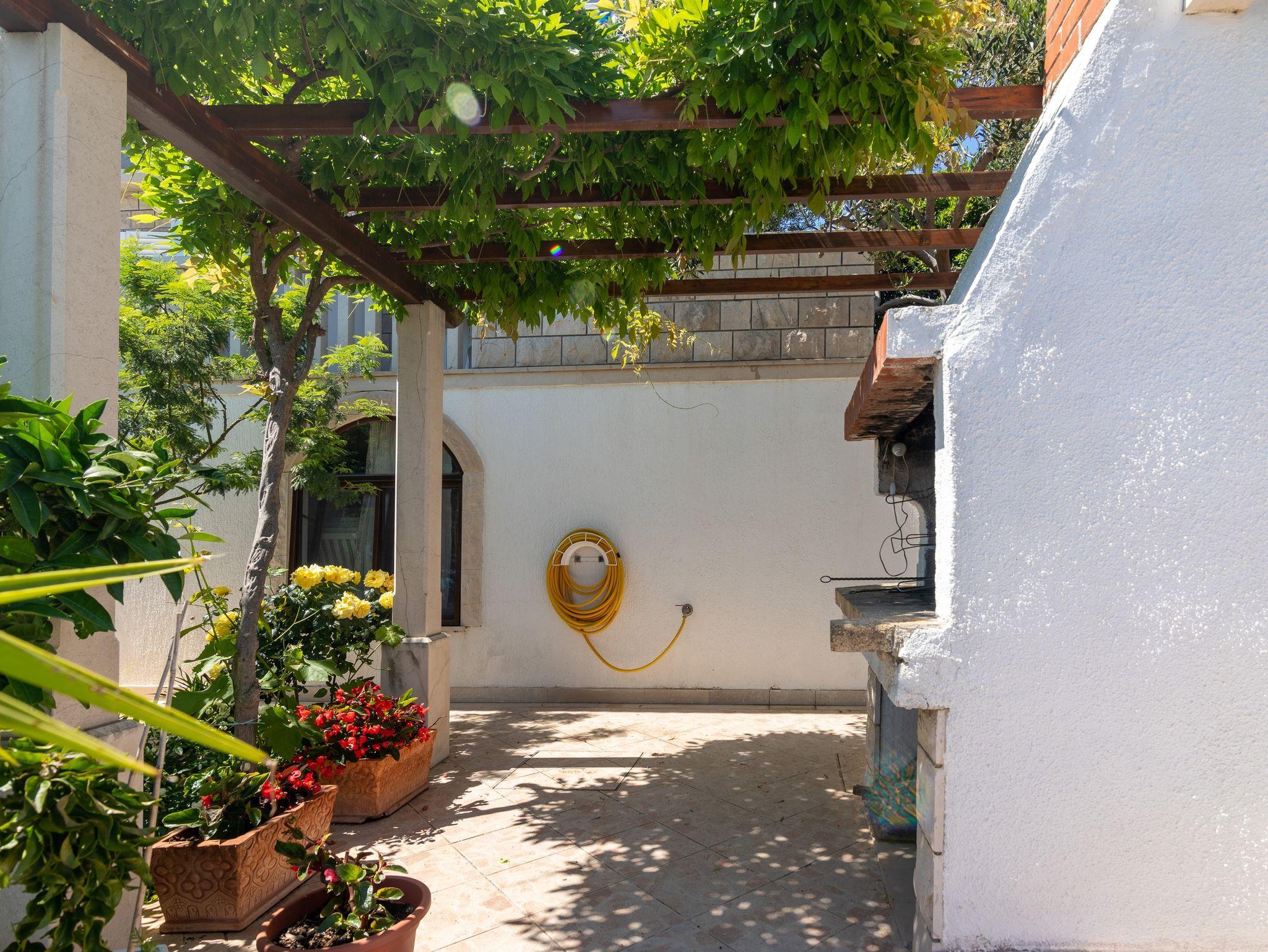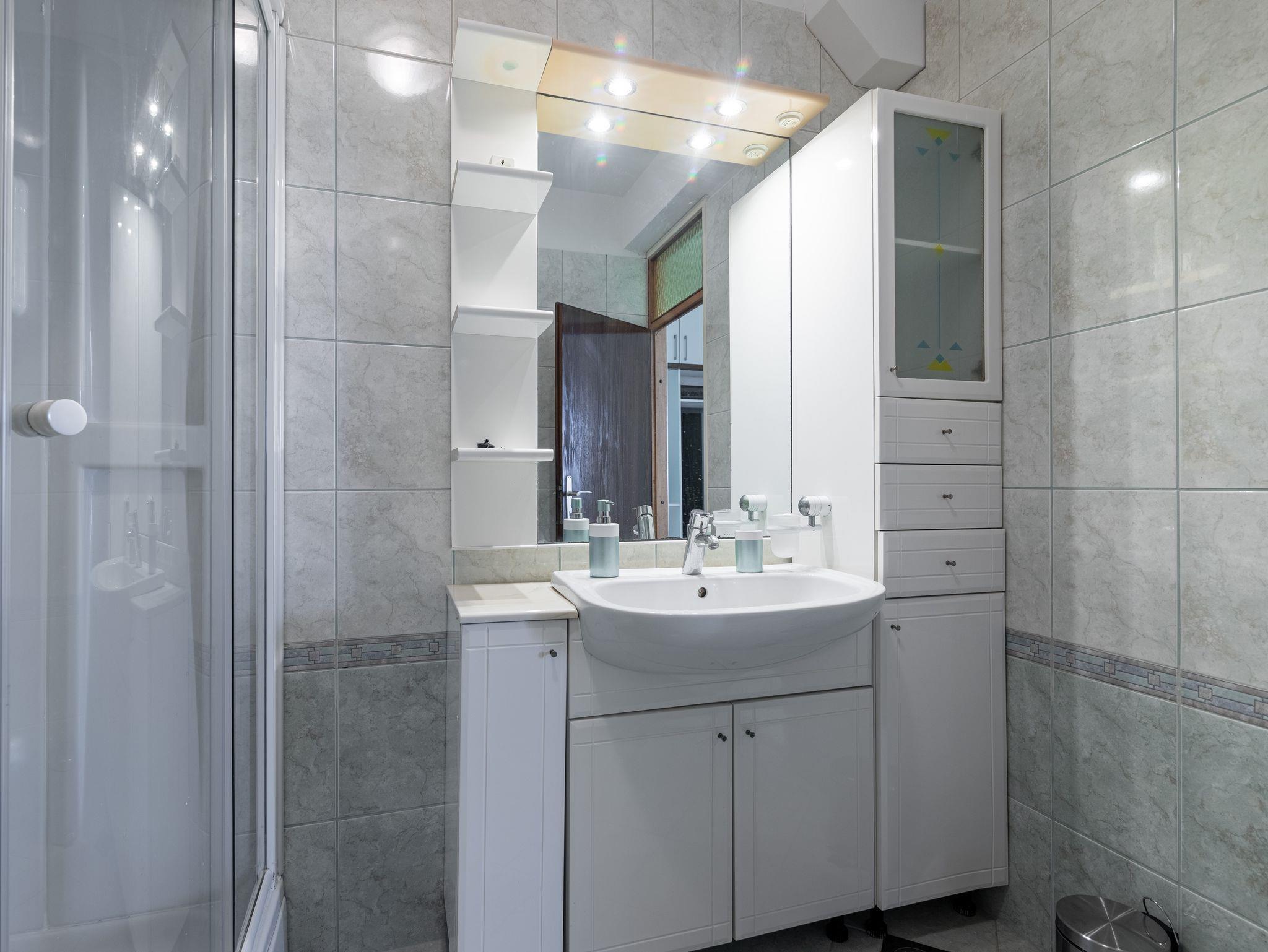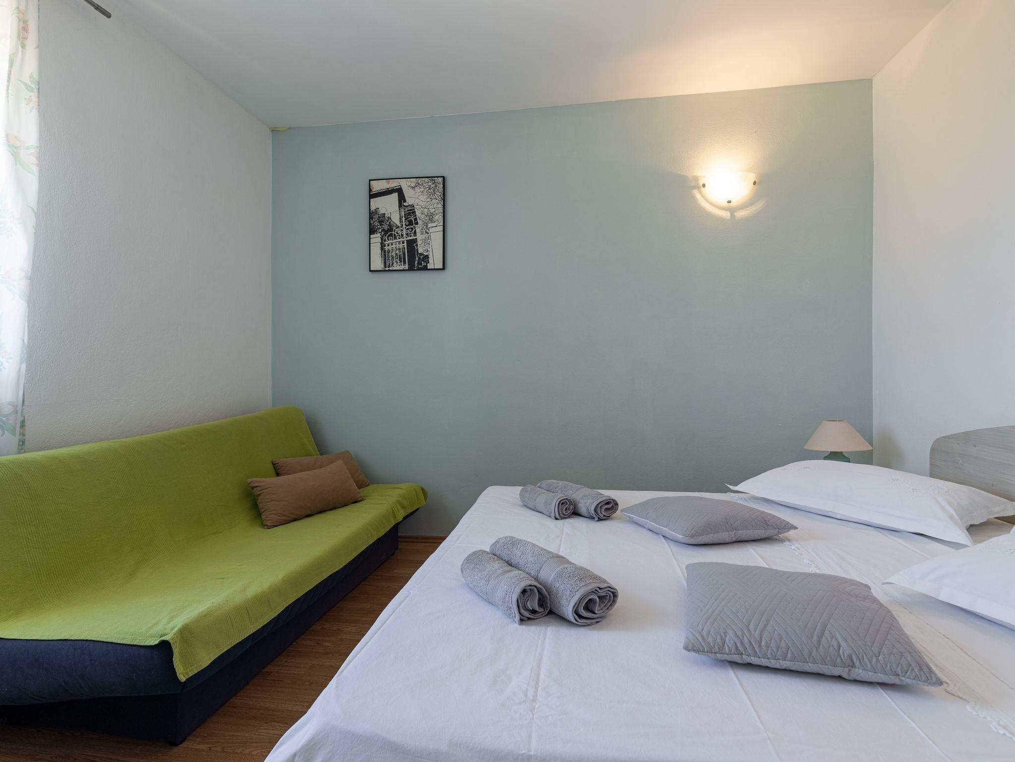 Ferienwohnung bietet Platz für 5 Gäste. Die Betten sind in Schlafzimmern, die es 2 gibt, innerhalb einer Gesamtfläche von 53m2, angeordnet. Die Gäste haben eine eigene Terrasse zur Verfügung, auf der sie in warmen Sommernächten genießen können. Das Apartment bietet Meerblick. Es ist erlaubt, Speisen auf dem Gemeinschafts-Grill vorzubereiten. IM PREIS INBEGRIFFEN: Kurtaxe, Endreinigung, Klimatisierung, Zentralheizung, Parkplatz, Garage, Internet, Bootsanlegeplatz, Bügeleisen, Bügelbrett, Föhn, Sonnenschirm, Liegestühle. UNVERBINDLICHE ZUSÄTZLICHE KOSTEN: Wäschewaschen (3,00 € Waschen). Die Verfügbarkeit zusätzlicher Dienstleistungen in Ihrem reservierten Termin und die Preise derselben (falls nicht aufgeführt) müssen im Voraus überprüft werden. Zusätzliche Dienstleistungen die in der Zahlungsaufforderung nicht aufgeführt sind werden direkt beim Vermieter bezahlt, angenommen der Gast nutzt auch diese.