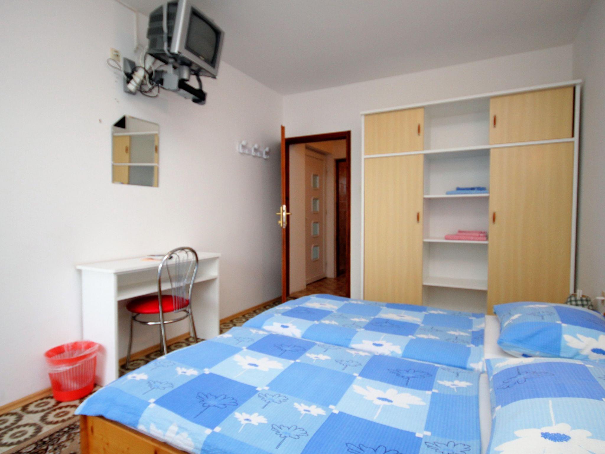 Zimmer bietet Platz für 3 Gäste. Die Betten sind in Schlafzimmern, die es 1 gibt, innerhalb einer Gesamtfläche von 18m2, angeordnet. Die Nutzung einer gemeinsamen Küche ist möglich. Die Gäste haben eine eigene Terrasse zur Verfügung, auf der sie in warmen Sommernächten genießen können. Es ist erlaubt, Speisen auf dem Gemeinschafts-Grill vorzubereiten. Die reservierte Unterkunftseinheit ist ein Zimmer mit eigenem Badezimmer mit der Möglichkeit der Nutzung einer Küche ohne Zuzahlung. Unterkunftseinheit hat Räume, die von dem Rest der Einheit abgetrennt werden. IM PREIS INBEGRIFFEN: Kurtaxe, Endreinigung, Zentralheizung, gemeinsame Küche, Parkplatz, Internet, tragbarer Grill. VERBINDLICHE ZUSÄTZLICHE KOSTEN: Aufzahlung für Kurzaufenthalte (prozentualer Zuschlag pro Nächtigungsanzahl: 30% - 1, 20% - 2, 10% - 3). UNVERBINDLICHE ZUSÄTZLICHE KOSTEN: Klimatisierung (5,00 € pro Nacht), Wäschewaschen (5,00 € Waschen). Die Verfügbarkeit zusätzlicher Dienstleistungen in Ihrem reservierten Termin und die Preise derselben (falls nicht aufgeführt) müssen im Voraus überprüft werden. Zusätzliche Dienstleistungen die in der Zahlungsaufforderung nicht aufgeführt sind werden direkt beim Vermieter bezahlt, angenommen der Gast nutzt auch diese.