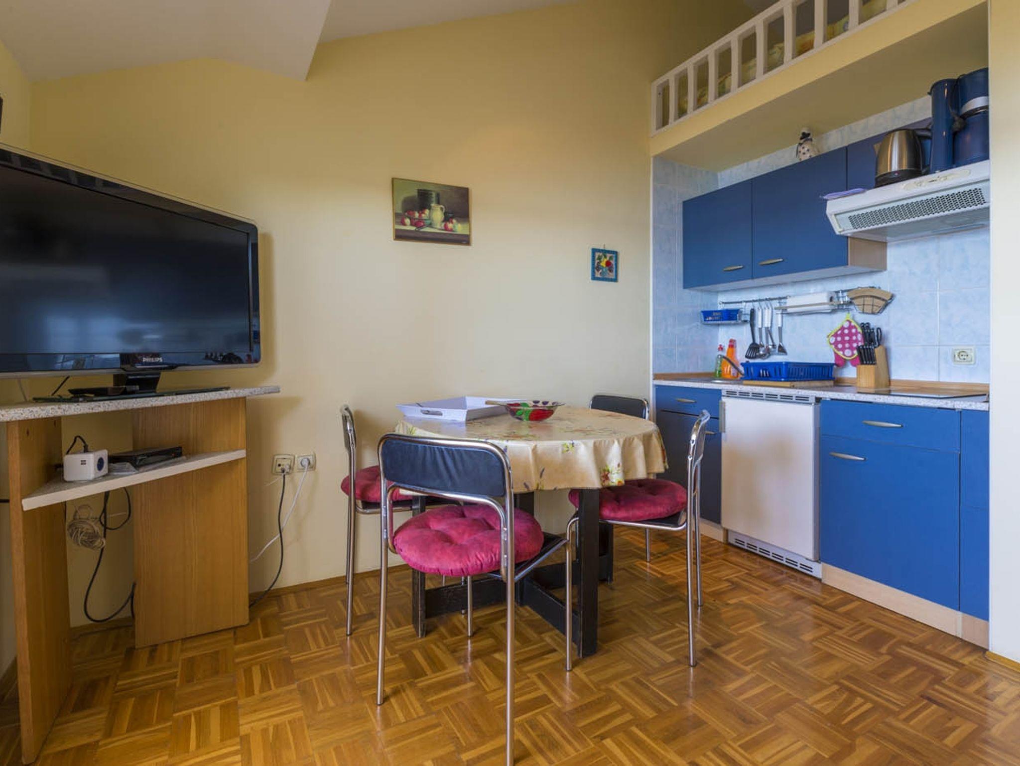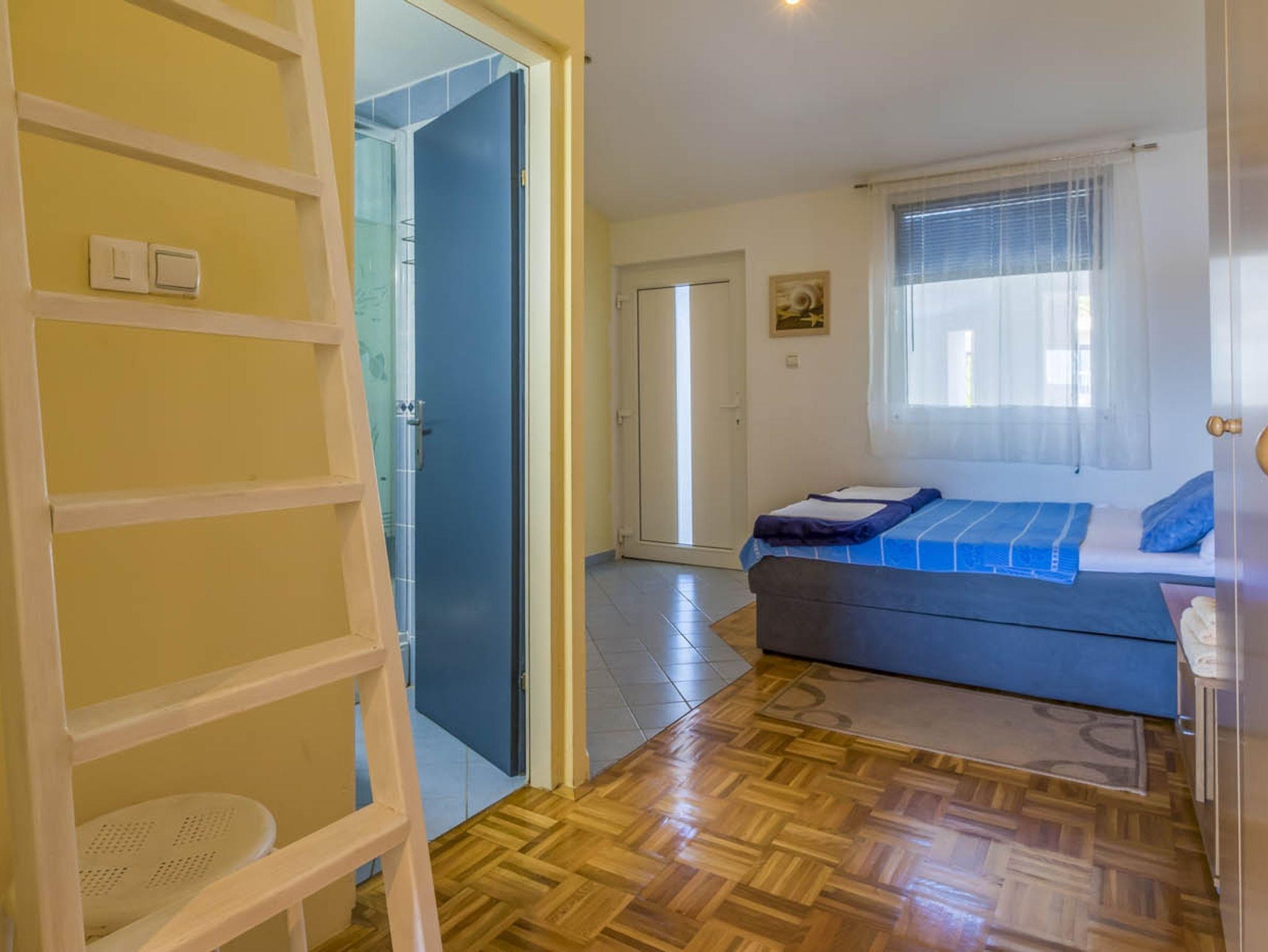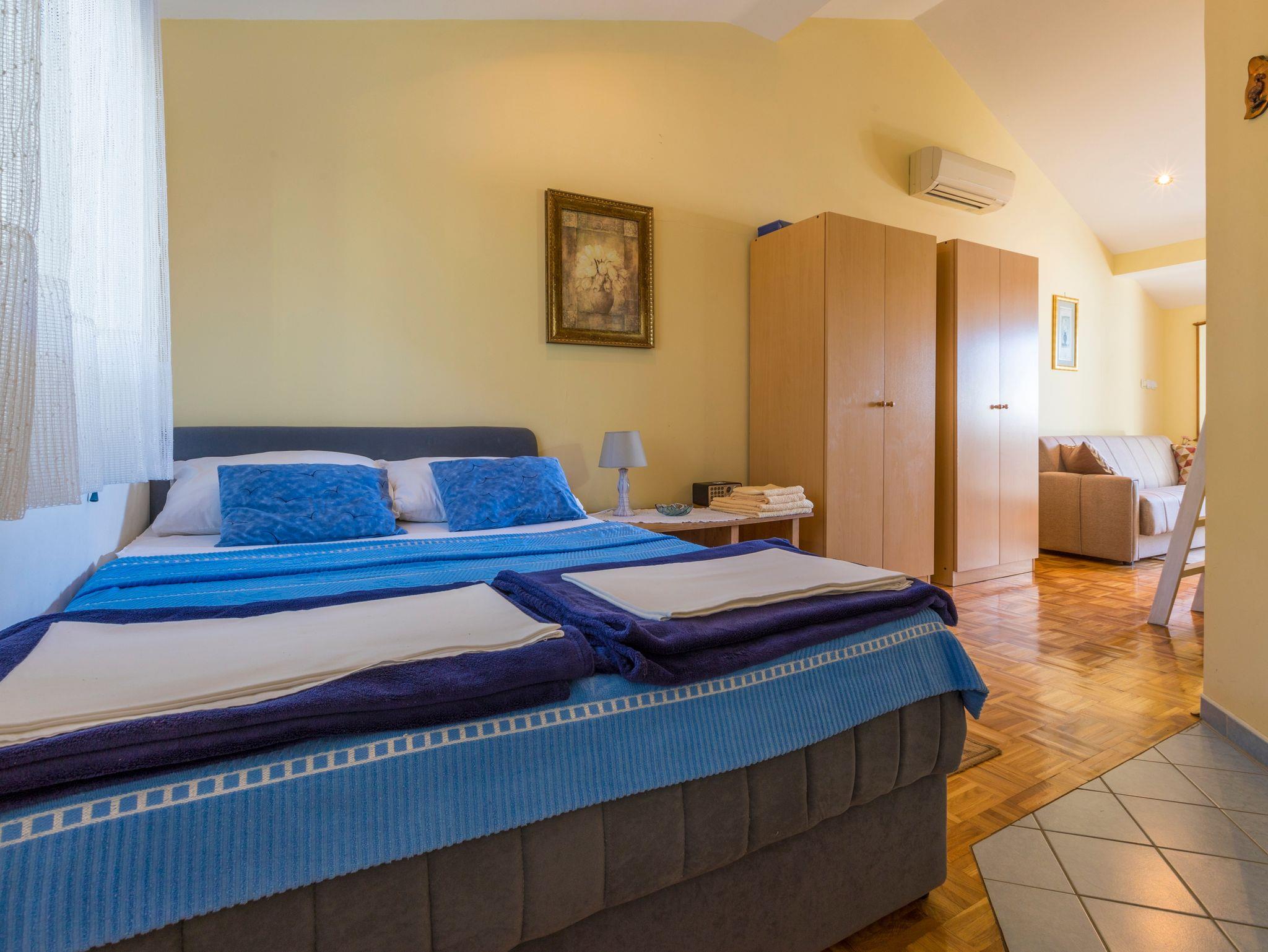Studio bietet Platz für 3 Gäste. Die Betten sind in Schlafzimmern, die es 1 gibt, innerhalb einer Gesamtfläche von 30m2, angeordnet. Die Gäste haben eine eigene Terrasse zur Verfügung, auf der sie in warmen Sommernächten genießen können. Das Studio-Apartment bietet Meerblick. Es ist erlaubt, Speisen auf dem Gemeinschafts-Grill vorzubereiten. IM PREIS INBEGRIFFEN: Kurtaxe, Endreinigung, Klimatisierung, Parkplatz, Internet, Fahrrad, Kinderbett, Bügeleisen, Bügelbrett, Föhn. VERBINDLICHE ZUSÄTZLICHE KOSTEN: Aufzahlung für Kurzaufenthalte (prozentualer Zuschlag pro Nächtigungsanzahl: 30% - 1, 20% - 2, 10% - 3). Die Verfügbarkeit zusätzlicher Dienstleistungen in Ihrem reservierten Termin und die Preise derselben (falls nicht aufgeführt) müssen im Voraus überprüft werden. Zusätzliche Dienstleistungen die in der Zahlungsaufforderung nicht aufgeführt sind werden direkt beim Vermieter bezahlt, angenommen der Gast nutzt auch diese. Ermäßigung auf den Grundpreis: Gratistag 28=25 (bei einem Aufenthalt von 28 oder mehr Tagen erhalten Sie 3 kostenlose Tage für den Aufenthalt bis 31.12.26).