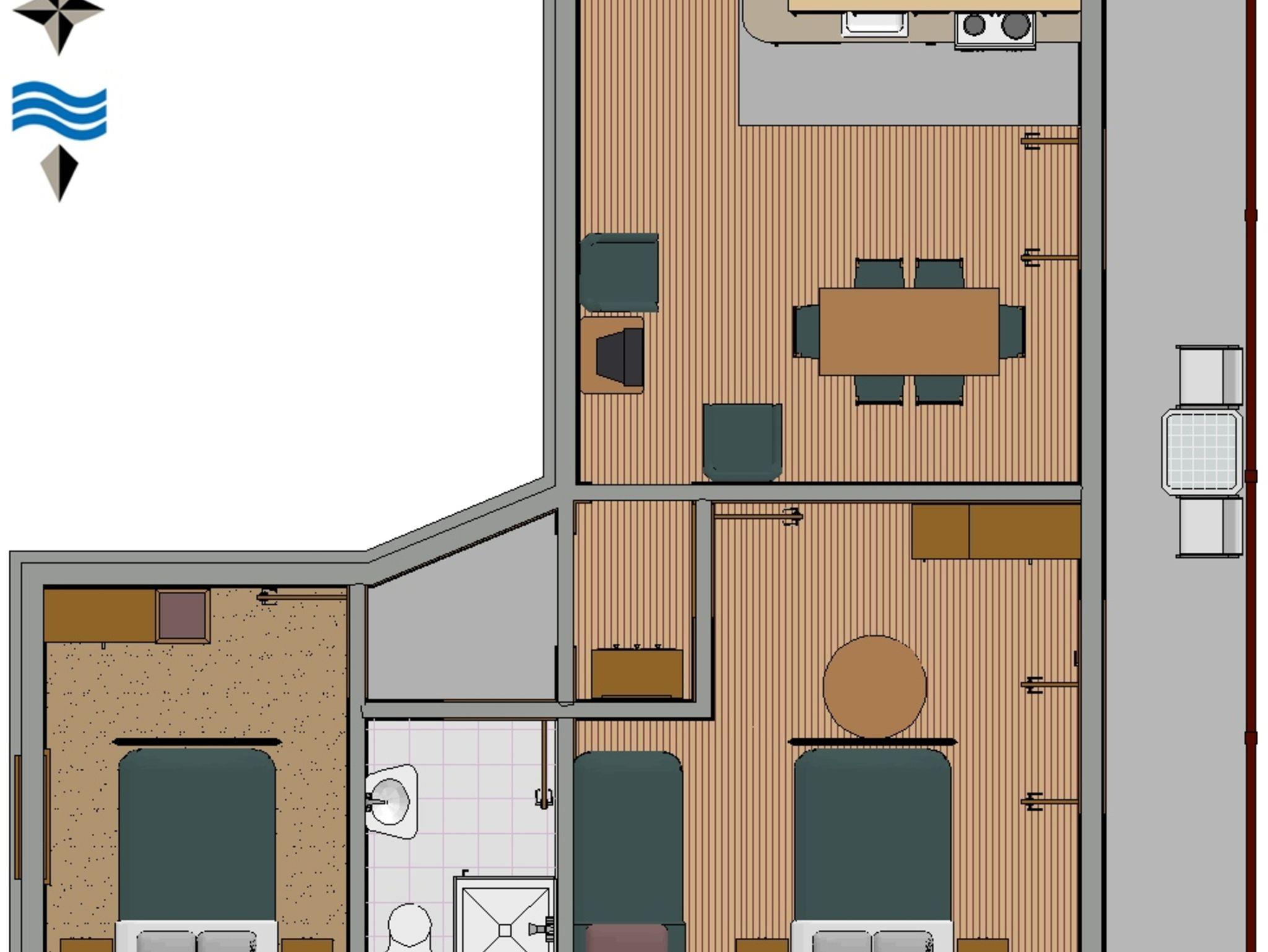 Ferienwohnung bietet Platz für 5 Gäste. Die Betten sind in Schlafzimmern, die es 2 gibt, innerhalb einer Gesamtfläche von 49m2, angeordnet. Die Gäste haben eine eigene Terrasse zur Verfügung, auf der sie in warmen Sommernächten genießen können. Das Apartment bietet Meerblick. Es ist erlaubt, Speisen auf dem Gemeinschafts-Grill vorzubereiten. IM PREIS INBEGRIFFEN: Kurtaxe, Endreinigung, Klimatisierung, Parkplatz, Internet, Kinderbett, Bügeleisen, Föhn. UNVERBINDLICHE ZUSÄTZLICHE KOSTEN: Wäschewaschen (10,00 € Waschen). Die Verfügbarkeit zusätzlicher Dienstleistungen in Ihrem reservierten Termin und die Preise derselben (falls nicht aufgeführt) müssen im Voraus überprüft werden. Zusätzliche Dienstleistungen die in der Zahlungsaufforderung nicht aufgeführt sind werden direkt beim Vermieter bezahlt, angenommen der Gast nutzt auch diese. Ermäßigung auf den Grundpreis: Gratistag 14=13 (bei einem Aufenthalt von 14 Tagen oder mehr erhalten Sie einen Gratistag für den Aufenthalt bis 31.12.26).