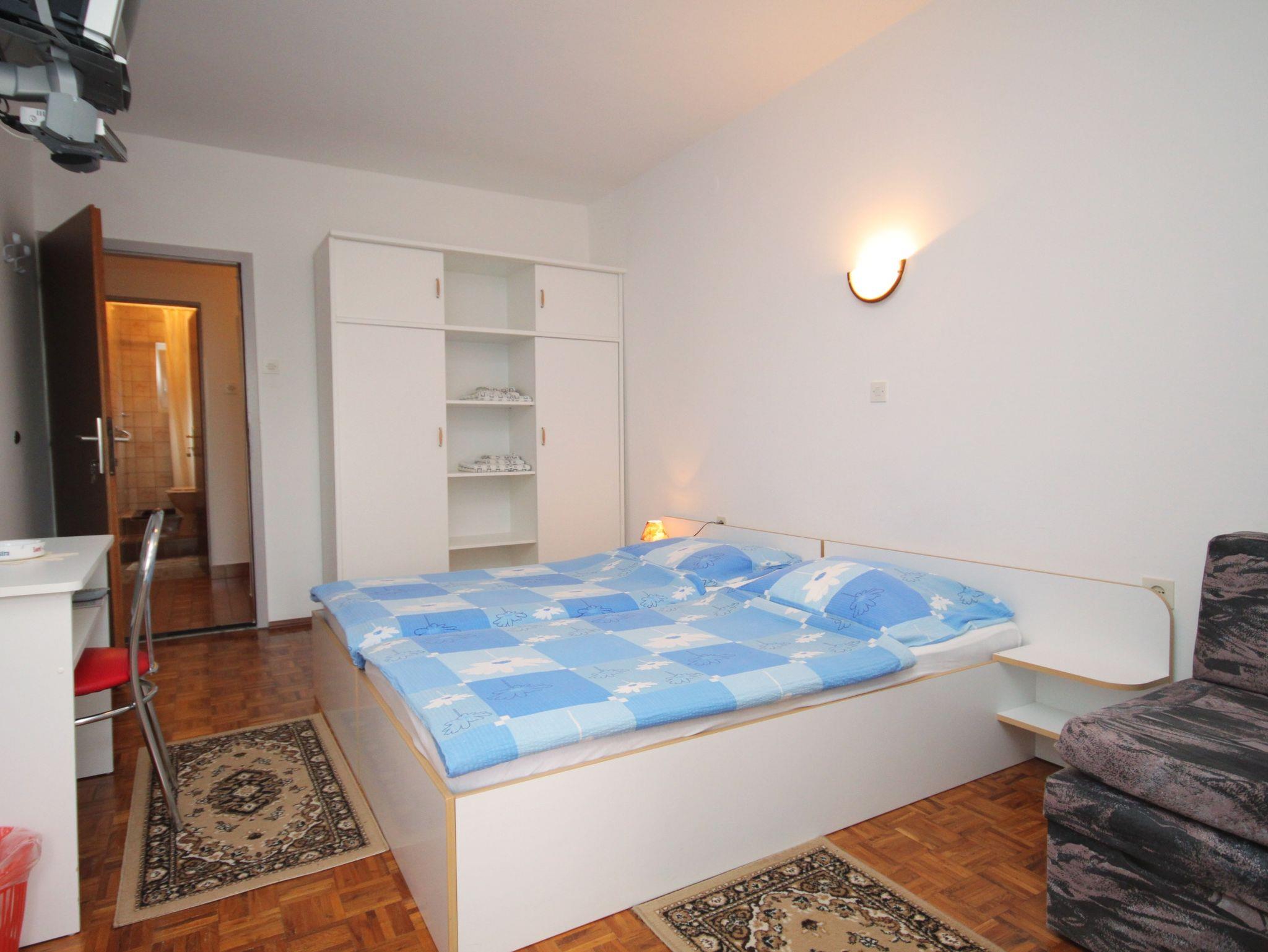 Zimmer bietet Platz für 3 Gäste. Die Betten sind in Schlafzimmern, die es 1 gibt, innerhalb einer Gesamtfläche von 17m2, angeordnet. Die Nutzung einer gemeinsamen Küche ist möglich. Die Gäste haben eine eigene Terrasse zur Verfügung, auf der sie in warmen Sommernächten genießen können. Es ist erlaubt, Speisen auf dem Gemeinschafts-Grill vorzubereiten. Die reservierte Unterkunftseinheit ist ein Zimmer mit eigenem Badezimmer mit der Möglichkeit der Nutzung einer Küche ohne Zuzahlung. Unterkunftseinheit hat Räume, die von dem Rest der Einheit abgetrennt werden. IM PREIS INBEGRIFFEN: Kurtaxe, Endreinigung, Zentralheizung, gemeinsame Küche, Parkplatz, Internet, tragbarer Grill. VERBINDLICHE ZUSÄTZLICHE KOSTEN: Aufzahlung für Kurzaufenthalte (prozentualer Zuschlag pro Nächtigungsanzahl: 30% - 1, 20% - 2, 10% - 3). UNVERBINDLICHE ZUSÄTZLICHE KOSTEN: Klimatisierung (5,00 € pro Nacht), Wäschewaschen (5,00 € Waschen). Die Verfügbarkeit zusätzlicher Dienstleistungen in Ihrem reservierten Termin und die Preise derselben (falls nicht aufgeführt) müssen im Voraus überprüft werden. Zusätzliche Dienstleistungen die in der Zahlungsaufforderung nicht aufgeführt sind werden direkt beim Vermieter bezahlt, angenommen der Gast nutzt auch diese.