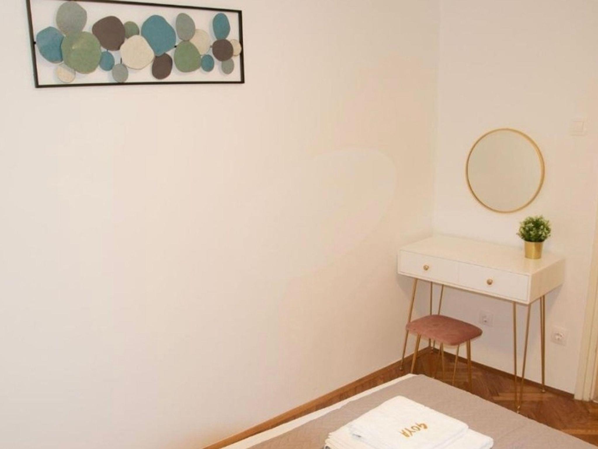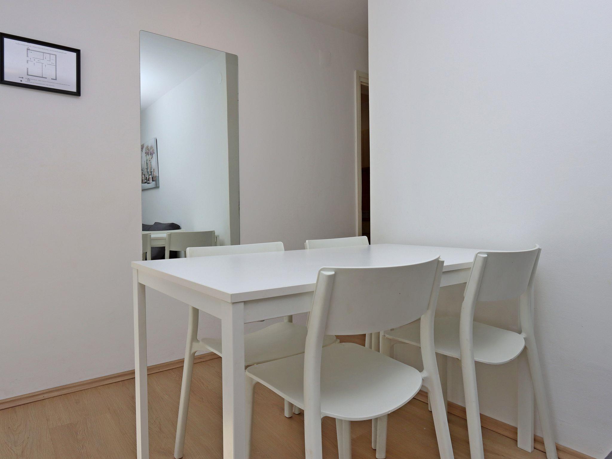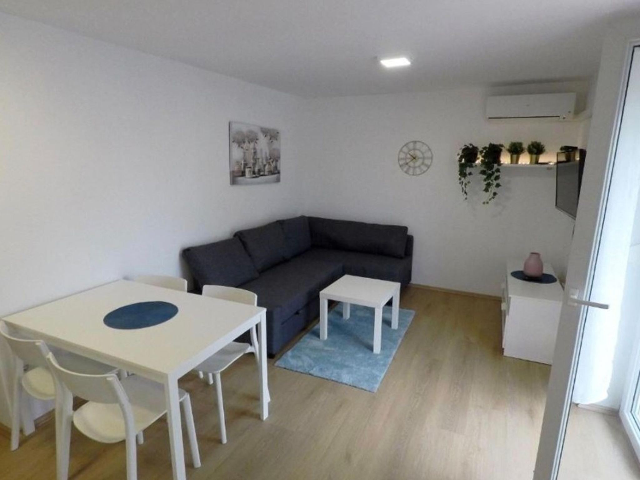 Ferienwohnung bietet Platz für 4 Gäste. Die Betten sind in Schlafzimmern, die es 1 gibt, und in Wohnzimmer, innerhalb einer Gesamtfläche von 33m2, angeordnet. Die Gäste haben einen eigenen Balkon zur Verfügung, auf der sie in warmen Sommernächten genießen können. Das Apartment bietet Meerblick. IM PREIS INBEGRIFFEN: Kurtaxe, Endreinigung, Klimatisierung, Internet, Kinderbett, Bügeleisen, Bügelbrett, Föhn. Die Verfügbarkeit zusätzlicher Dienstleistungen in Ihrem reservierten Termin und die Preise derselben (falls nicht aufgeführt) müssen im Voraus überprüft werden. Zusätzliche Dienstleistungen die in der Zahlungsaufforderung nicht aufgeführt sind werden direkt beim Vermieter bezahlt, angenommen der Gast nutzt auch diese.