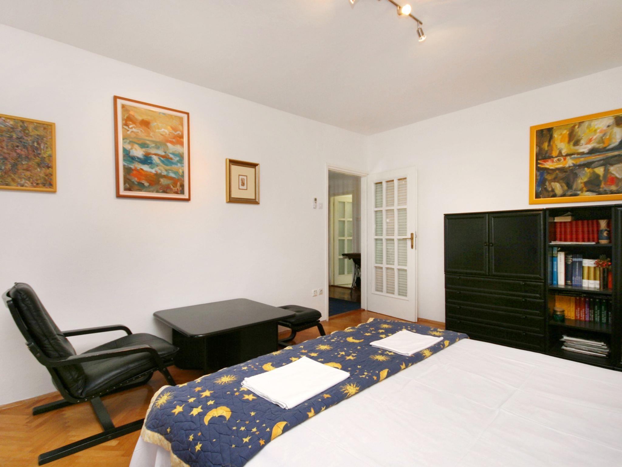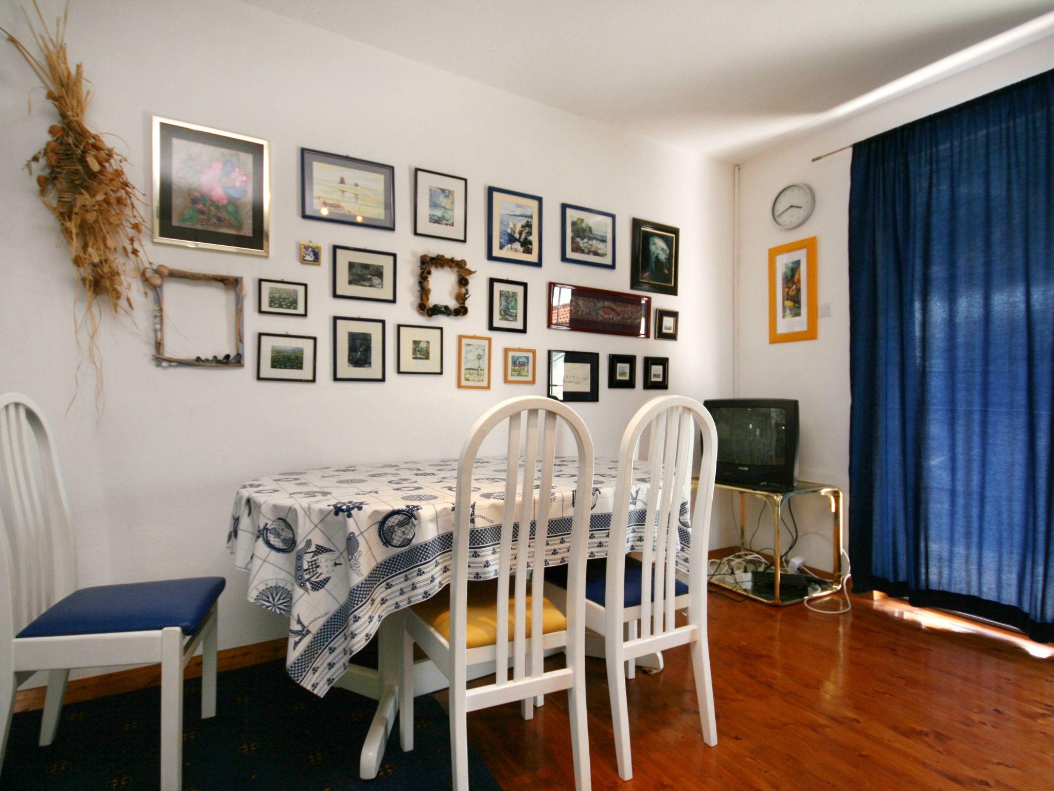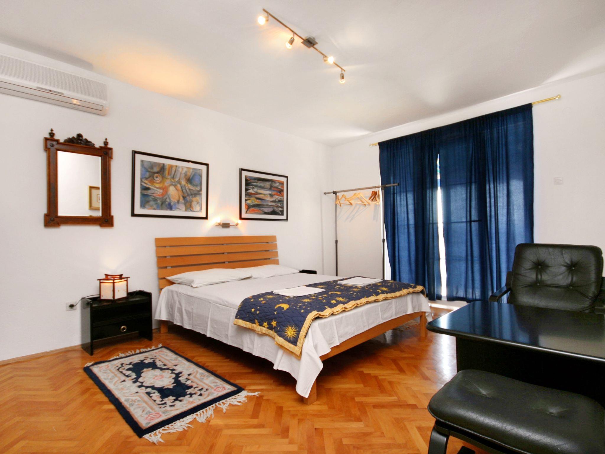Ferienwohnung bietet Platz für 5 Gäste. Die Betten sind in Schlafzimmern, die es 2 gibt, innerhalb einer Gesamtfläche von 56m2, angeordnet. Die Gäste haben eine eigene Terrasse zur Verfügung, auf der sie in warmen Sommernächten genießen können. Das Apartment bietet Meerblick. Es ist erlaubt, Speisen auf dem Gemeinschafts-Grill vorzubereiten. IM PREIS INBEGRIFFEN: Kurtaxe, Endreinigung, Klimatisierung, Parkplatz, Internet, Bügeleisen, Bügelbrett, Föhn. VERBINDLICHE ZUSÄTZLICHE KOSTEN: Aufzahlung für Kurzaufenthalte (prozentualer Zuschlag pro Nächtigungsanzahl: 30% - 1, 20% - 2, 10% - 3). Die Verfügbarkeit zusätzlicher Dienstleistungen in Ihrem reservierten Termin und die Preise derselben (falls nicht aufgeführt) müssen im Voraus überprüft werden. Zusätzliche Dienstleistungen die in der Zahlungsaufforderung nicht aufgeführt sind werden direkt beim Vermieter bezahlt, angenommen der Gast nutzt auch diese.