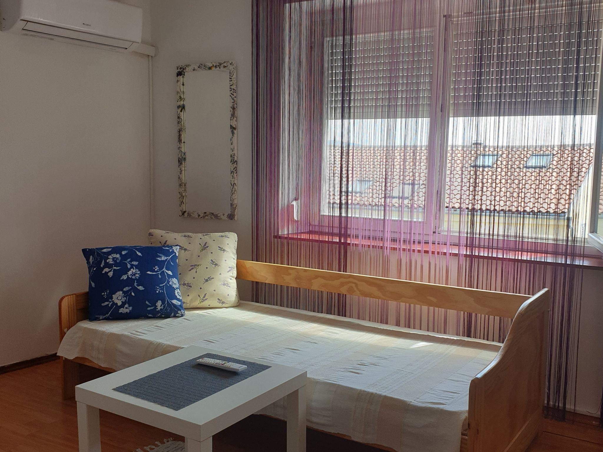Ferienwohnung bietet Platz für 3 Gäste. Die Betten sind in Schlafzimmern, die es 1 gibt, innerhalb einer Gesamtfläche von 34m2, angeordnet. Die Gäste haben eine eigene Terrasse zur Verfügung, auf der sie in warmen Sommernächten genießen können. Das Apartment bietet Meerblick. In der Unterkunftseinheit besteht die Möglichkeit des Mitbringens von Haustieren gegen Aufpreis. IM PREIS INBEGRIFFEN: Kurtaxe, Endreinigung, Klimatisierung, Parkplatz, Internet, Kinderbett, Bügeleisen, Bügelbrett, Föhn. UNVERBINDLICHE ZUSÄTZLICHE KOSTEN: Wäschewaschen (5,00 € Waschen), Haustiere (8,00 € pro Nacht), Zusatzbett (10,00 € pro Nacht). Die Verfügbarkeit zusätzlicher Dienstleistungen in Ihrem reservierten Termin und die Preise derselben (falls nicht aufgeführt) müssen im Voraus überprüft werden. Zusätzliche Dienstleistungen die in der Zahlungsaufforderung nicht aufgeführt sind werden direkt beim Vermieter bezahlt, angenommen der Gast nutzt auch diese.