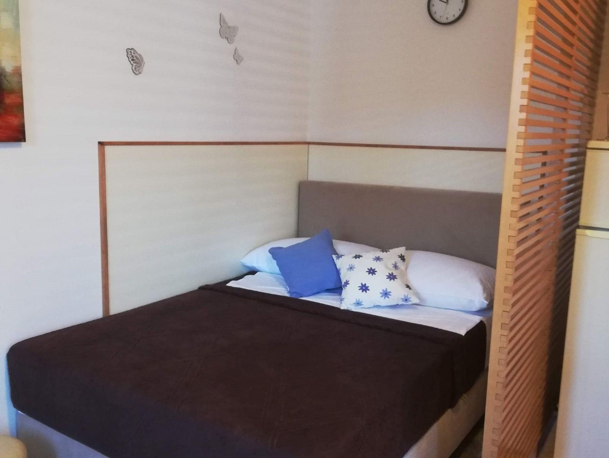Studio bietet Platz für 2 Gäste. Die Betten sind in Schlafzimmern, die es 1 gibt, innerhalb einer Gesamtfläche von 27m2, angeordnet. Die reservierte Unterkunftseinheit hat keinen Balkon und keine Terrasse. IM PREIS INBEGRIFFEN: Kurtaxe, Endreinigung, Klimatisierung, Parkplatz, Internet, Kinderbett, Bügeleisen, Bügelbrett, Föhn. Die Verfügbarkeit zusätzlicher Dienstleistungen in Ihrem reservierten Termin und die Preise derselben (falls nicht aufgeführt) müssen im Voraus überprüft werden. Zusätzliche Dienstleistungen die in der Zahlungsaufforderung nicht aufgeführt sind werden direkt beim Vermieter bezahlt, angenommen der Gast nutzt auch diese.