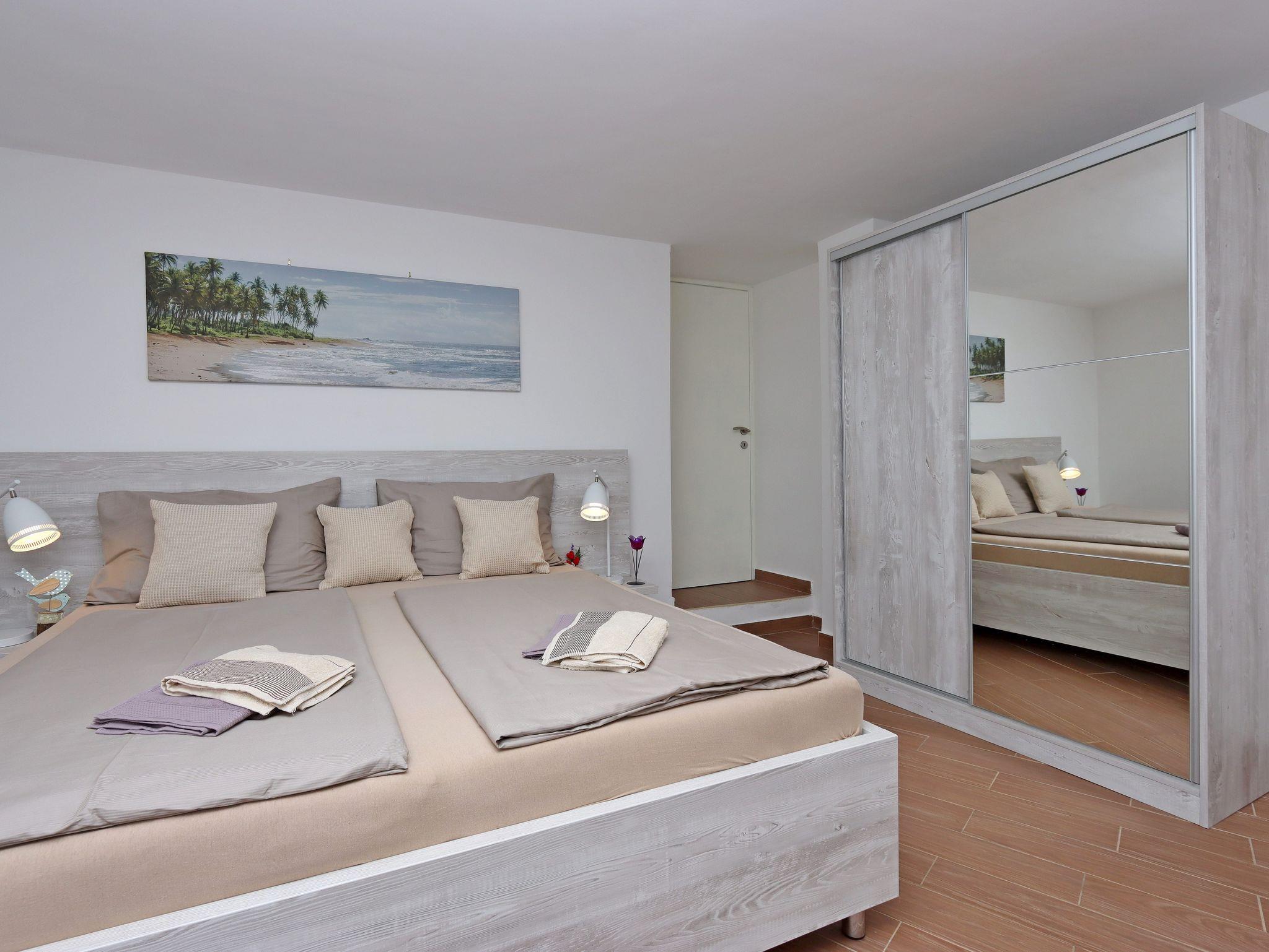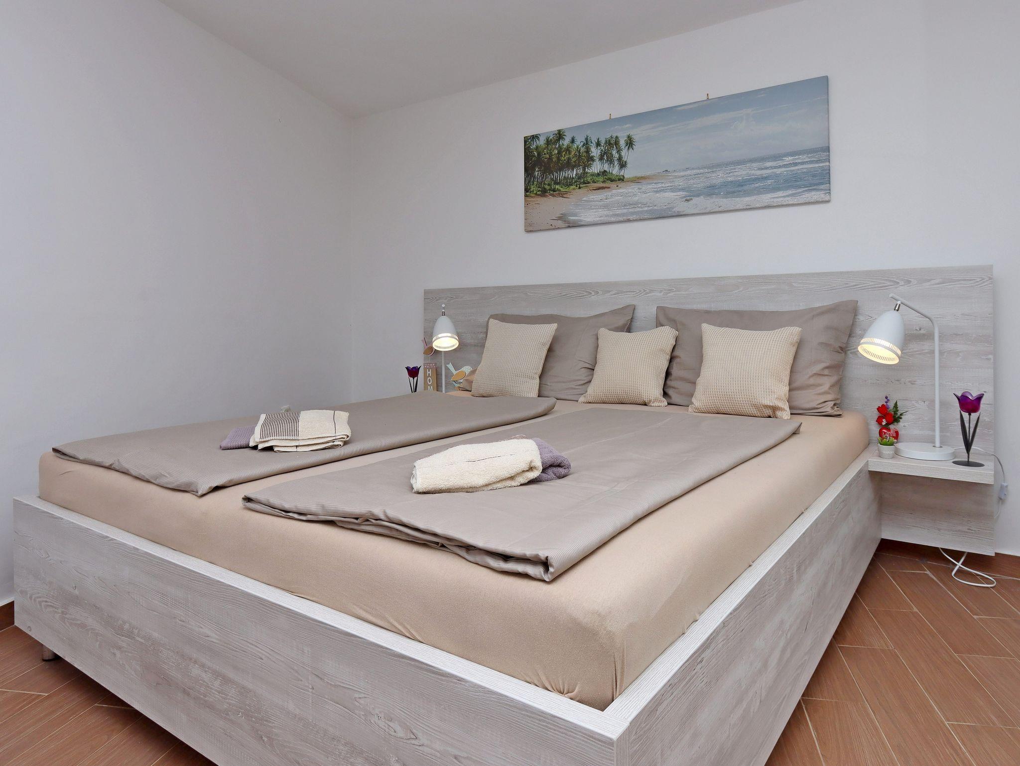 Ferienwohnung bietet Platz für 5 Gäste. Die Betten sind in Schlafzimmern, die es 1 gibt, und in Wohnzimmer, innerhalb einer Gesamtfläche von 54m2, angeordnet. Die Gäste haben eine eigene Terrasse zur Verfügung, auf der sie in warmen Sommernächten genießen können. In der Unterkunftseinheit besteht die Möglichkeit des Mitbringens von Haustieren gegen Aufpreis. IM PREIS INBEGRIFFEN: Kurtaxe, Endreinigung, Parkplatz, Internet, Bügeleisen, Bügelbrett, Föhn. VERBINDLICHE ZUSÄTZLICHE KOSTEN: Aufzahlung für Kurzaufenthalte (prozentualer Zuschlag pro Nächtigungsanzahl: 30% - 1, 20% - 2, 10% - 3). UNVERBINDLICHE ZUSÄTZLICHE KOSTEN: Klimatisierung (5,00 € pro Nacht), Haustiere (10,00 € pro Nacht). Die Verfügbarkeit zusätzlicher Dienstleistungen in Ihrem reservierten Termin und die Preise derselben (falls nicht aufgeführt) müssen im Voraus überprüft werden. Zusätzliche Dienstleistungen die in der Zahlungsaufforderung nicht aufgeführt sind werden direkt beim Vermieter bezahlt, angenommen der Gast nutzt auch diese.