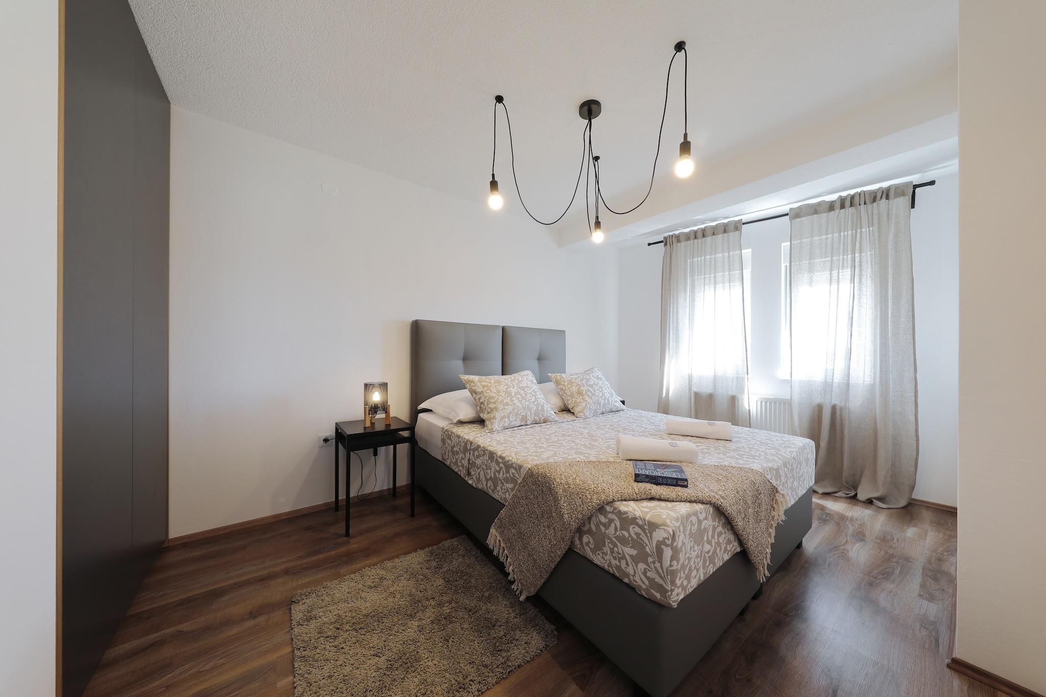 This spacious 6-bedroom villa in Seline accommodates up to 17 guests, ideal for large families or groups. Just 250 meters from the sea, it features a private heated swimming pool with a sun shower and a fenced, illuminated garden with deckchairs, garden furniture, and a barbecue area for relaxing outdoors. The villa has multiple fully equipped kitchens, air-conditioned living and dining rooms, and several balconies and terraces offering beautiful views. Inside, the basement recreation room includes a TV, dining area, darts, and party games for entertainment. The villa is close to restaurants (250 m) and grocery stores (500 m), with Starigrad-Paklenica town center 3 km away. Parking is available on-site. The nearest airport is 45 km from the property. This villa combines comfort, space, and excellent amenities for an unforgettable Dalmatian coast holiday.