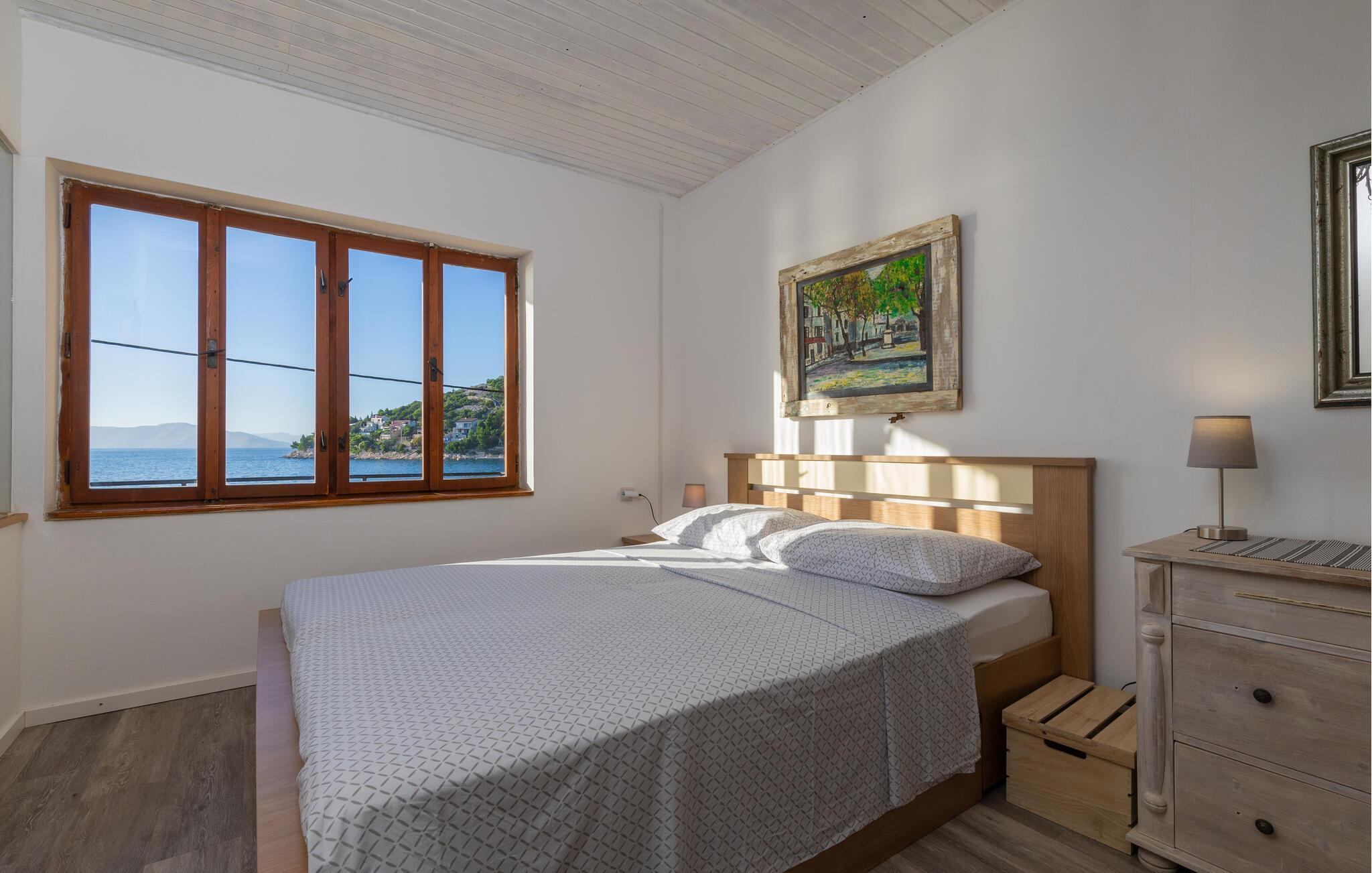 Treten Sie hinaus auf die geräumige Terrasse, die Ihnen einen atemberaubenden Blick auf das perlklar schimmernde Wasser bietet und Sie zum Entspannen einlädt. Ob beim Frühstück im Freien oder beim Sonnenuntergang – hier wird der Alltag schnell vergessen.