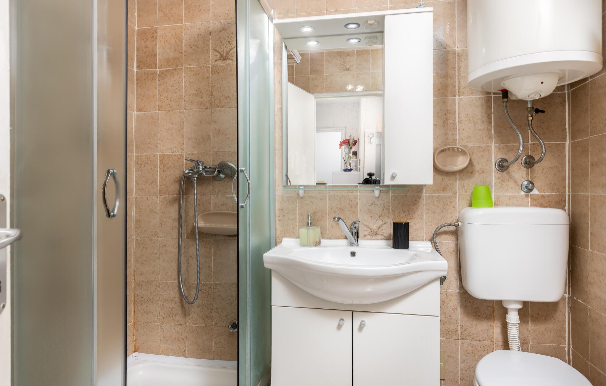 Badezimmer 4m2 (nr. 2) - WC. Warmes und kaltes Wasser. Dusche