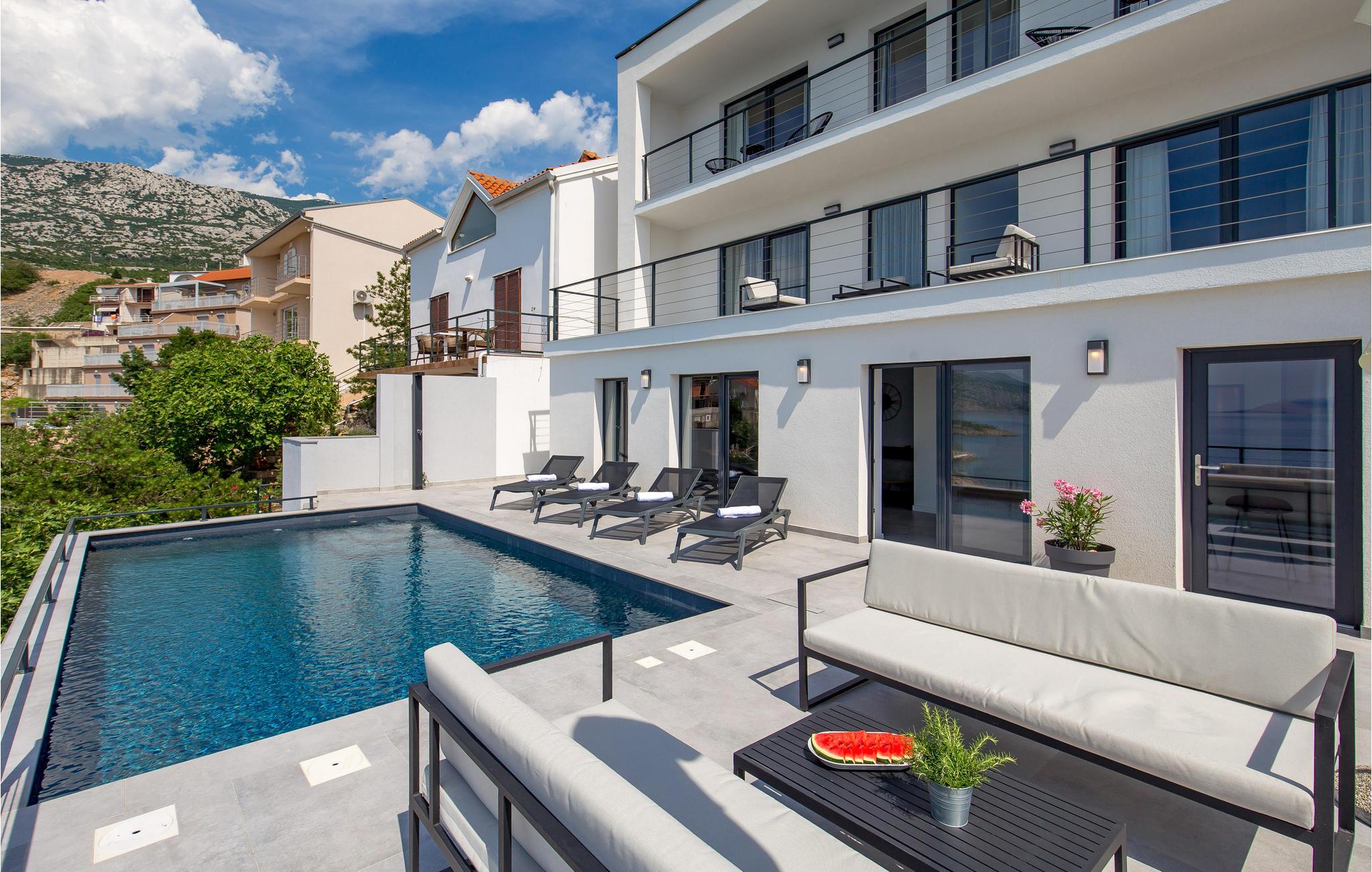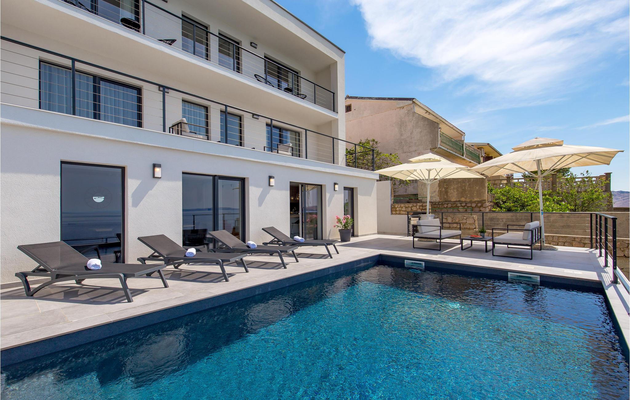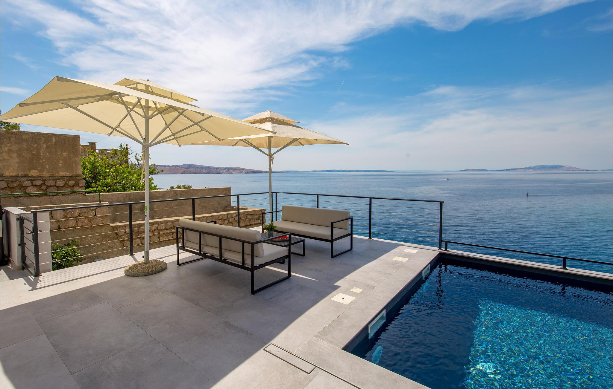 Genießen Sie das Leben im Freien?und die lauen Sommerabende?auf den Terrassen des Hauses in bequemen Gartenmöbeln bei Spezialitäten vom Grill und?erfrischen?Sie?sich?im?Pool,?wann immer Ihnen danach ist. Als Gäste dieses Hauses verfügen Sie über Ihren eigenen Betonstrand.