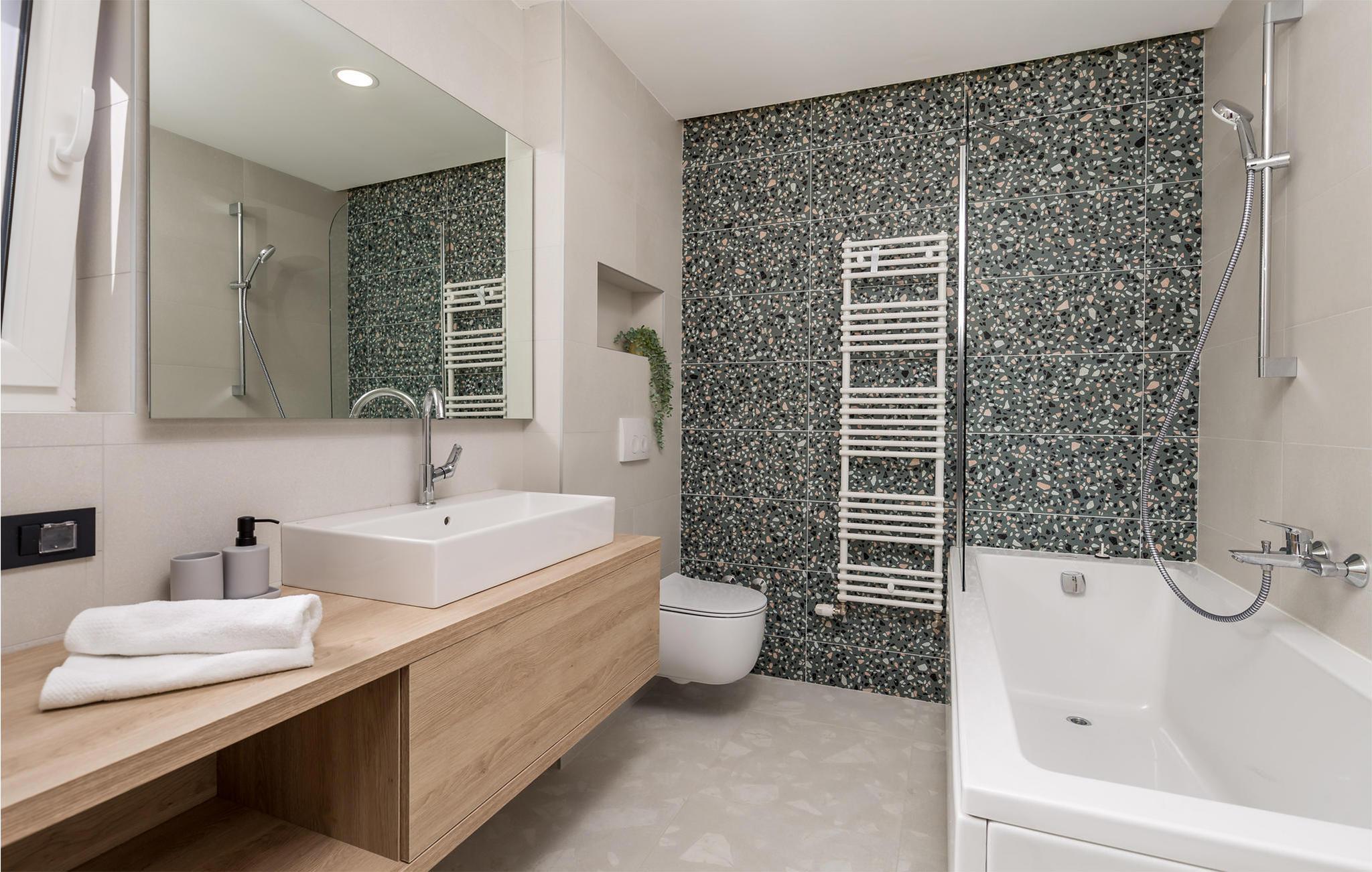 - WC mit warmem und kaltem Wasser, Badewanne