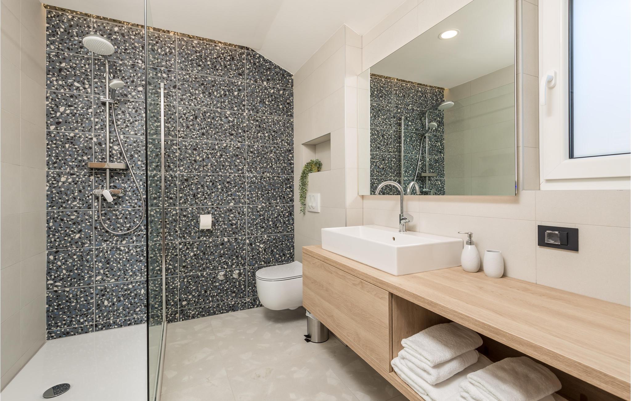 - WC mit warmem und kaltem Wasser, Dusche