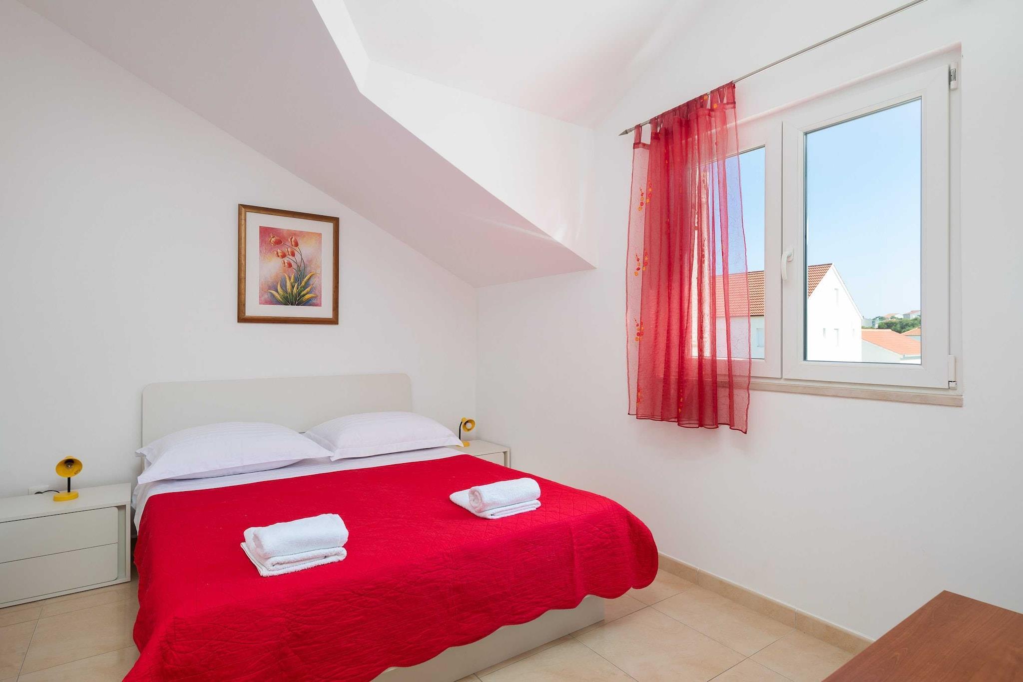 Apartments Bella Vista are located in Sevid, a peaceful coastal village in Split-Dalmatia County, Croatia. Nestled in the picturesque Sevid, this retreat boasts a modern design, breathtaking sea views, and premium amenities, ideal for relaxation and comfort. Perfect for travelers seeking sophistication and tranquility by the Adriatic coast. The owner lives on the property on their own etage on the ground level, and they are available to guests if they need anything. Note: Private parking is available, and a reservation is not required. A baby cot is available on request. Wi-Fi is available throughout the property. Pets are not allowed. This two-bedroom can accommodate up to six guests. It features an SAT/flat-screen TV and is combined with a seating area and kitchen. The private bathroom is equipped with a shower and toilet. Free toiletries are available on request. Thanks to its excellent location, everything you'll need for your vacation is just a short walk from the property. Grocery store/supermarket, restaurant — everything is within a 100 m radius. The beach is 50 m away from the property. The airport is 30 km away from the property.