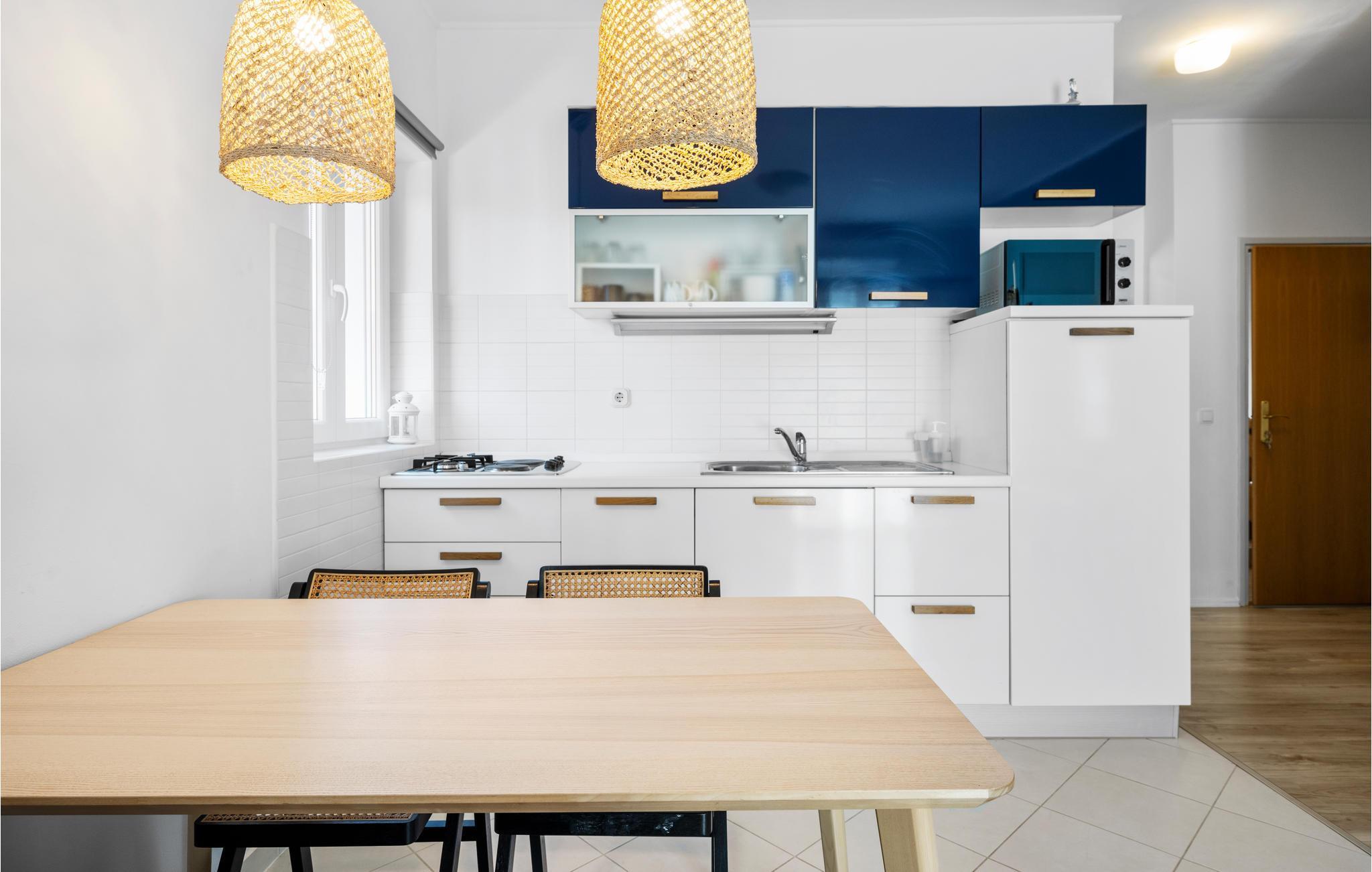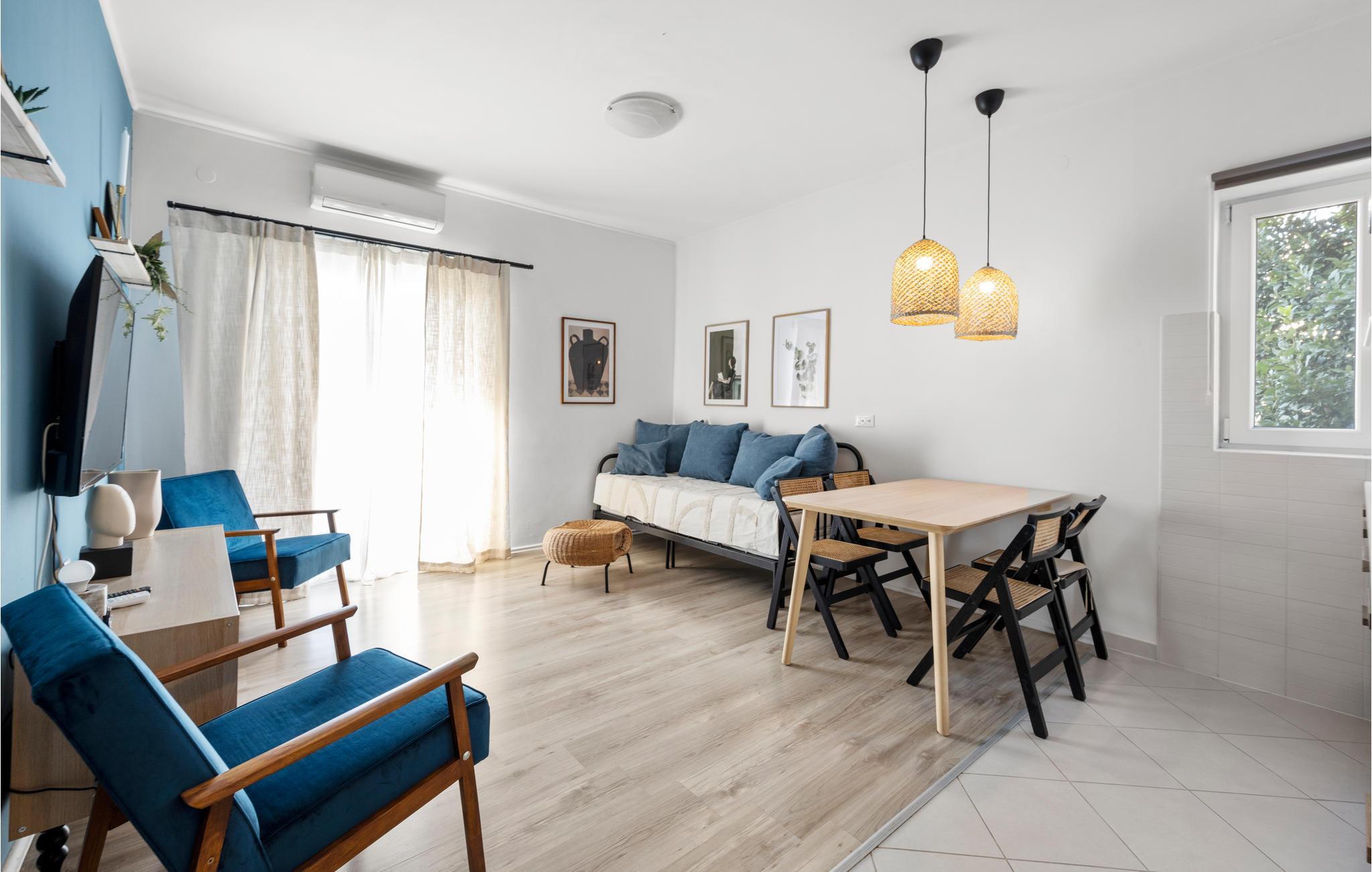 Mit ihren hellen Räumen und der modernen, geschmackvollen Einrichtung ist die Wohnung der ideale Ort für eine angenehme Auszeit nahe dem Meer. Stärken Sie sich am Esstisch mit einem guten Frühstück für einen erlebnisreichen Tag, das Sofa im Wohnzimmer lädt zu gemütlichen Abenden mit Spielen, Gesprächen oder einem Film ein.