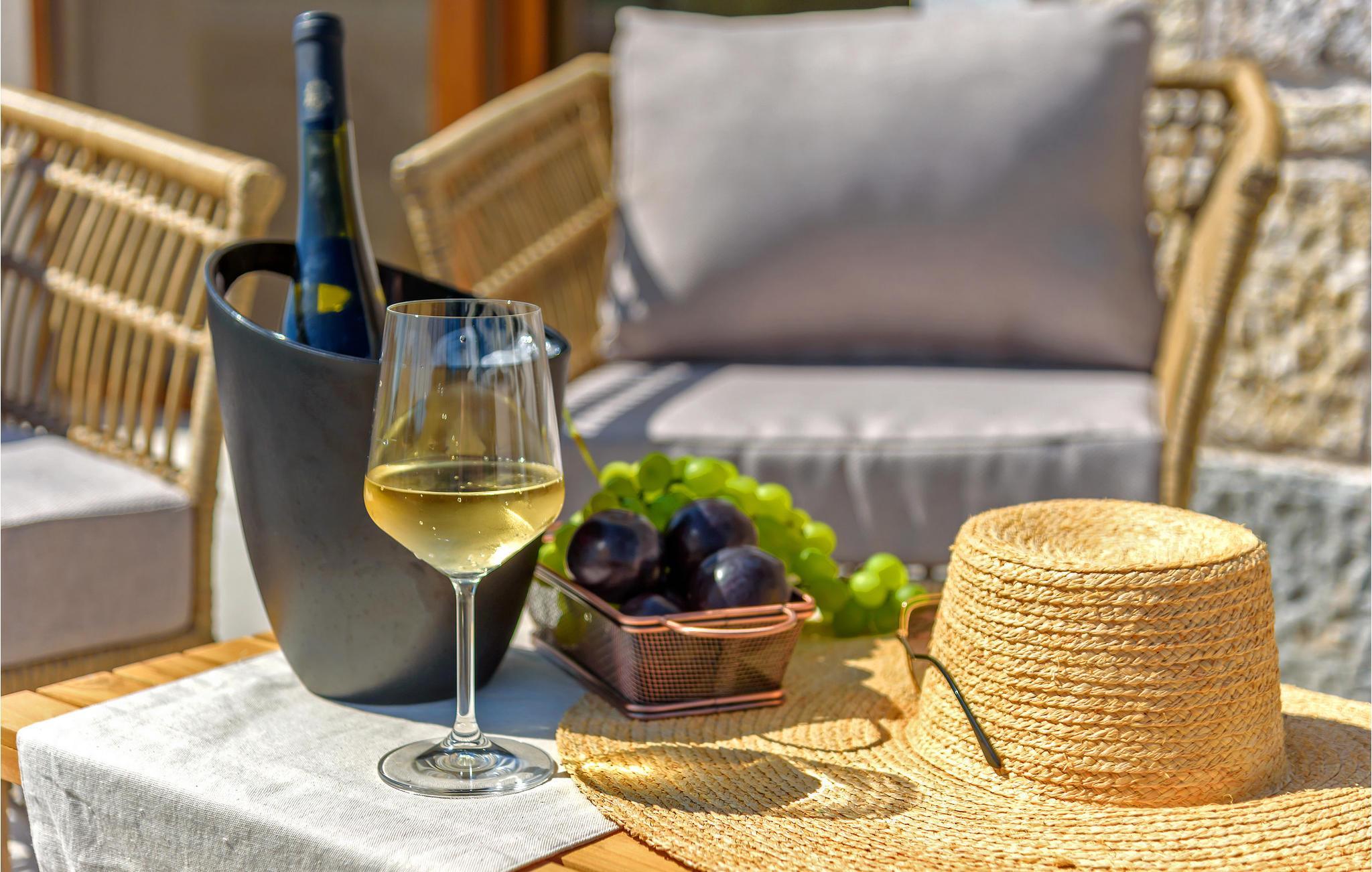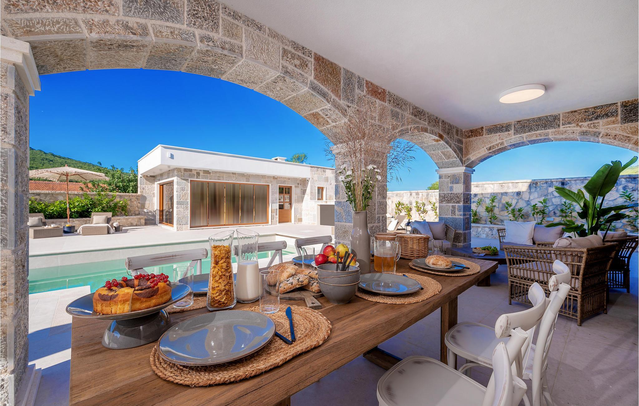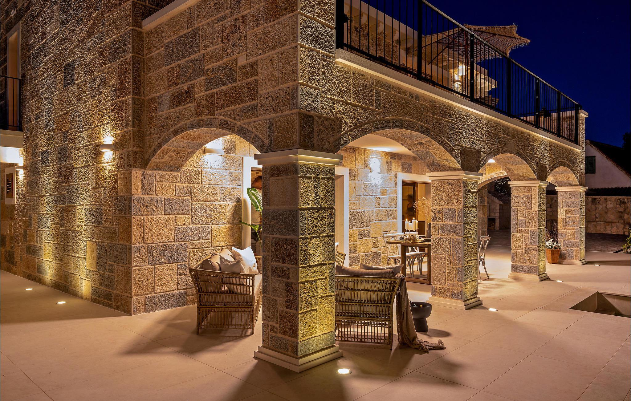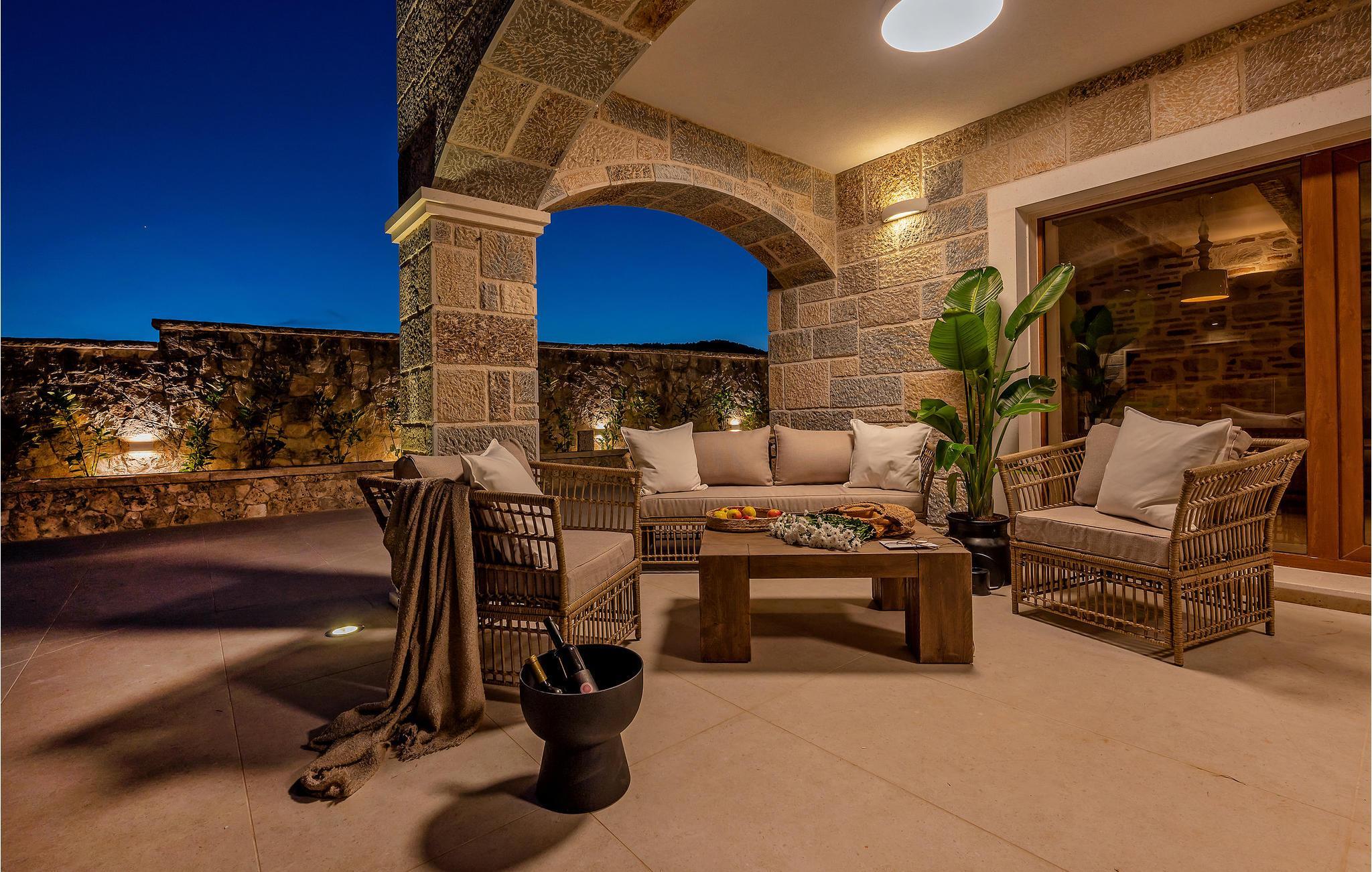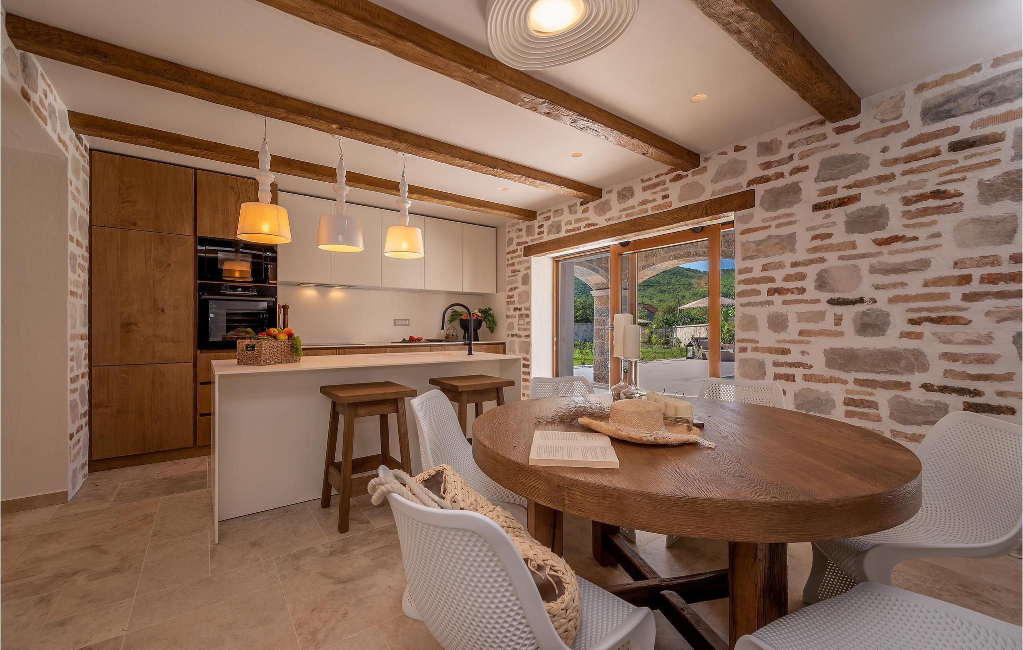 Willkommen in diesem modernen Steinhaus im traditionellen Baustil, dass Sie zu einem unvergesslichen Urlaub einlädt. Auf zwei Etagen können Sie den Luxus und die Privatsphäre der Schlafzimmer mit eigenem Badezimmer genießen und den Charme der Holzausstattung erleben. Im Erdgeschoss wird der offene Wohnraum zum Treffpunkt der Gruppe, wo Sie zusammen kochen können. Von hier können Sie auf die überdachte Terrasse treten und essen. Anschließen können Sie sich am Pool sonnen oder baden. Falls Sie mehr Ruhe wünschen, bieten Ihnen die beiden großen Balkon tolle Entspannungszonen, um ein Buch zu lesen oder Ihren Lieblingspodcast zu hören.