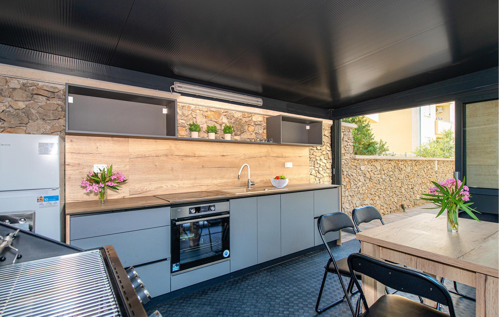 Erfrischen Sie sich nach Lust und Laune im herrlichen Pool und tanken Sie Sonne auf den bequemen Liegen. In der sensationellen Sommerküche macht das gemeinsame Schlemmen besonders viel Spaß – bereiten Sie hier leckere Beilagen für einen geselligen Grillabend vor.