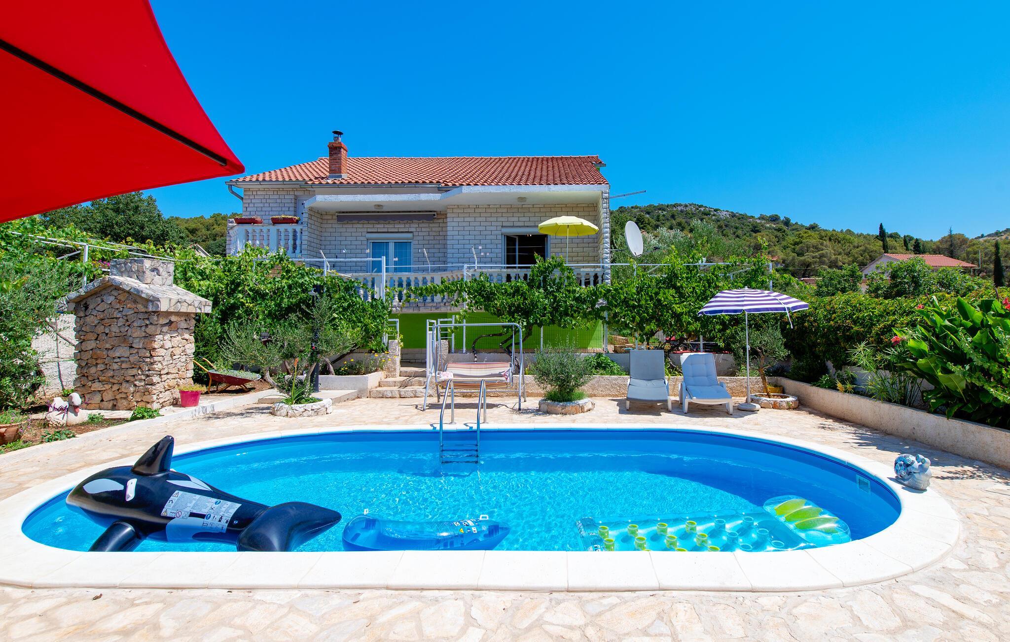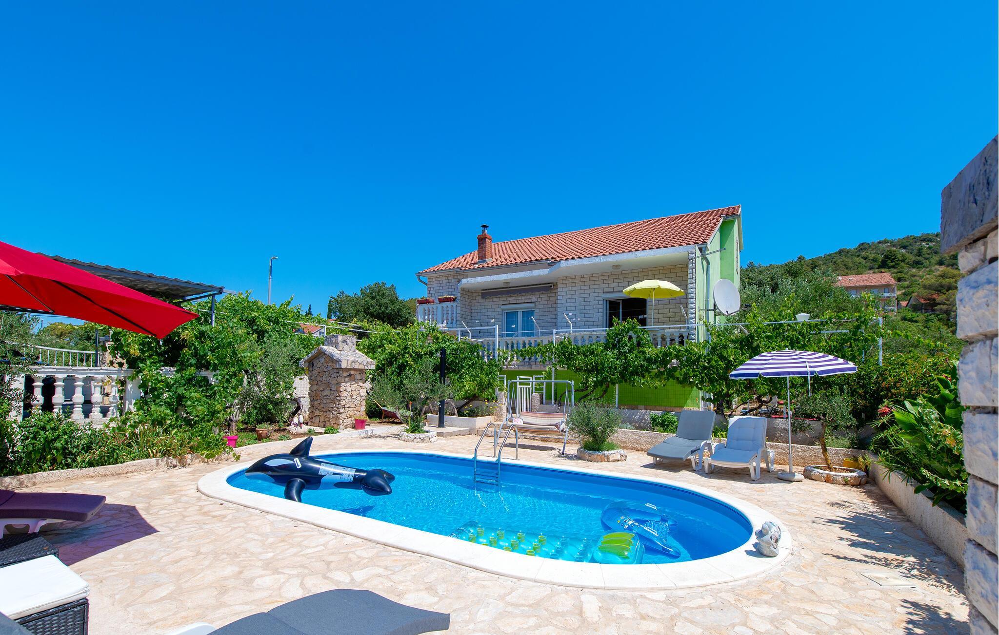 Erleben Sie einen wunderschönen Urlaub in diesem einladenden Ferienhaus mit Pool, Panoramablick und in Meeresnähe.