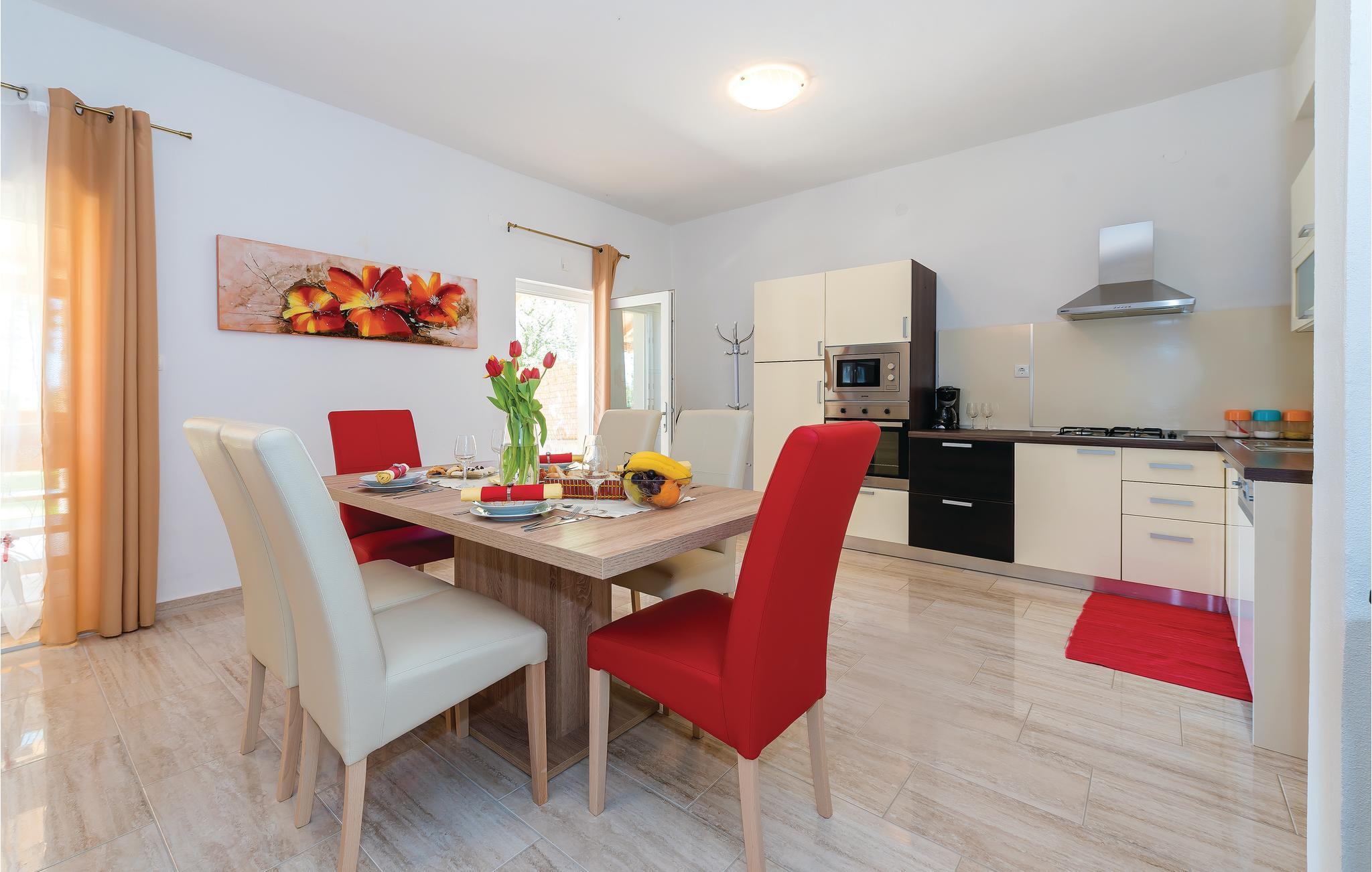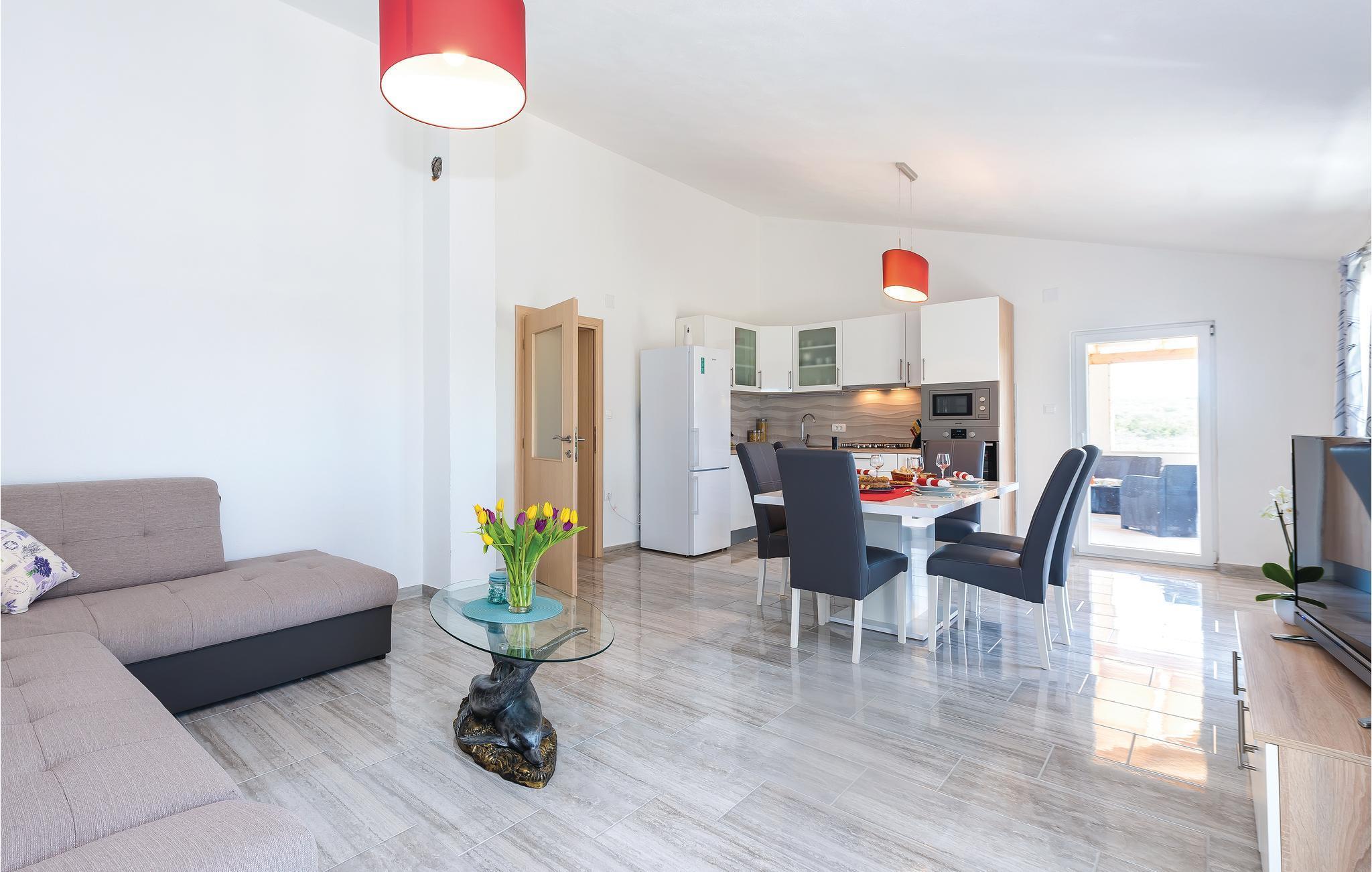 Idyllisch und von Natur umgeben finden Sie das Ferienhaus im kleinen Dorf Danilo. Es ist attraktiv und liegt mit seinem Pool auf einem umzäunten Naturgrundstück von ca. 8.800 m². Das Domizil besteht aus zwei funktionell eingerichteten Wohnungen mit Außentreppen. Auf der Terrasse sorgt neben dem Pool auch ein Whirlpool zusätzlich für Entspannung. Verwöhnen Sie sich und Ihre Liebsten mit köstlichen Grillgerichten und genießen Sie dabei die ländliche Aussicht. Nur eine kurze Autofahrt trennt Sie von den schönen Stränden Žaboric, Brodarica und Solaris. Ein lebhaftes Stadttreiben finden Sie in der wunderbaren Stadt Šibenik.